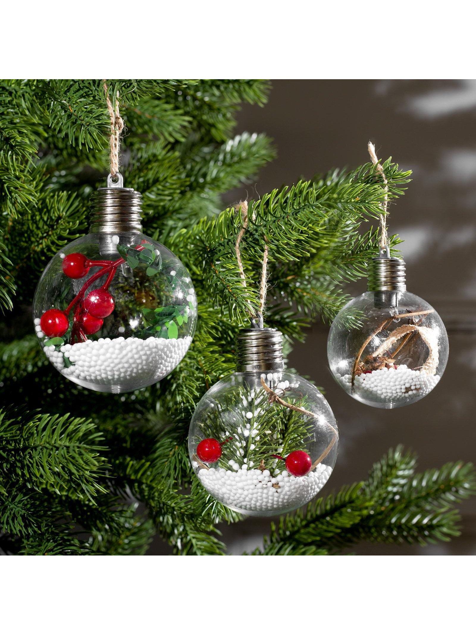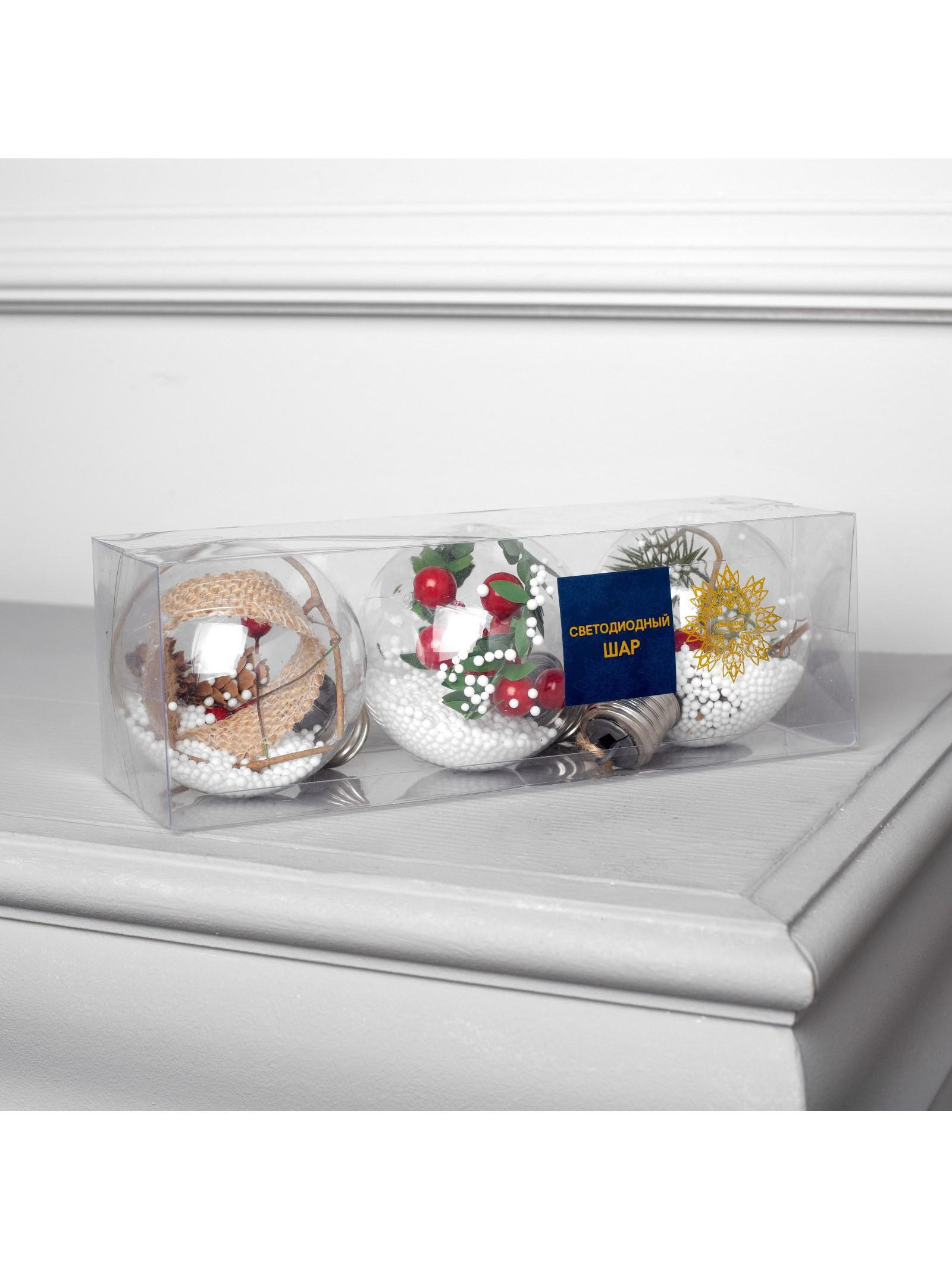 Набор ёлочных шаров "Зимний лес", 3 шт, d=8 см, 1 LED, от батареек, свечение белое, 8x8x8 см., Luazon Lighting, Китай