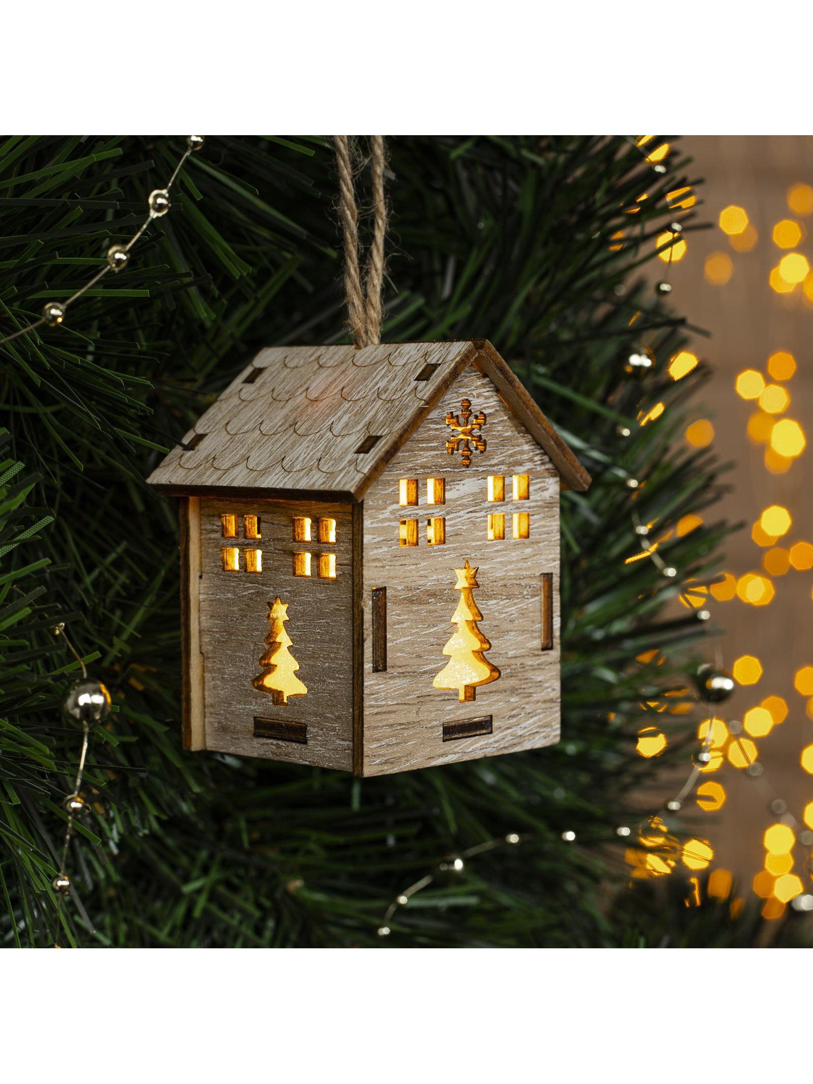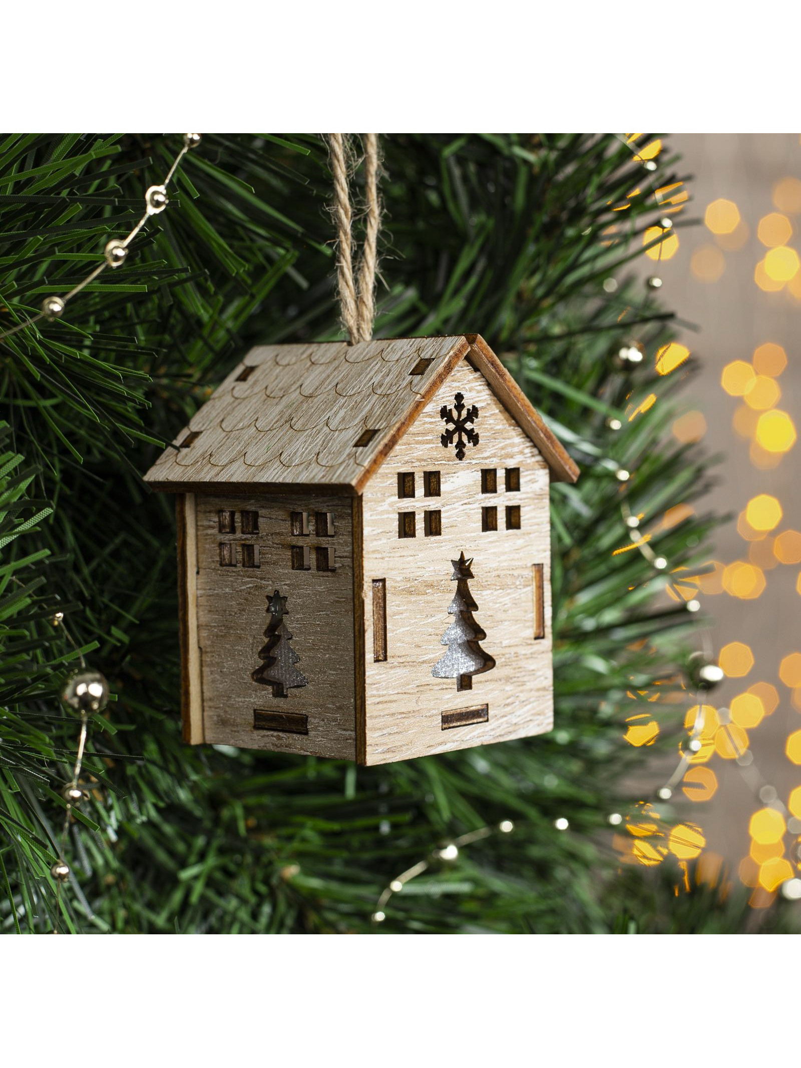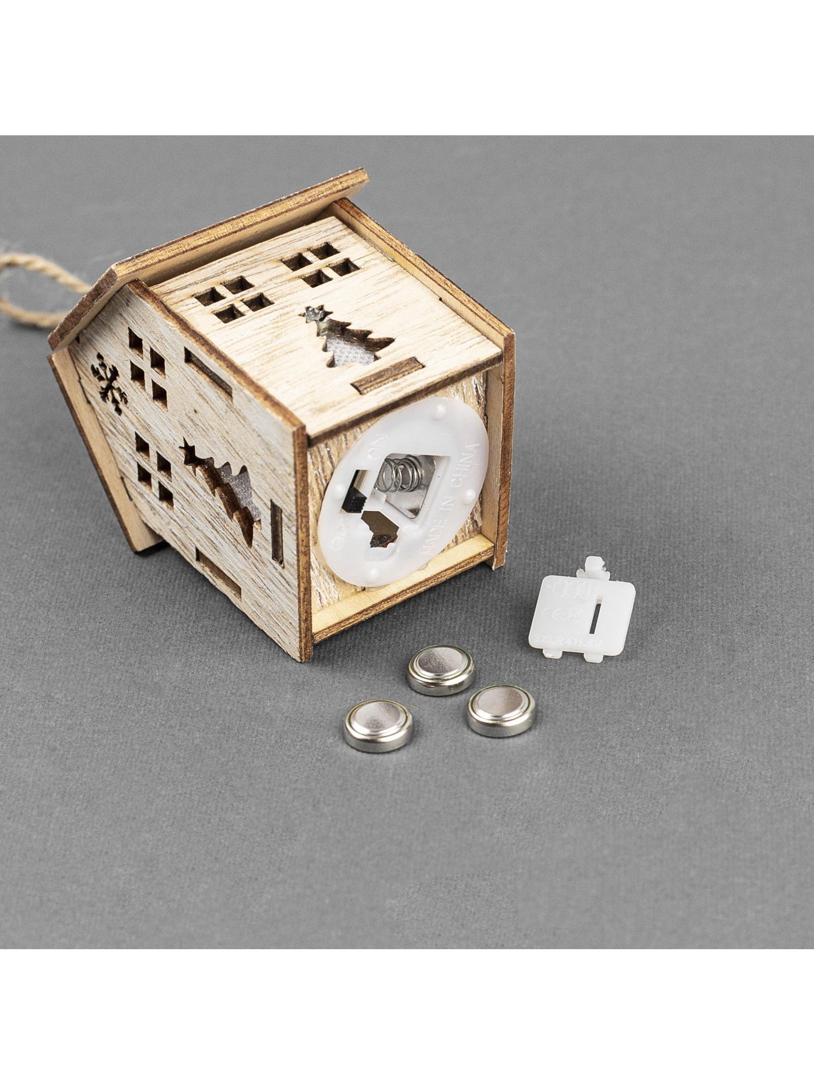 Ёлочная игрушка "Домик с ёлкой", 7х5х5 см, 1 LED, от батареек, свечение тёплое белое, 5x5x7 см., Luazon Lighting, Китай