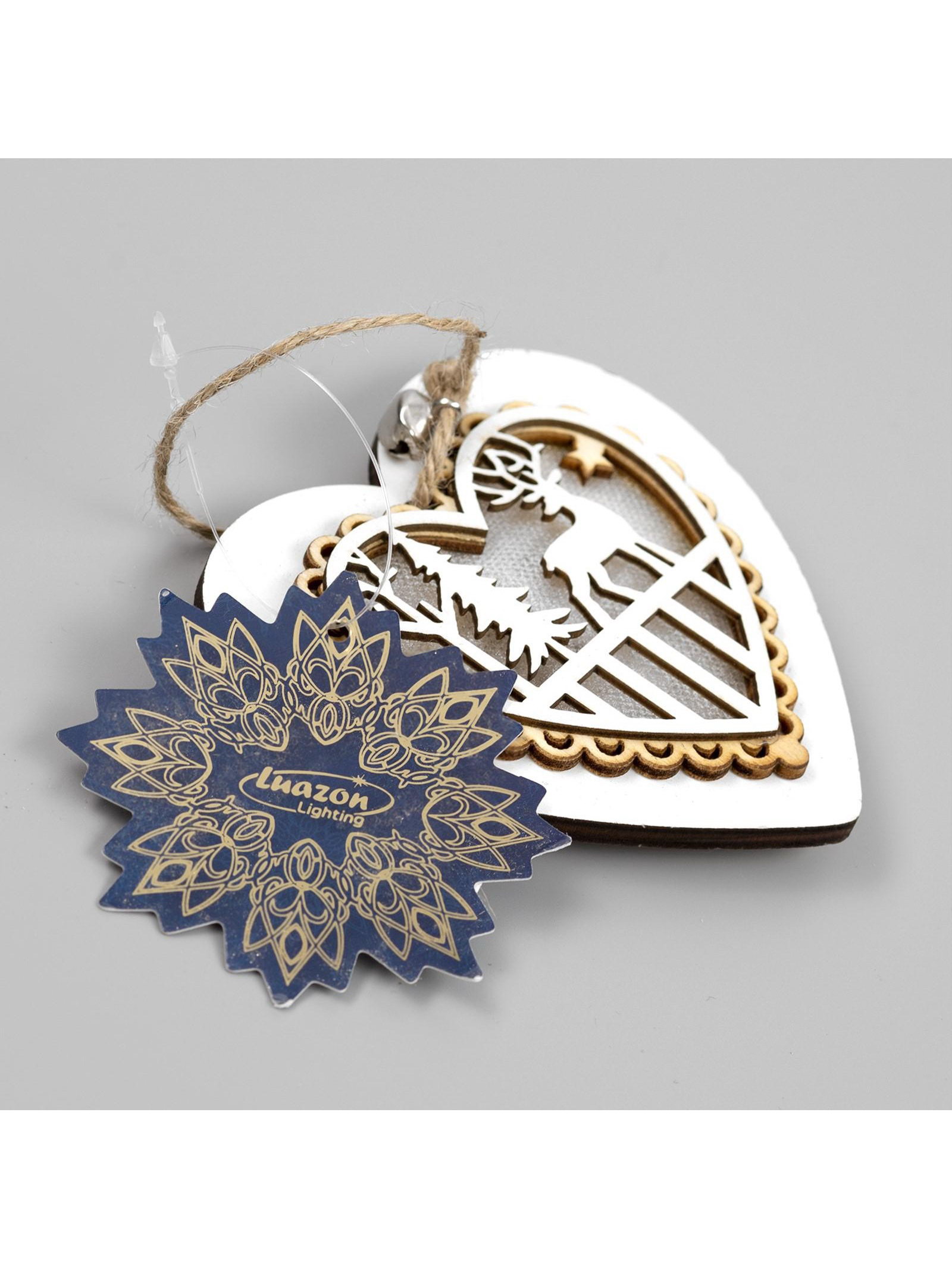 Ёлочная игрушка "Сердце с оленем", 10х10х2 см, 3 LED, от батареек, свечение тёплое белое, 2x10x10 см., Luazon Lighting, Китай
