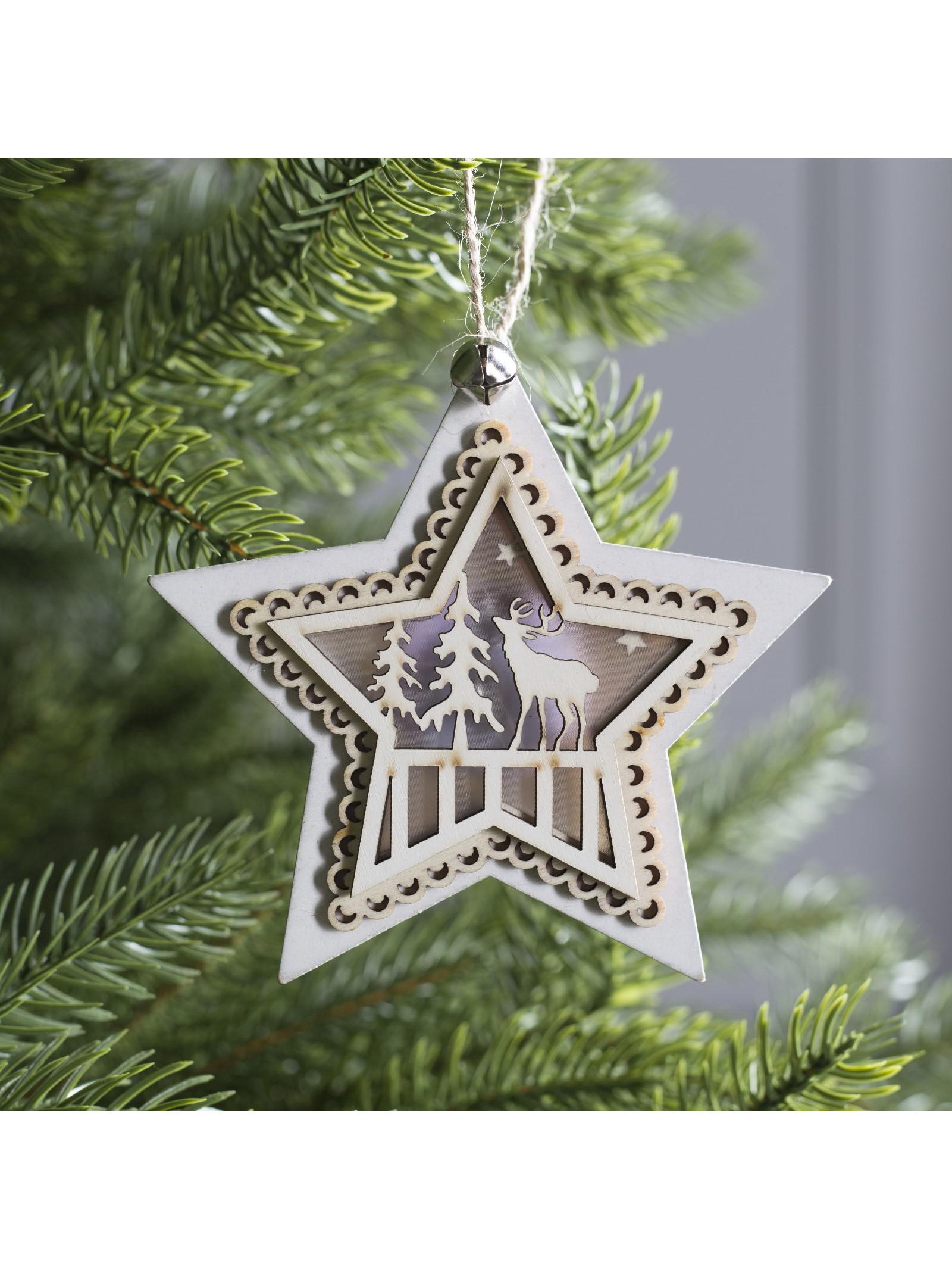 Ёлочная игрушка "Звезда с оленем", 10х10х2 см, 4 LED, от батареек, свечение тёплое белое, 2x10x10 см., Luazon Lighting, Китай