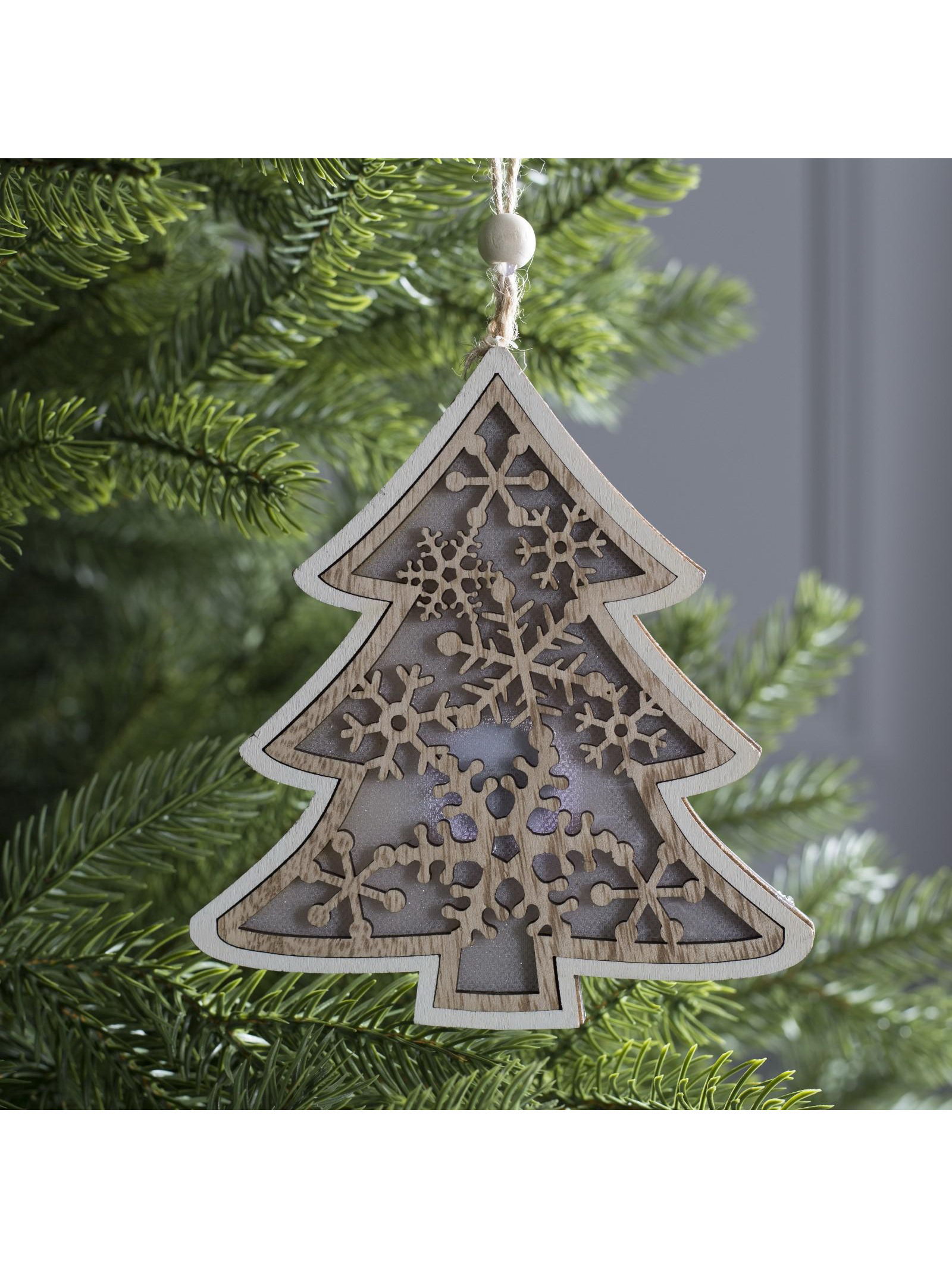 Ёлочная игрушка "Ёлочка в снежинках", 13х13х1 см, 3 LED, от батареек, свечение тёплое белое, 1x13x14 см., Luazon Lighting, Китай
