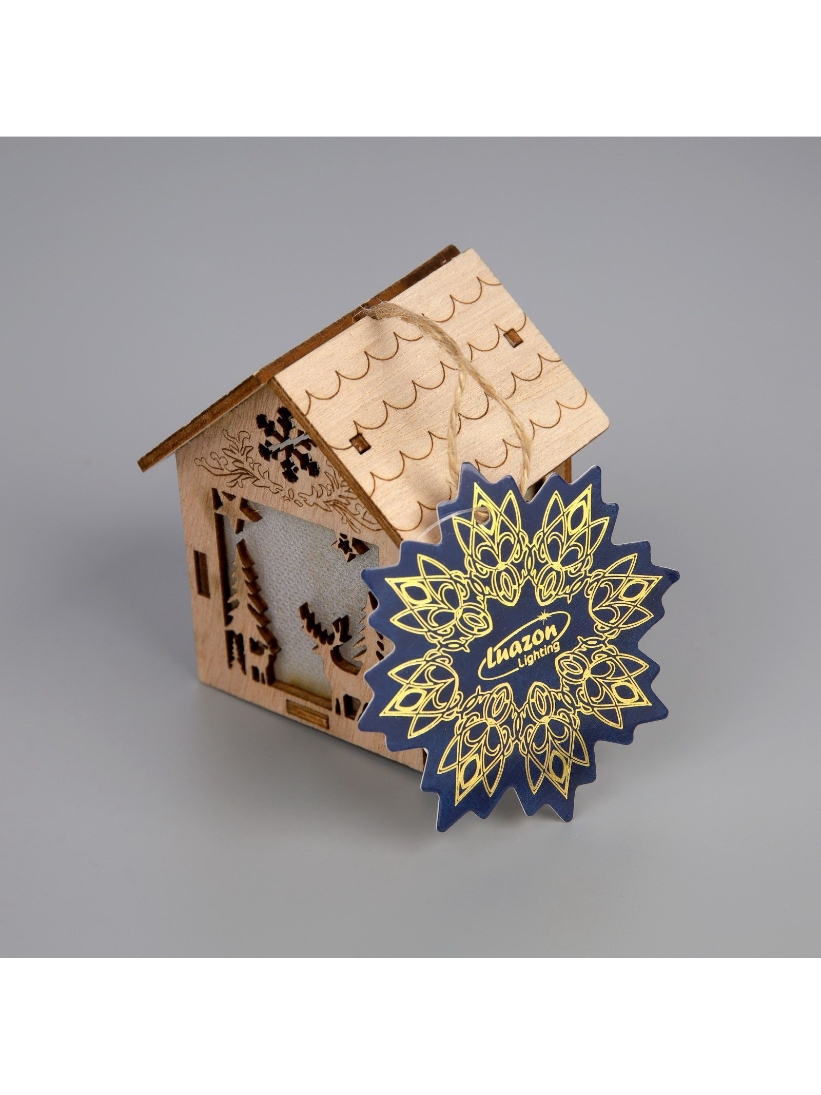 Ёлочная игрушка "Домик с оленем", 8х5х6 см, 1 LED, от батареек, свечение тёплое белое, Luazon Lighting, Китай