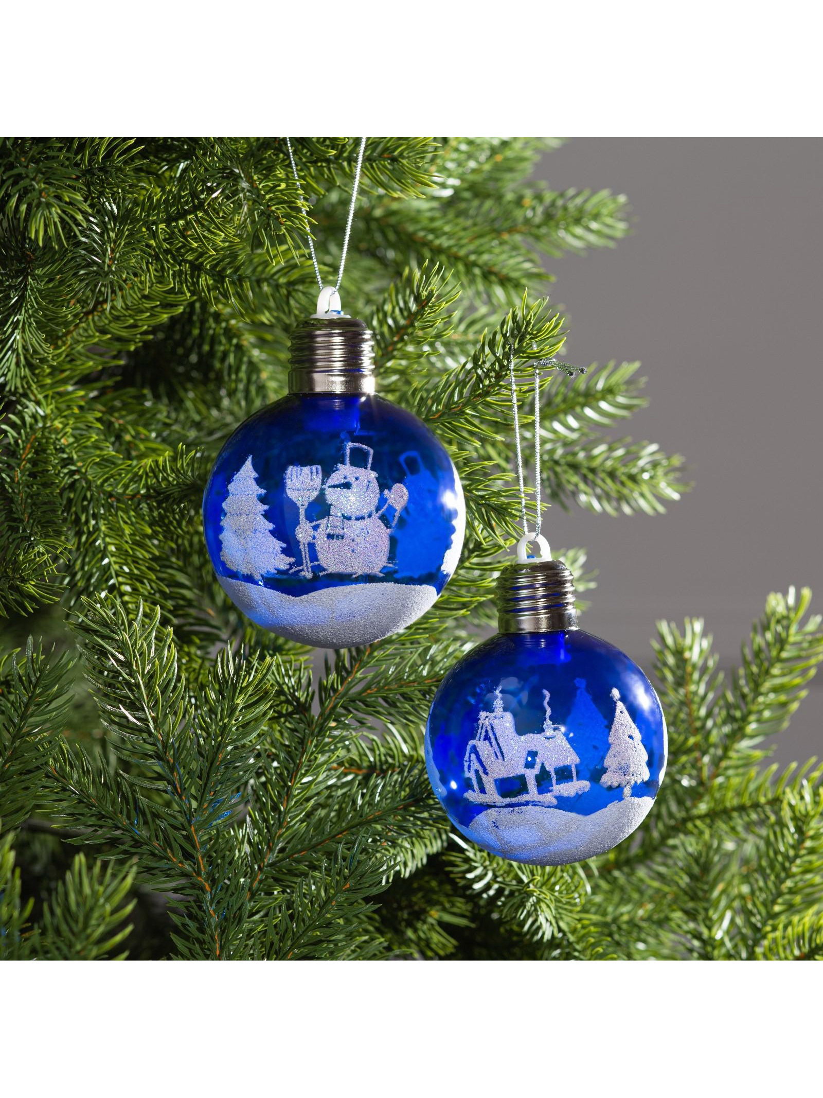 Набор ёлочных шаров "Зимний пейзаж", 2 шт., d=8 см, 1 LED, от батареек, свечение RGB, 20x8x10 см., Luazon Lighting, Китай
