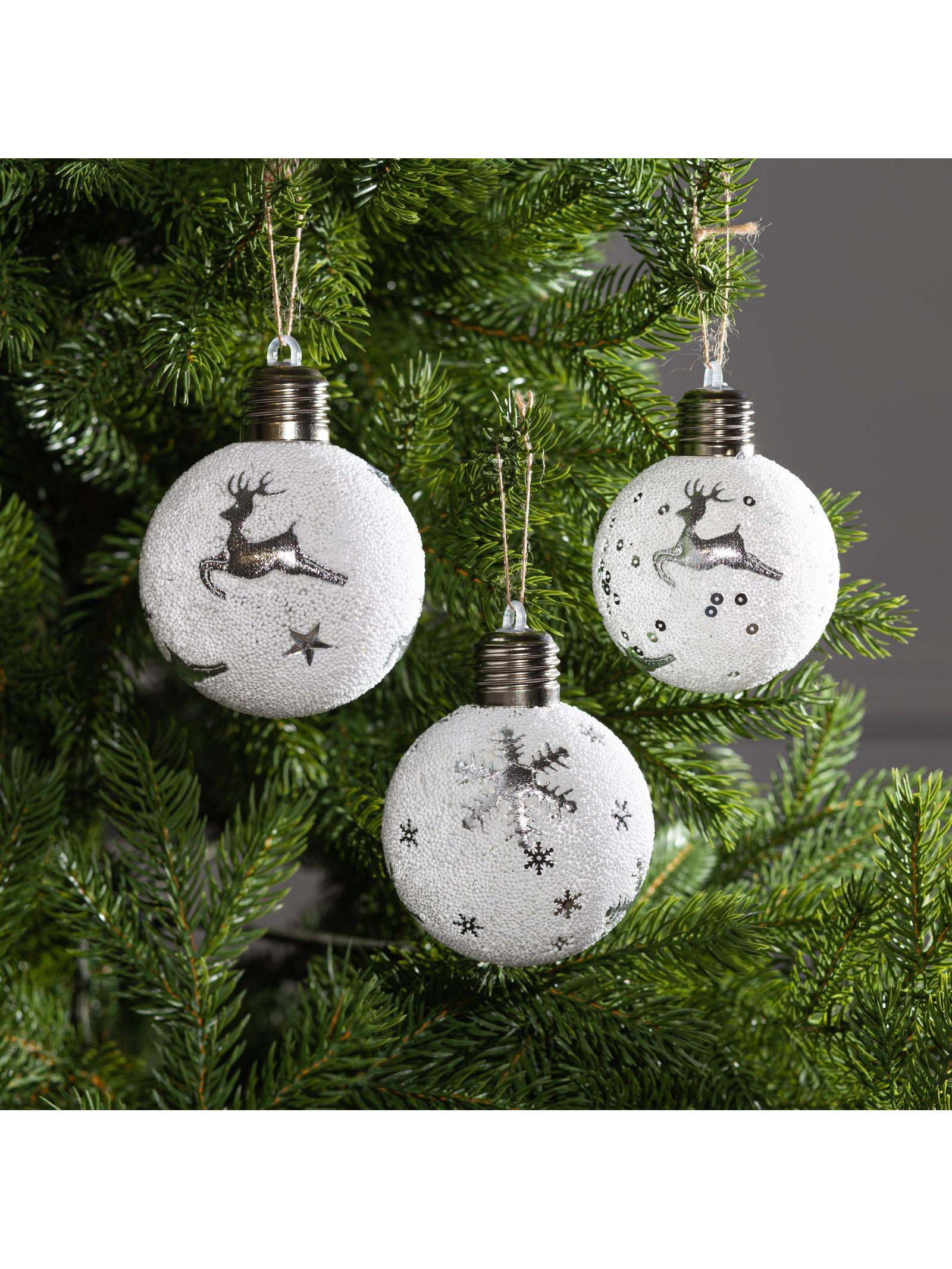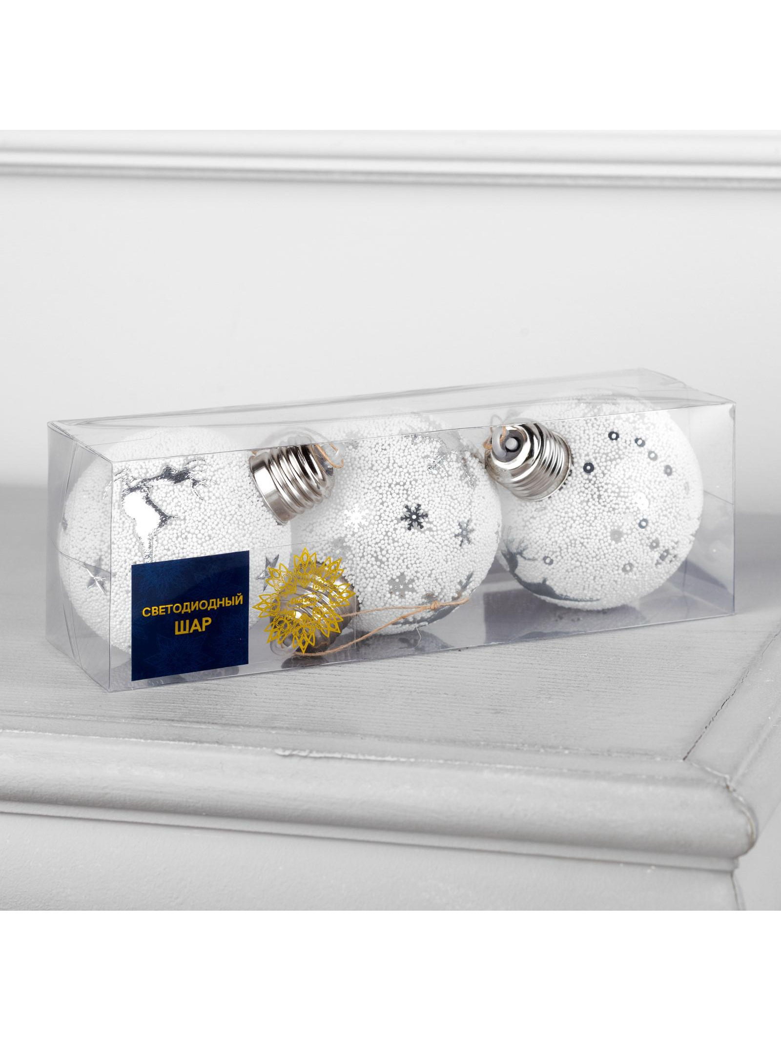 Набор ёлочных шаров "Серебристые узоры", 3 шт, d=8 см, 1 LED, от батареек, свечение белое, 0.1 см., Luazon Lighting, Китай