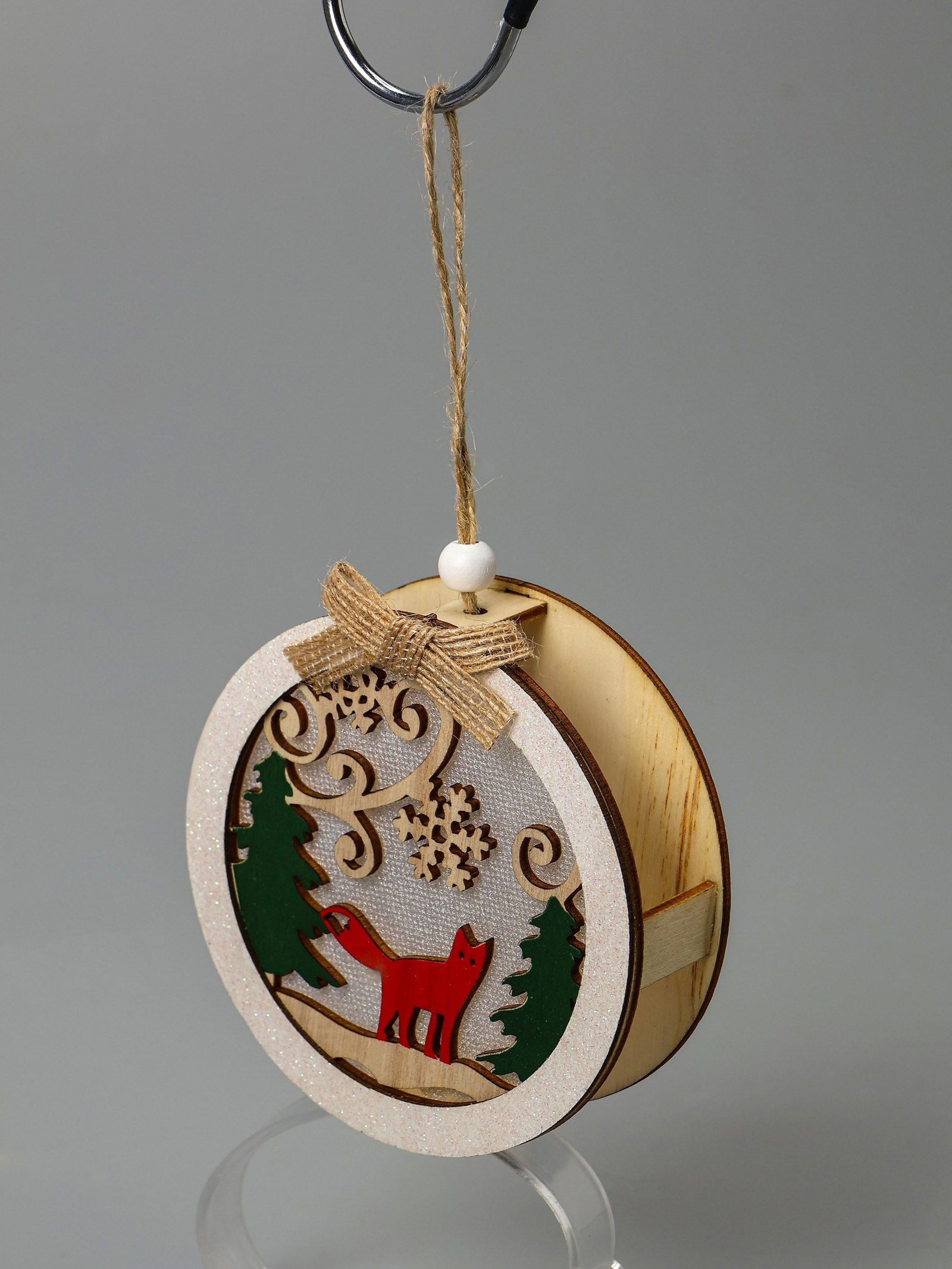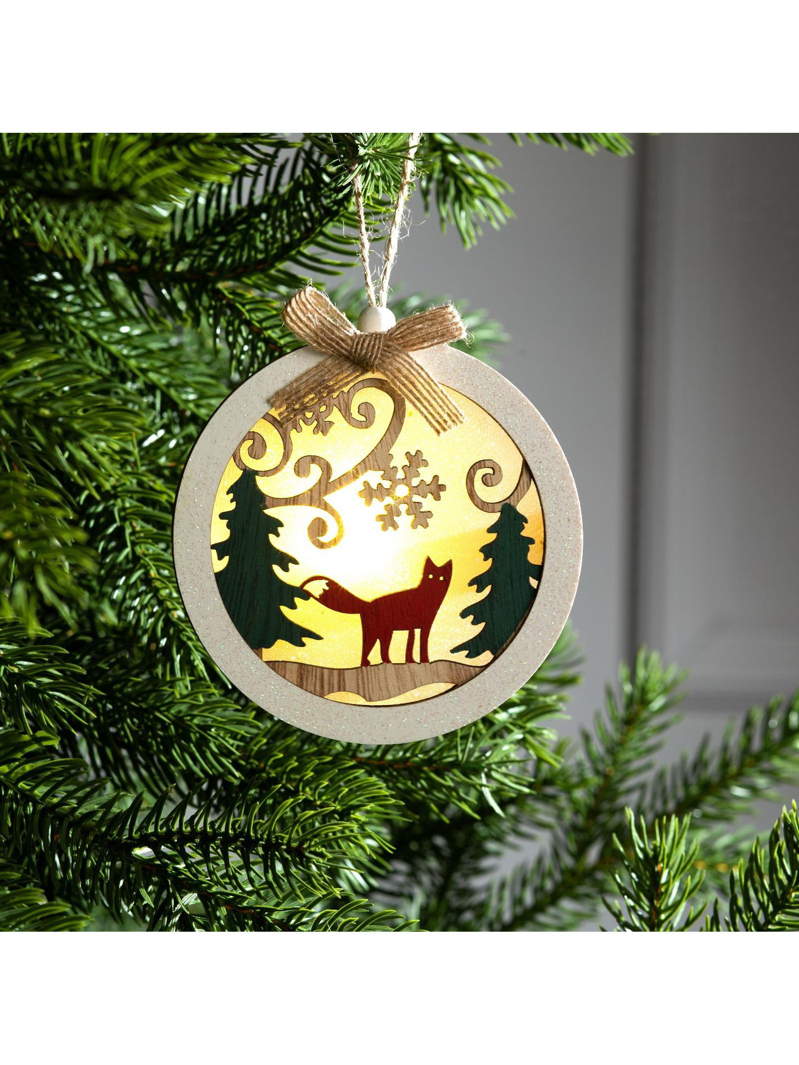 Ёлочная игрушка "Шар с лисёнком", 10х10х2 см, от батареек, свечение тёплое белое, 10x10x2 см., Luazon Lighting, Китай