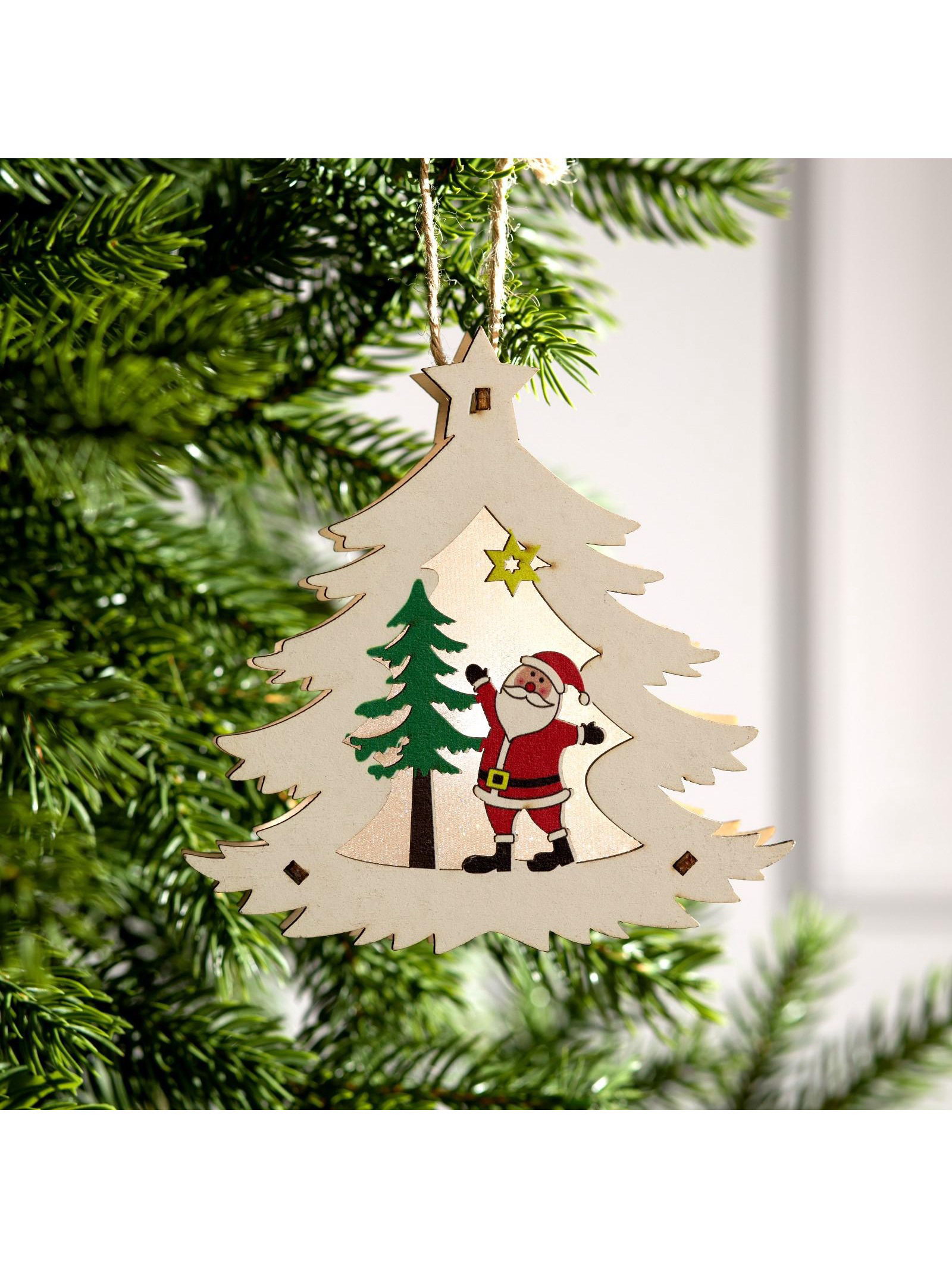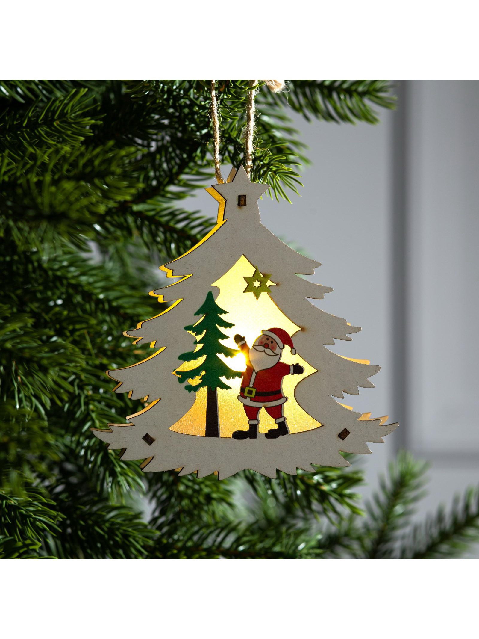 Ёлочная игрушка "Ёлочка с Дедом Морозом", 12х11х2 см, от батареек, свечение тёплое белое, 11x12x2 см., Luazon Lighting, Китай