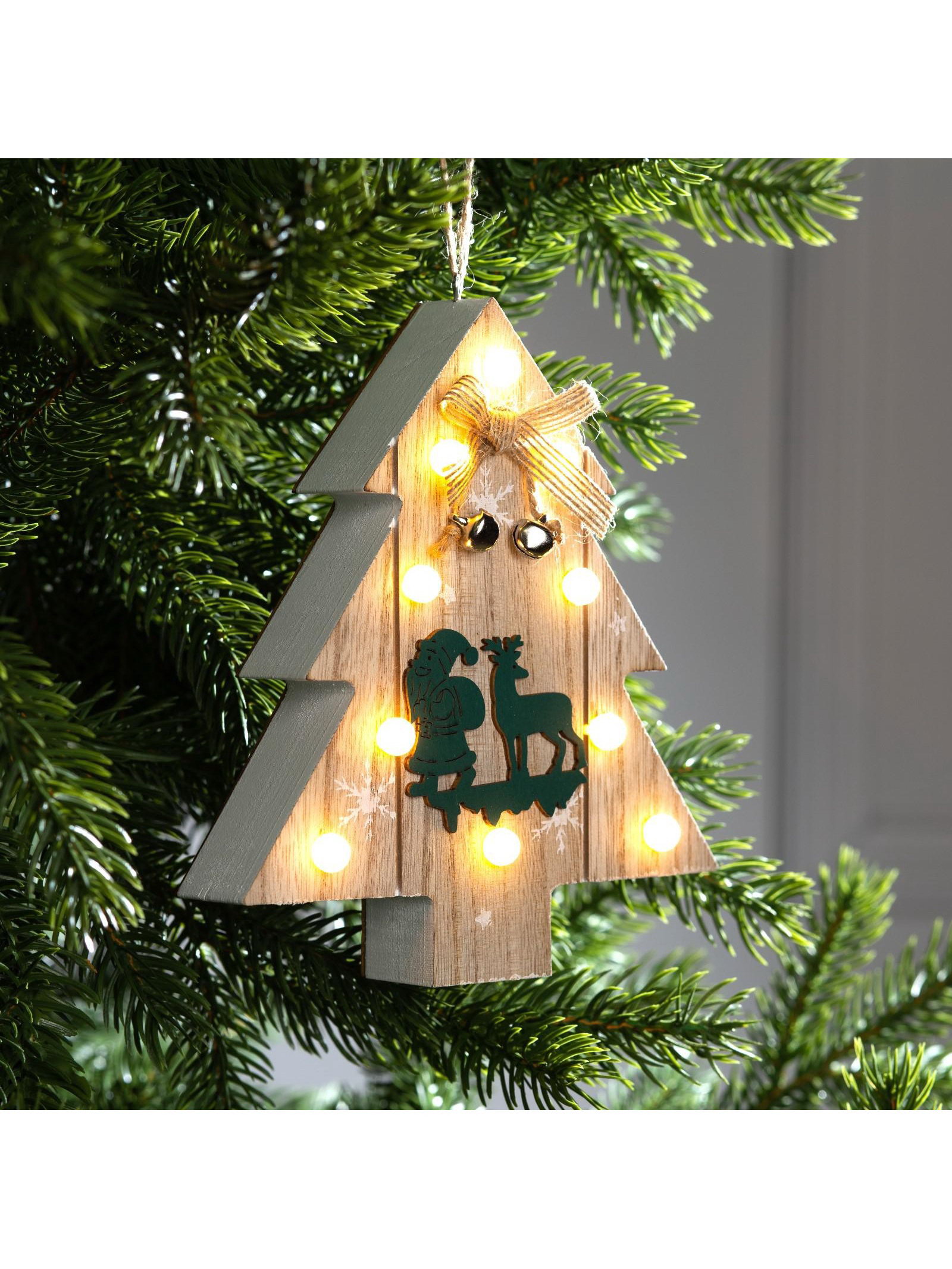 Ёлочная игрушка "Ёлочка с Дедом Морозом и оленем", 16х14х3, от батареек АААx2, свечение тёплое белое, 14x16x3 см., Luazon Lighting, Китай
