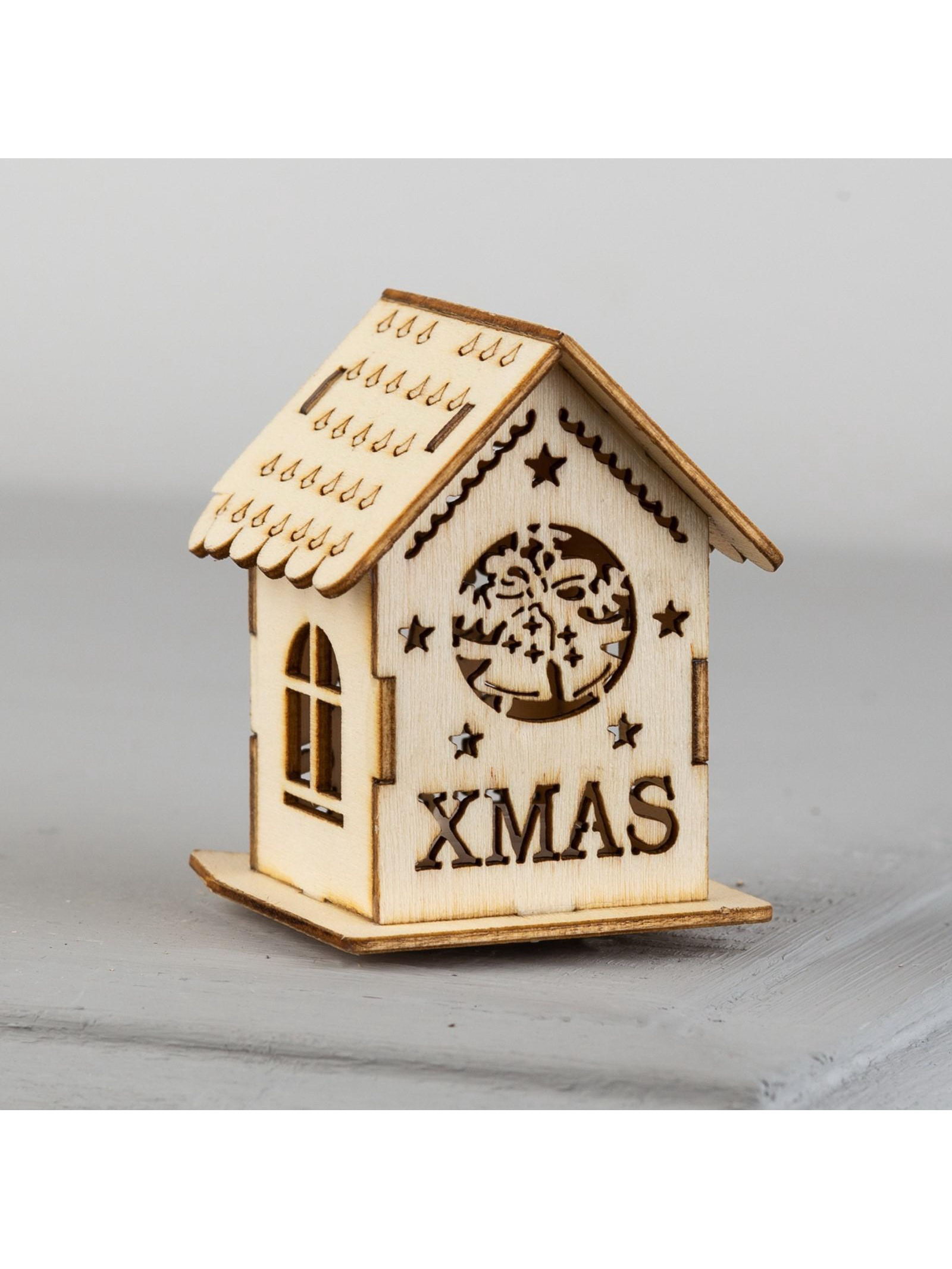 Ёлочная игрушка "Домик с колокольчиками", 6х4.5х4.5 см, от батареек, свечение тёплое белое, 4.5x6x4.5 см., Luazon Lighting, Китай