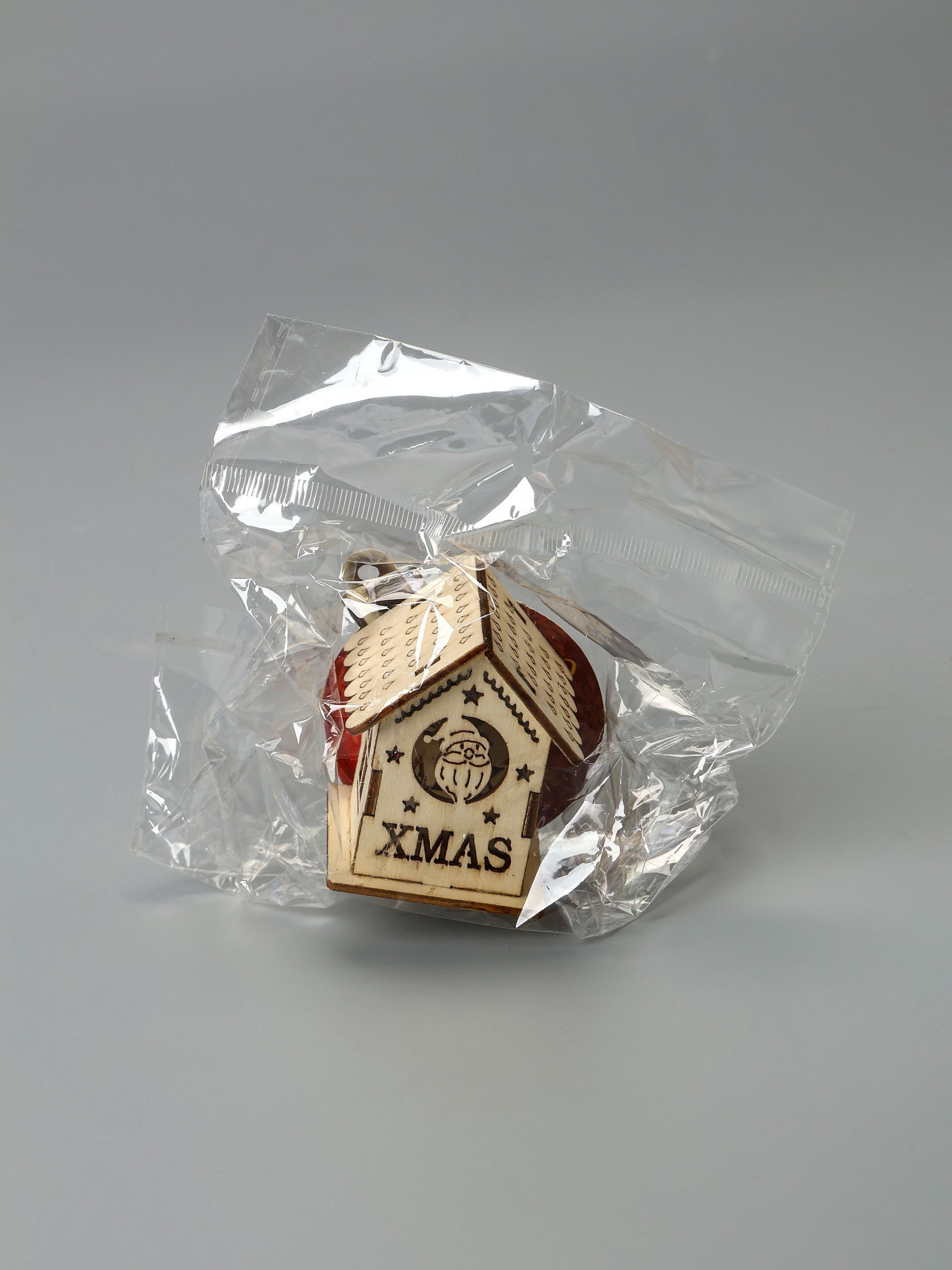 Ёлочная игрушка "Домик с Дедом Морозом", 6x4.5x4.5 см, от батареек, свечение тёплое белое, 4.5x6x4.5 см., Luazon Lighting, Китай