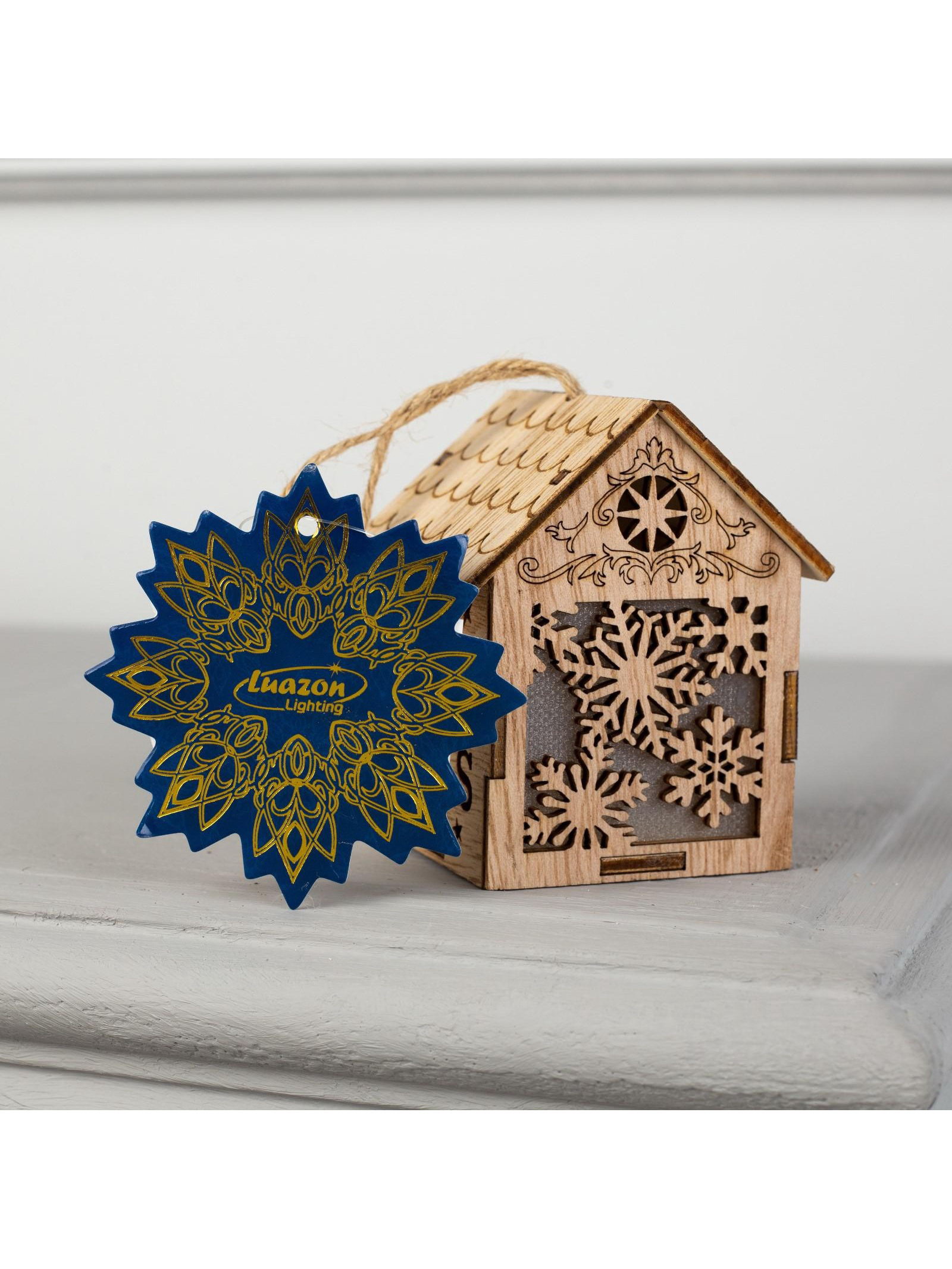 Ёлочная игрушка "Домик со снежинками", 8х6.5х6 см, от батареек, свечение тёплое белое, 6.5x8x6 см., Luazon Lighting, Китай