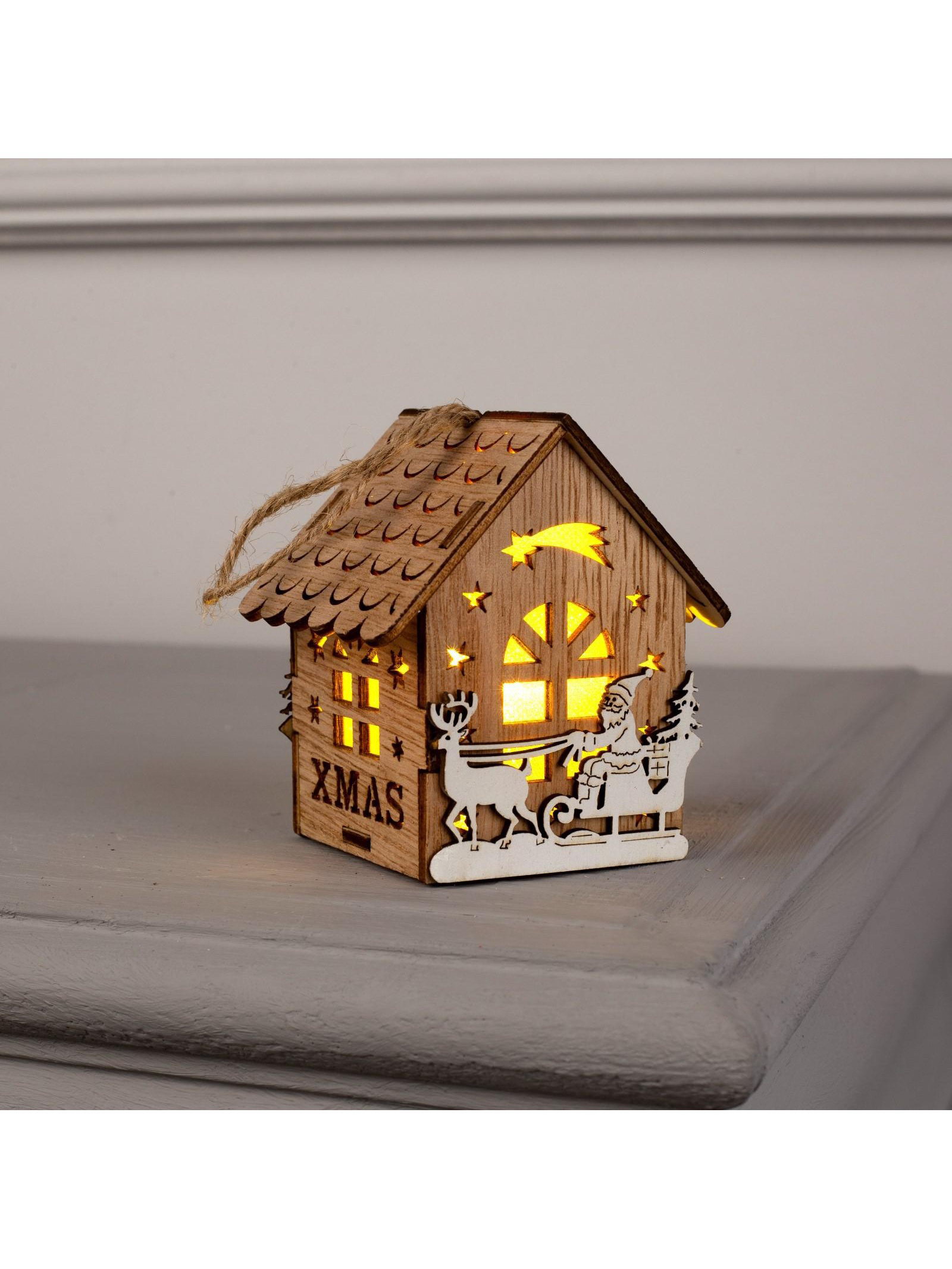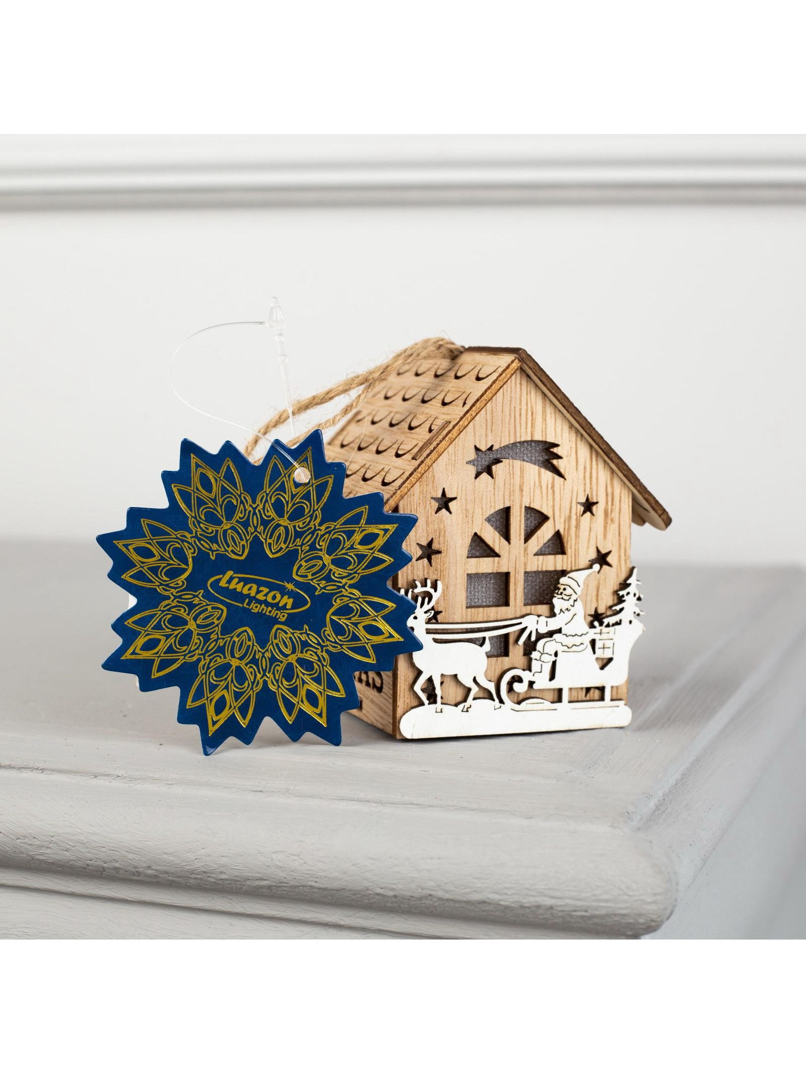 Ёлочная игрушка "Домик с Дедом Морозом на санках", 8х7х5.5 см, от батареек, свечение тёплое белое, 7x8x5.5 см., Luazon Lighting, Китай