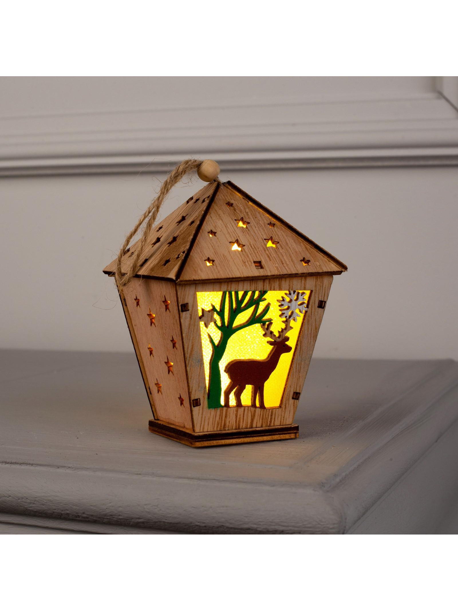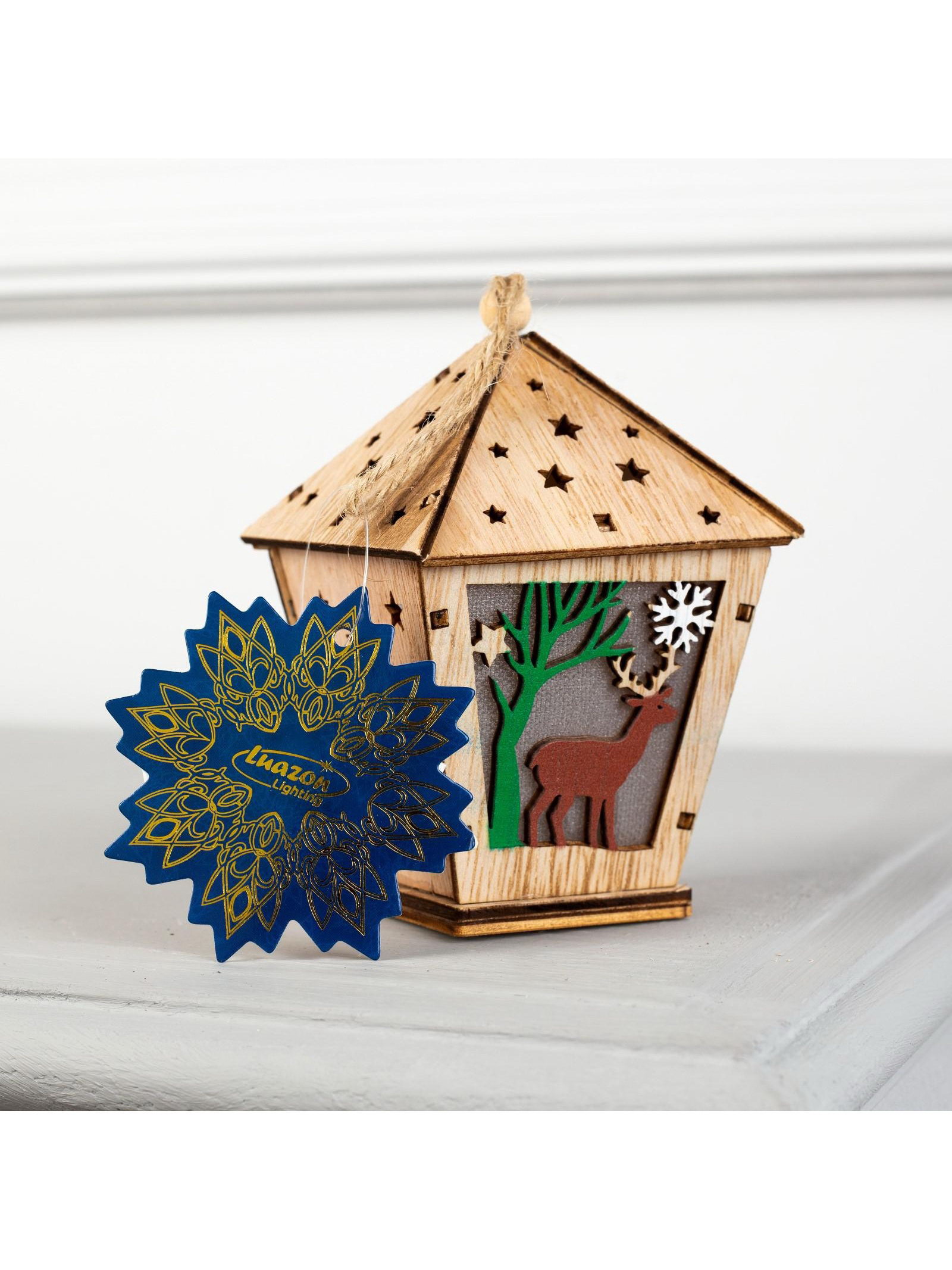 Ёлочная игрушка "Фонарь с оленем", 11х8х8 см, от батареек, свечение тёплое белое, 8x11x8 см., Luazon Lighting, Китай
