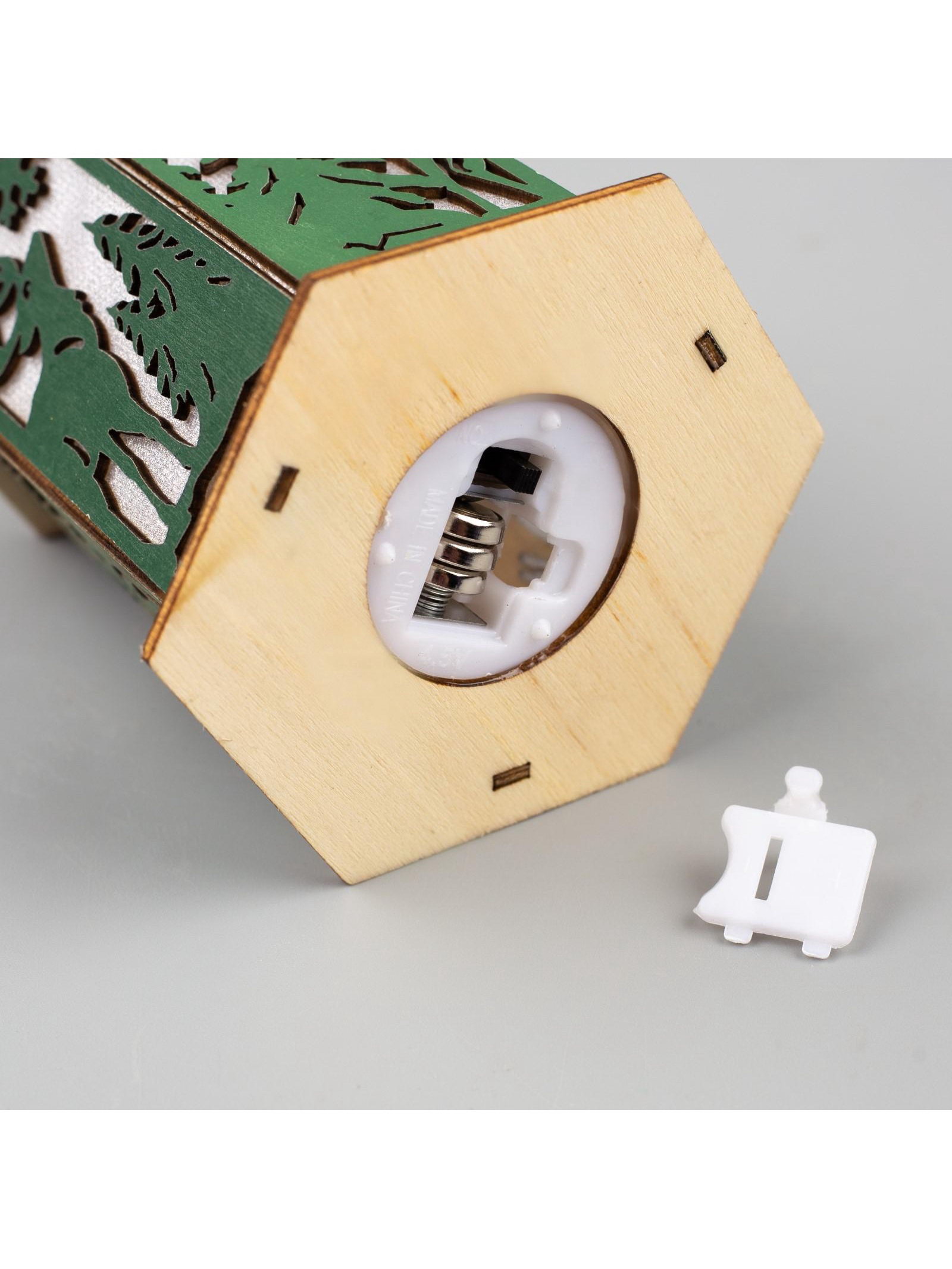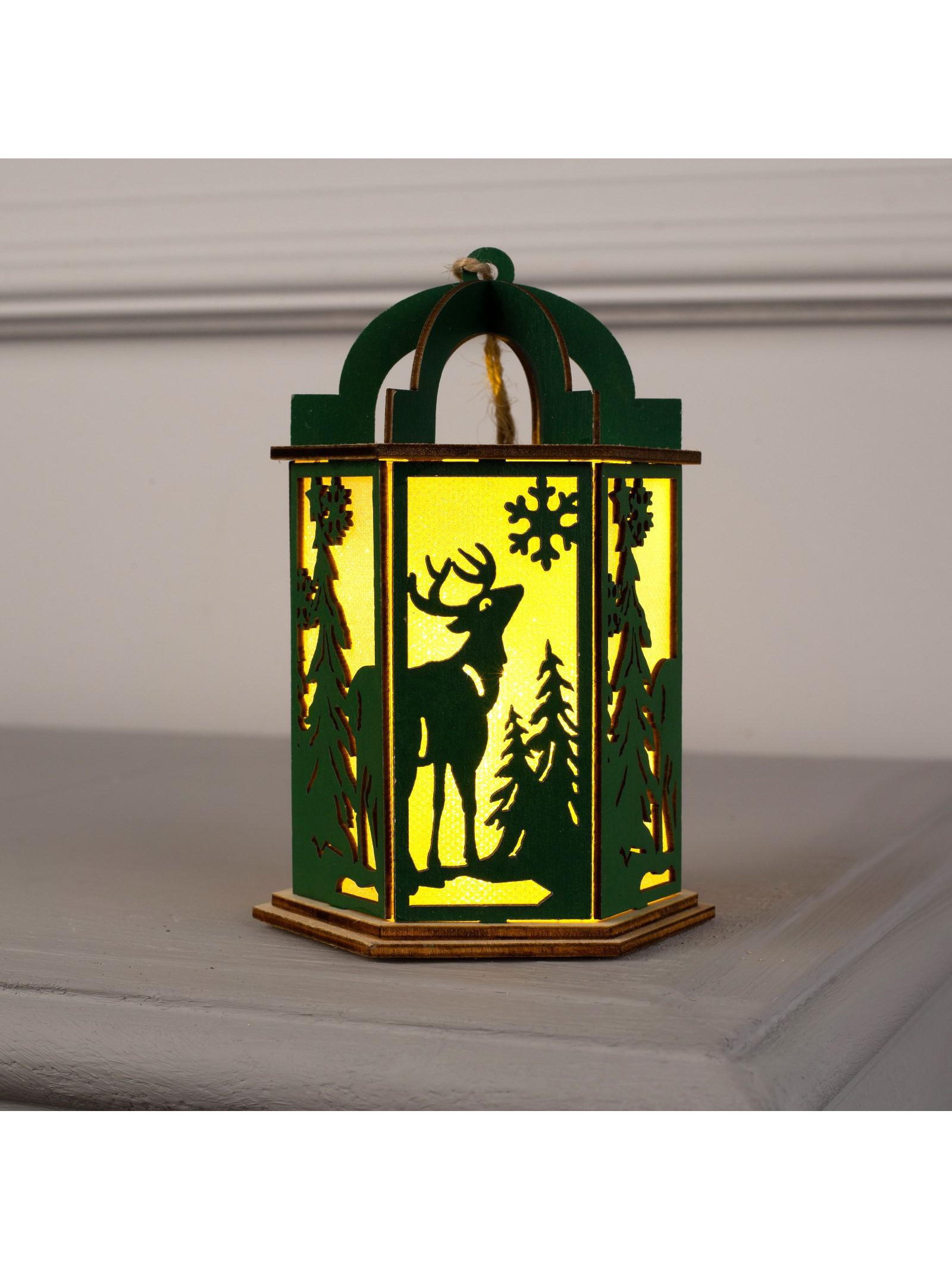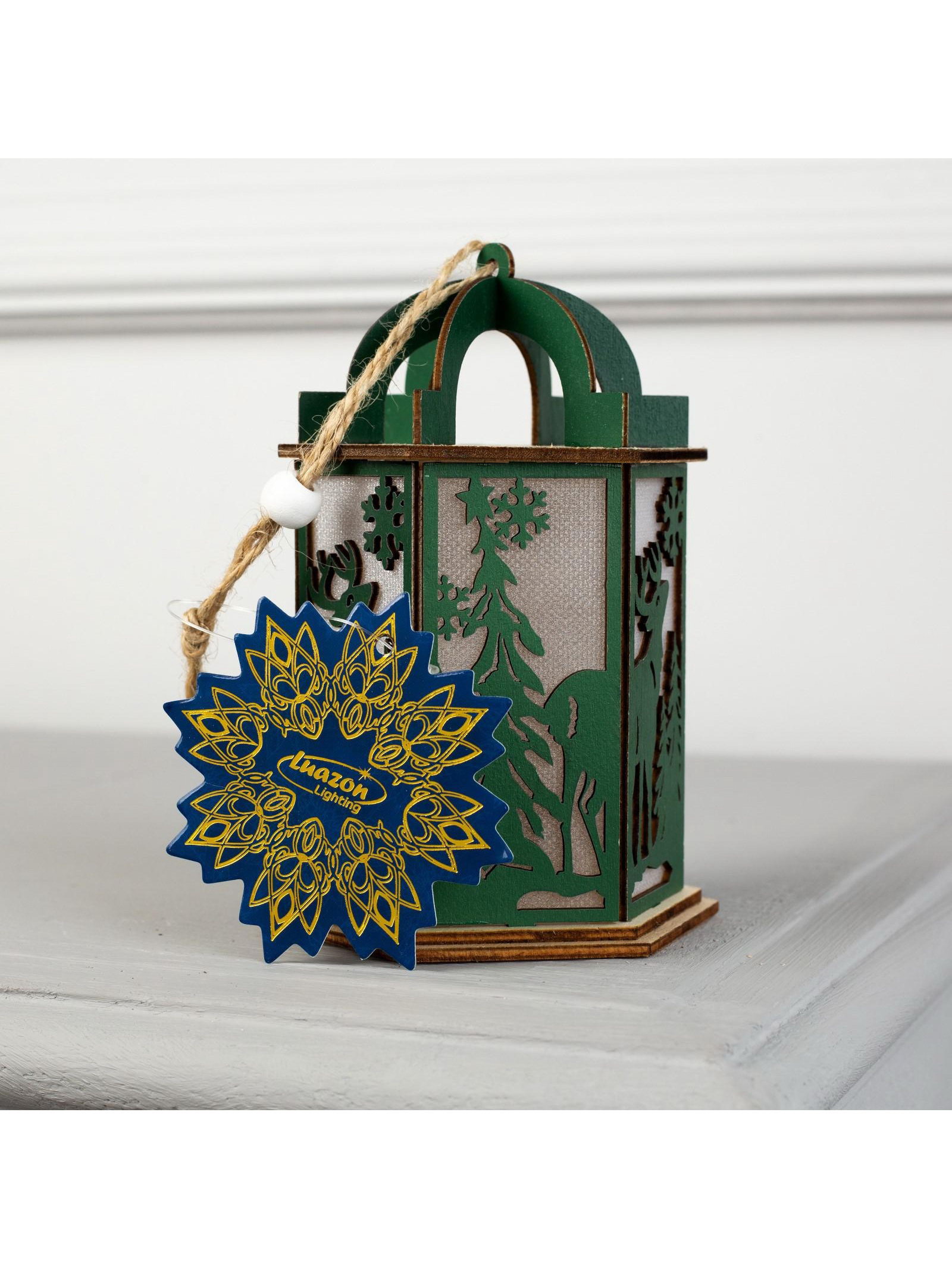 Ёлочная игрушка "Зелёный фонарь с оленем", 13х9х9 см, от батареек, свечение тёплое белое, 9x13x9 см., Luazon Lighting, Китай