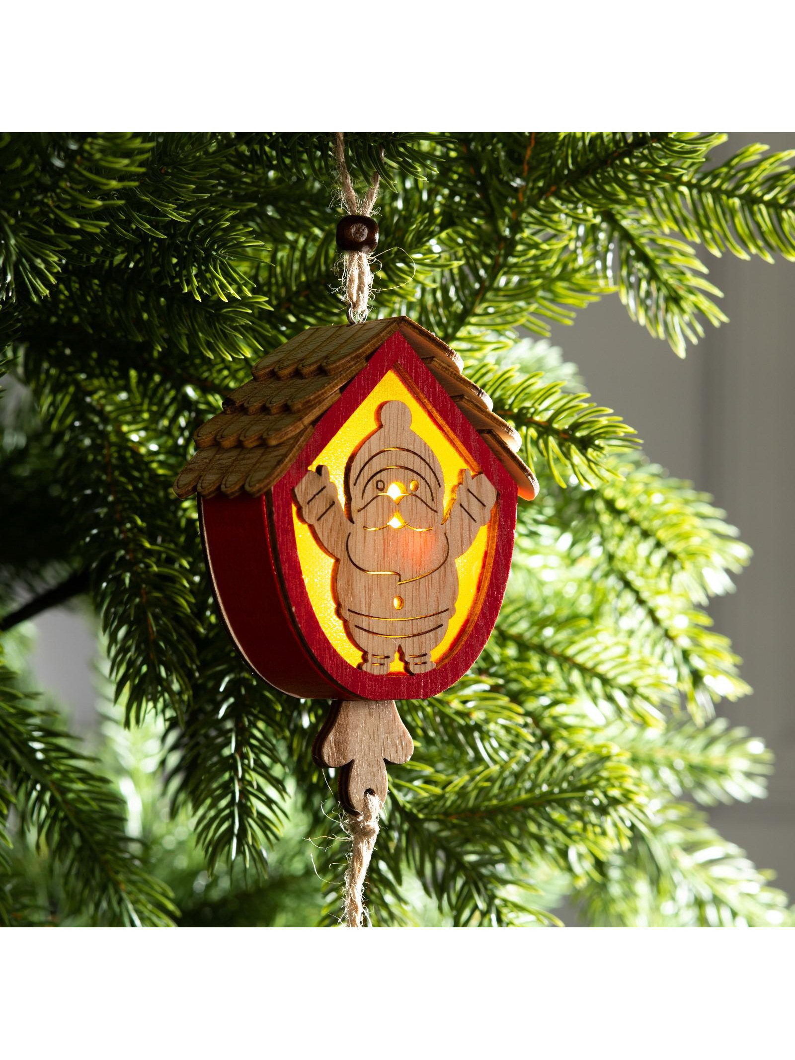 Ёлочная игрушка "Домик с Дедом Морозом", 9х8х4 см, от батареек, свечение тёплое белое, 8x9x4 см., Luazon Lighting, Китай