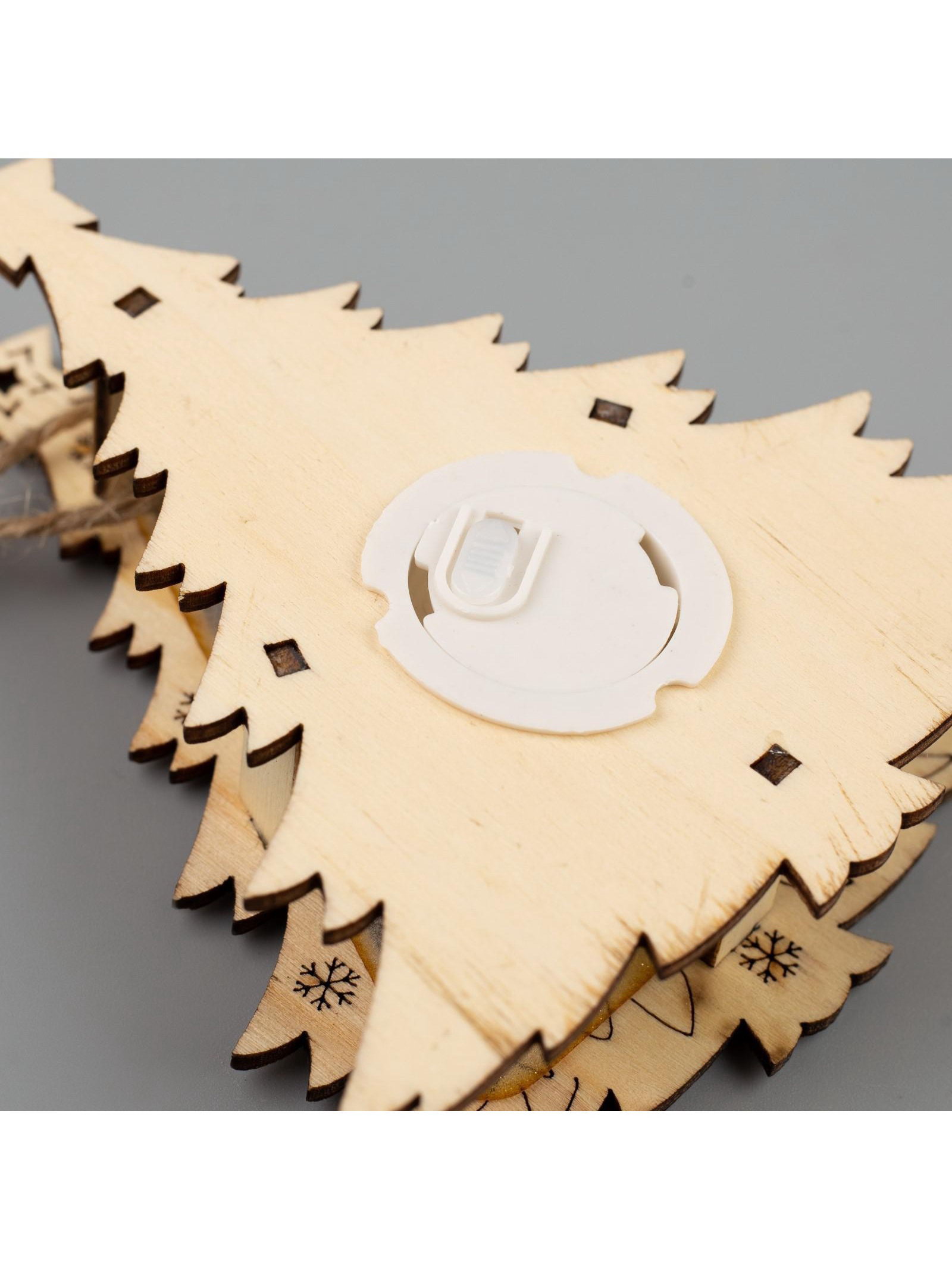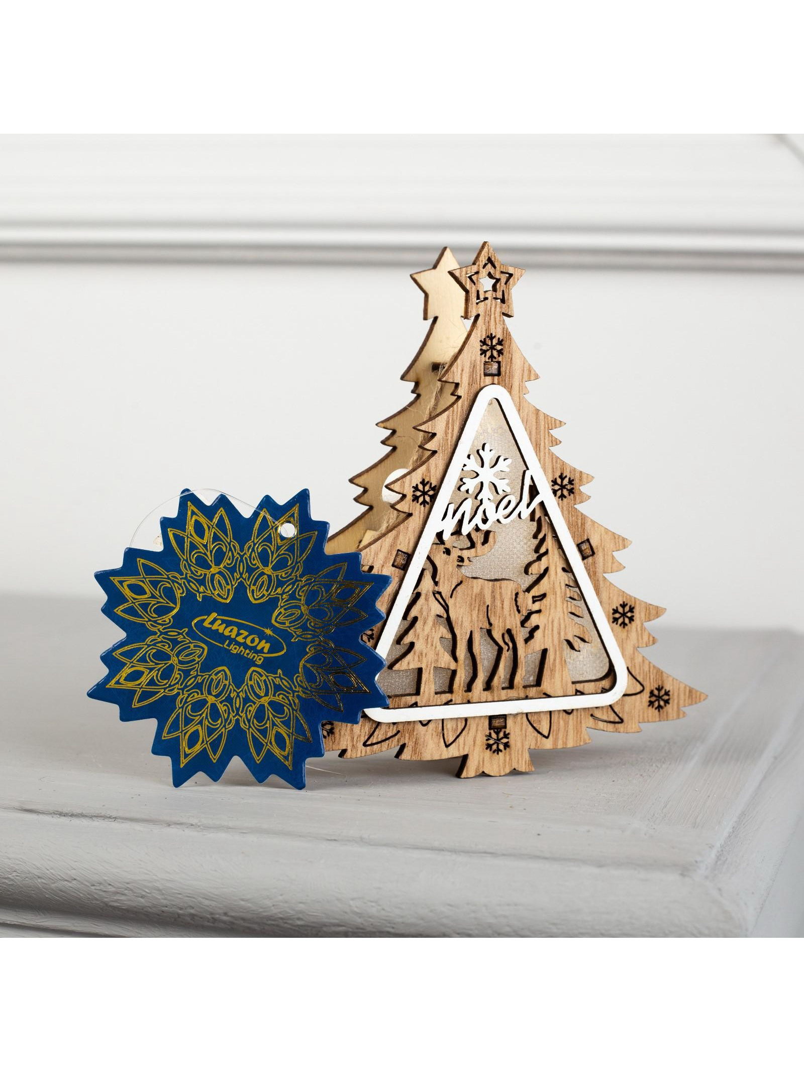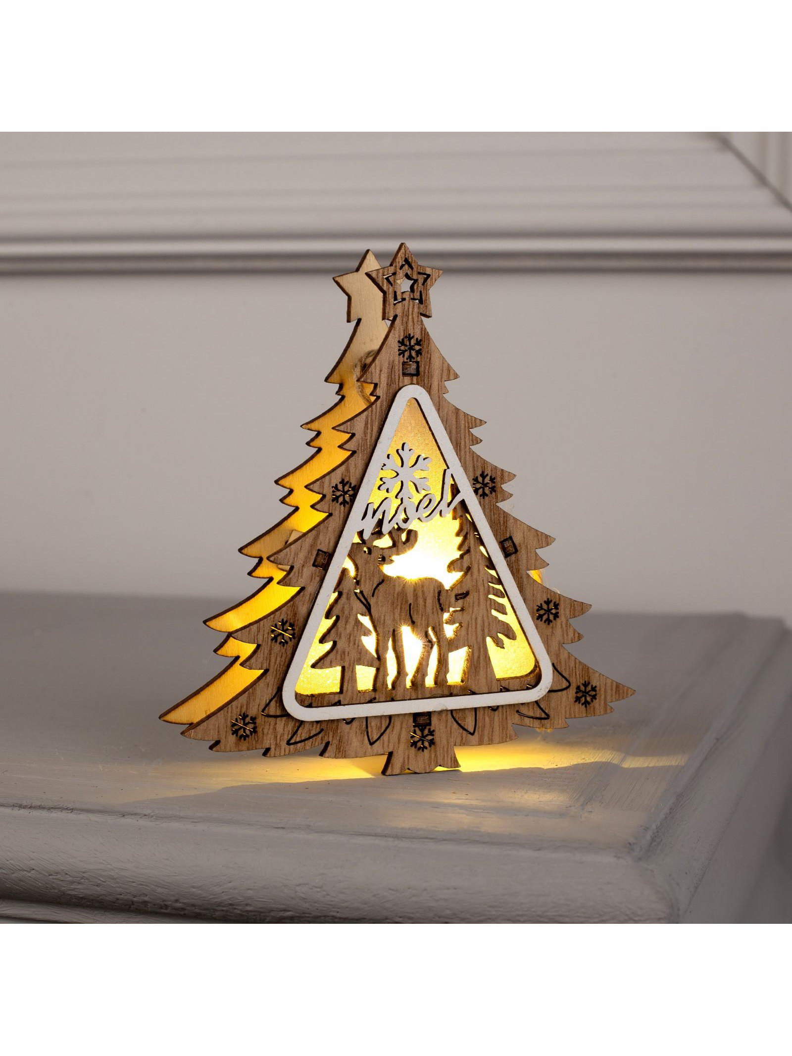 Ёлочная игрушка "Ёлочка с оленем", 11х11х2 см, от батареек, свечение тёплое белое, 11x11x2 см., Luazon Lighting, Китай