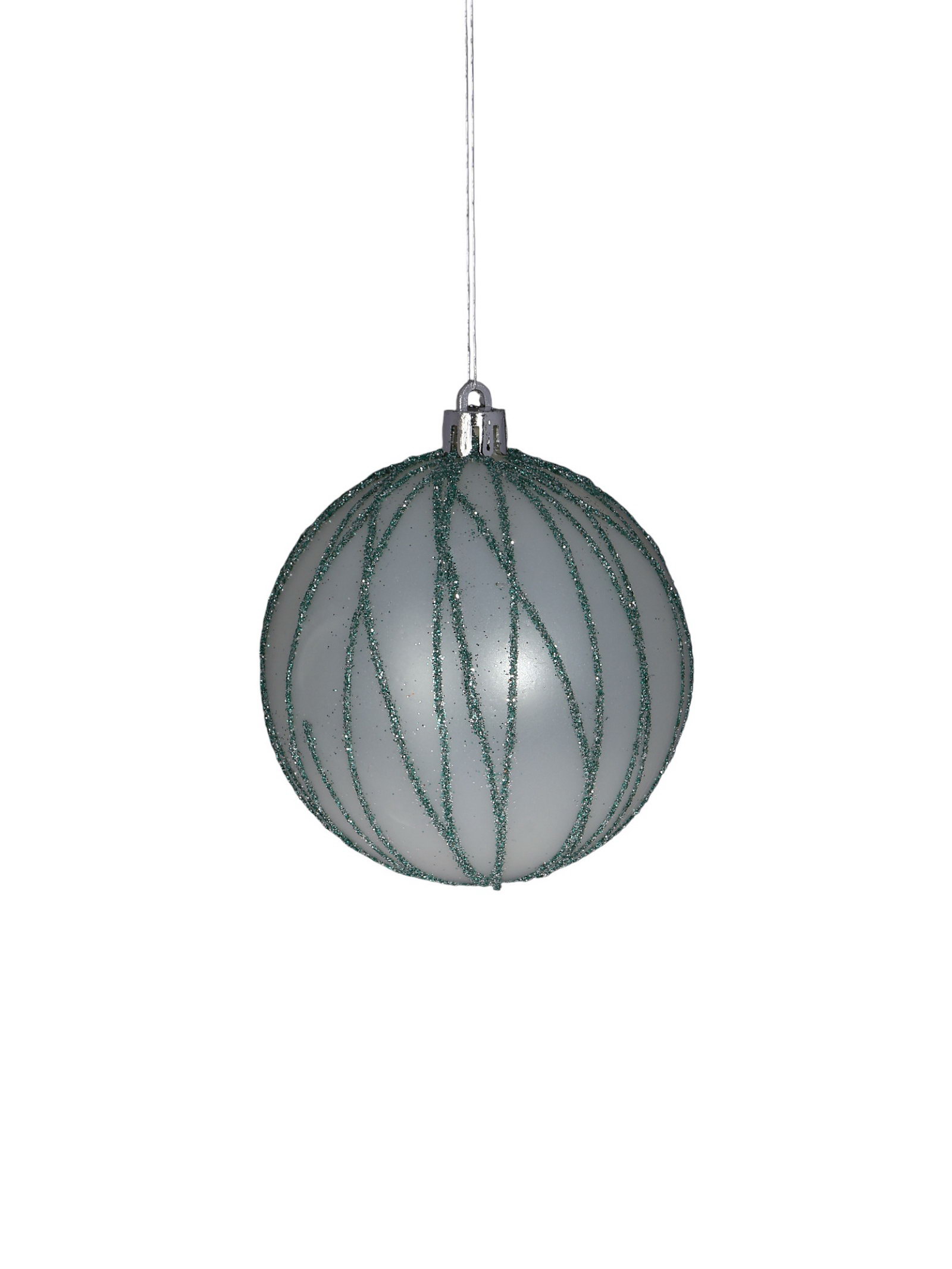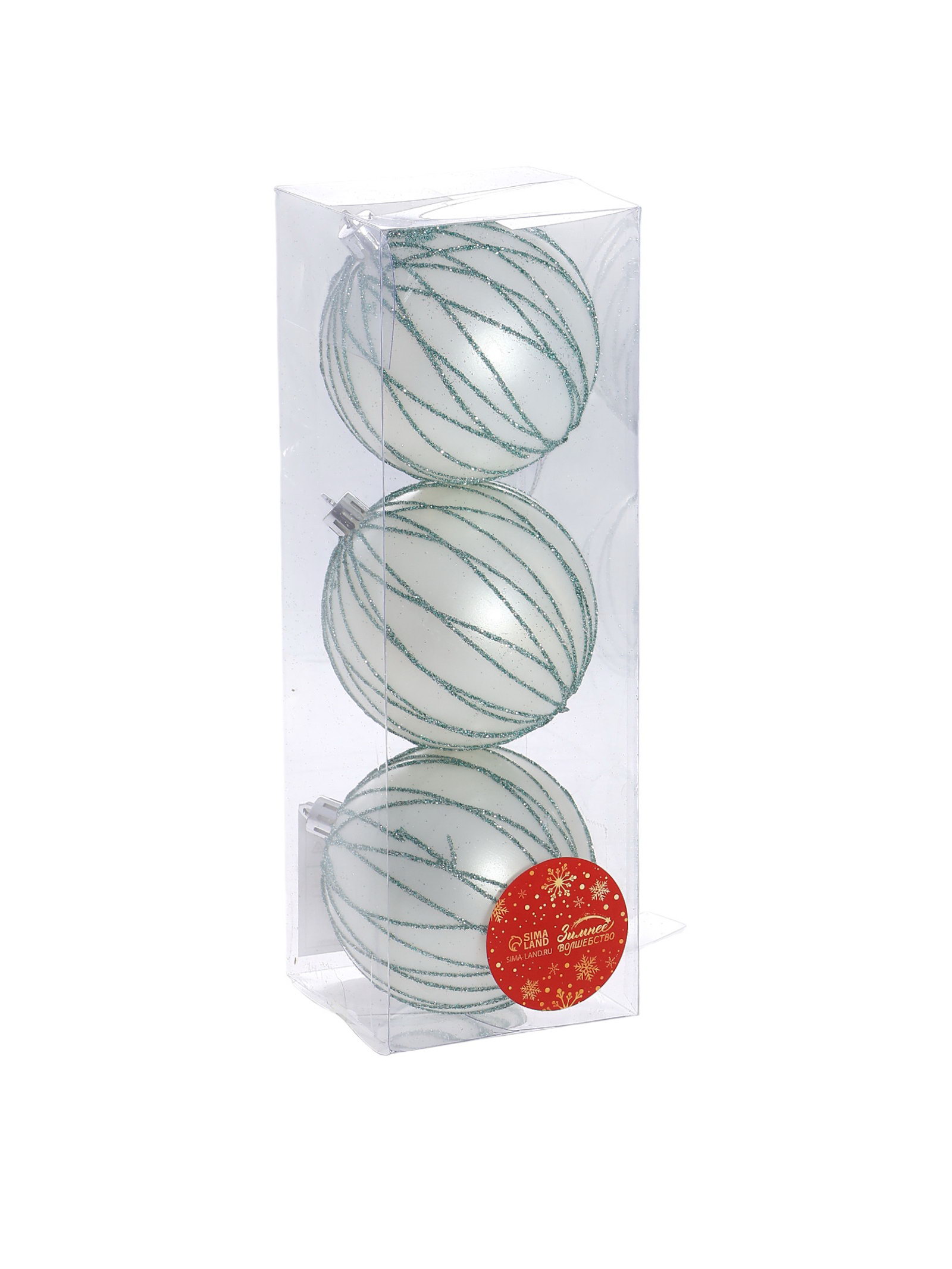 Ёлочные игрушки "Геометрический полосы", шары новогодние, d=8 см, набор 3 шт., зелёно-белый, 8x8 см., Зимнее волшебство, Китай