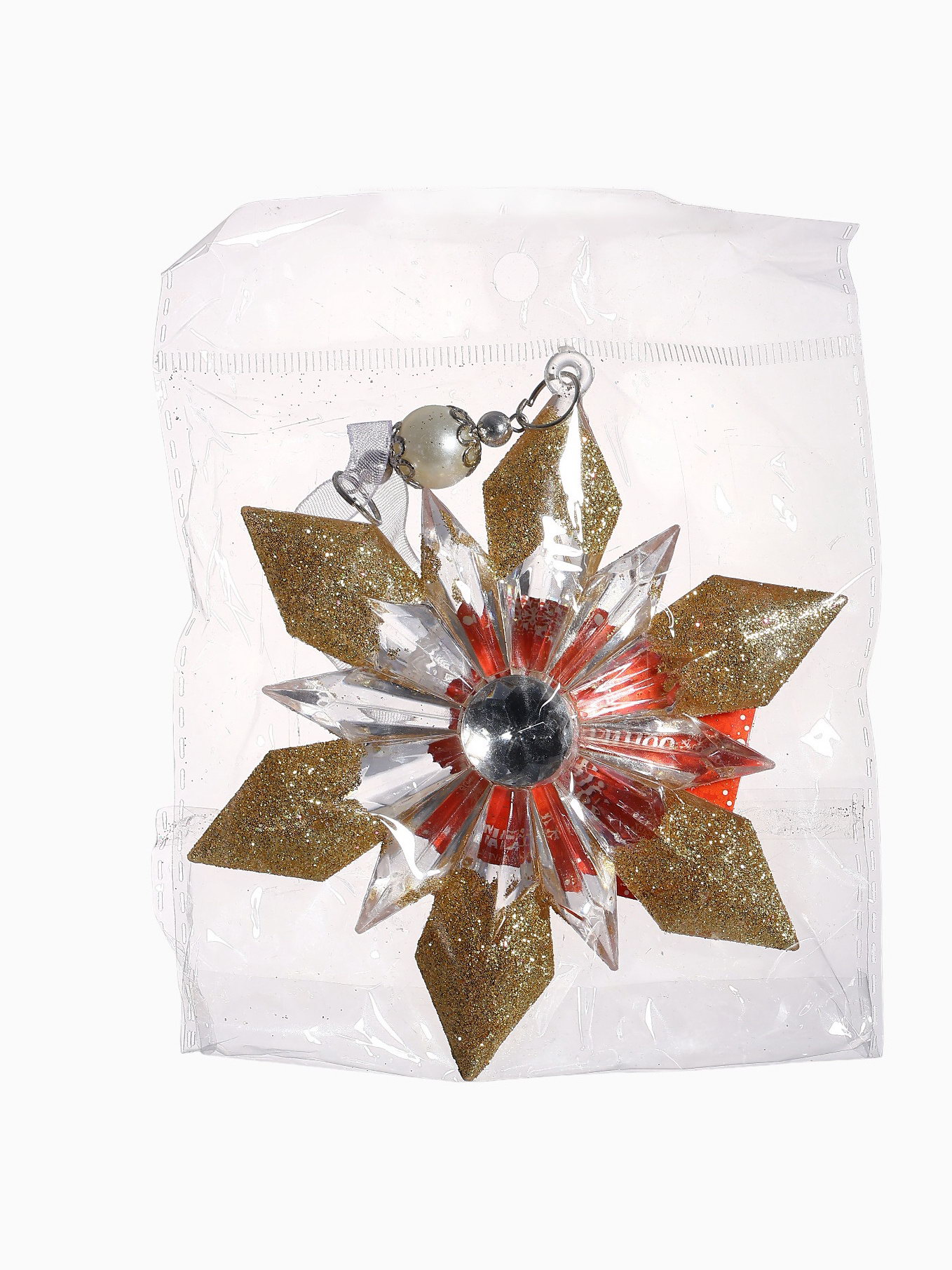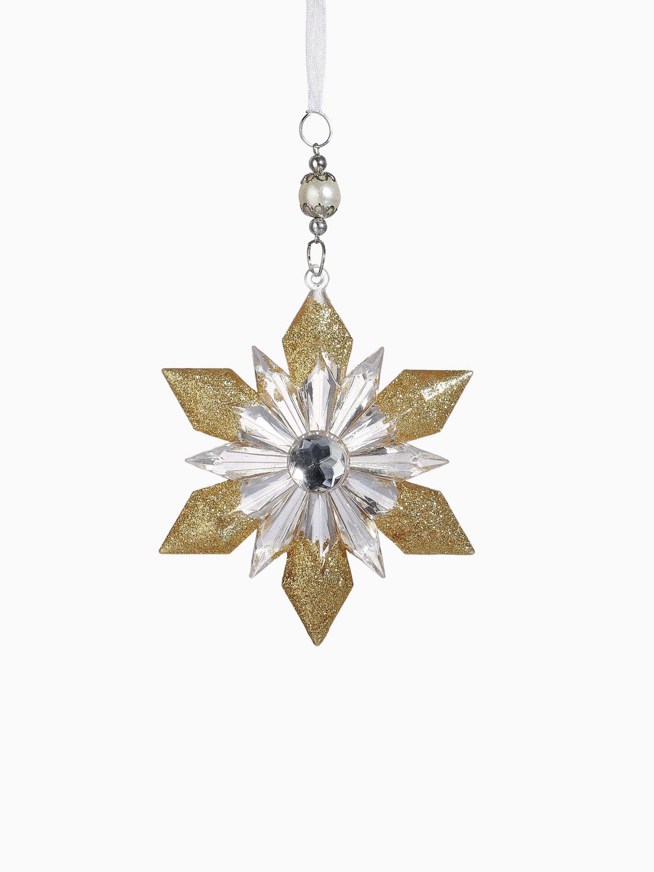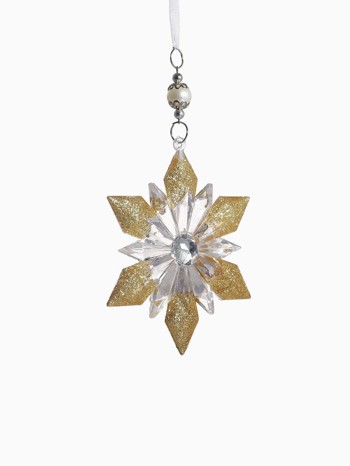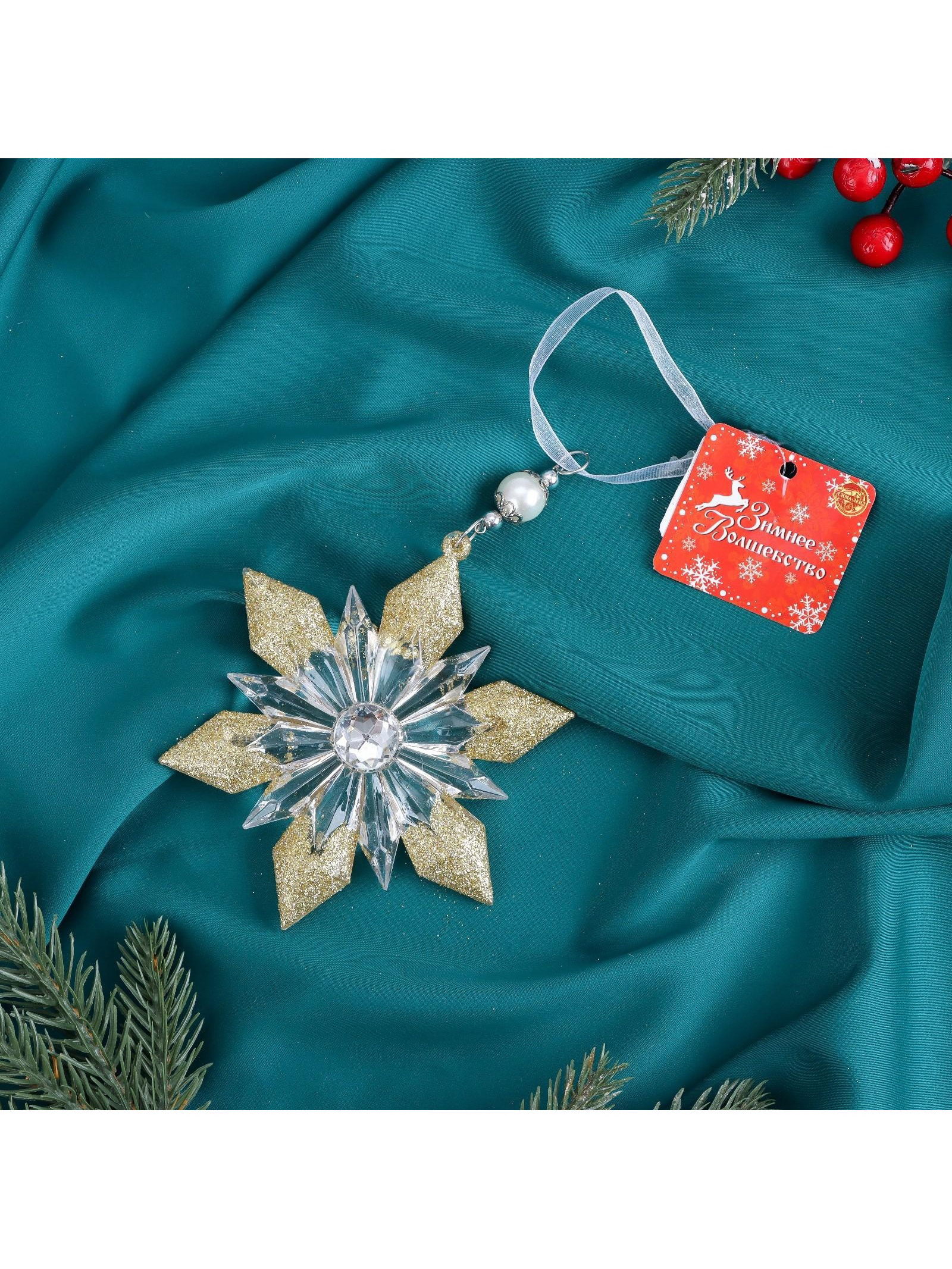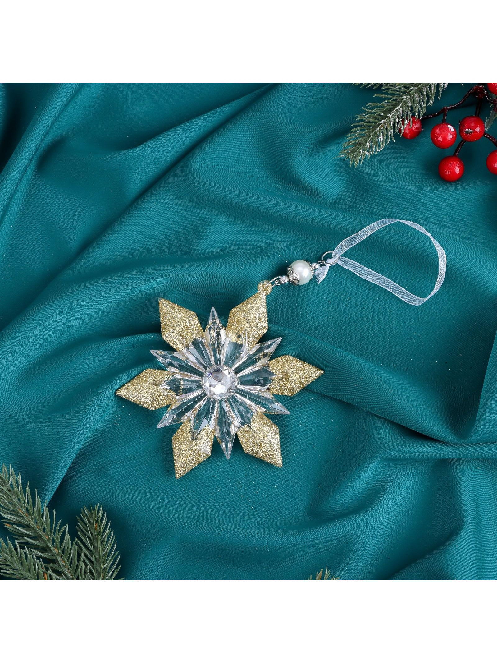 Ёлочная игрушка "Зимнее волшебство. Снежинка - лучистая сияние", 12.5x11.5 см, прозрачно-золотой, 12.5x11.5 см., Зимнее волшебство, Китай