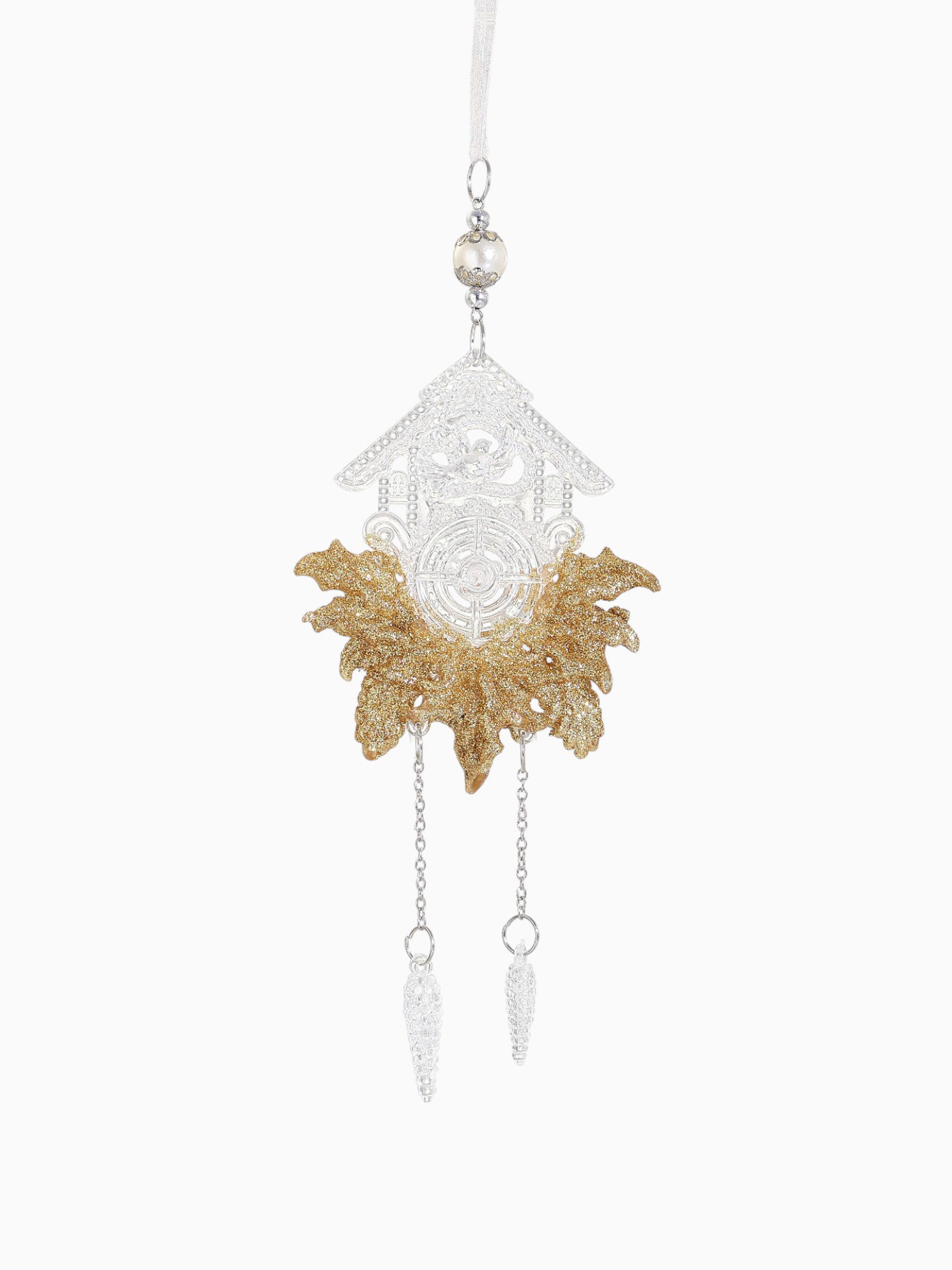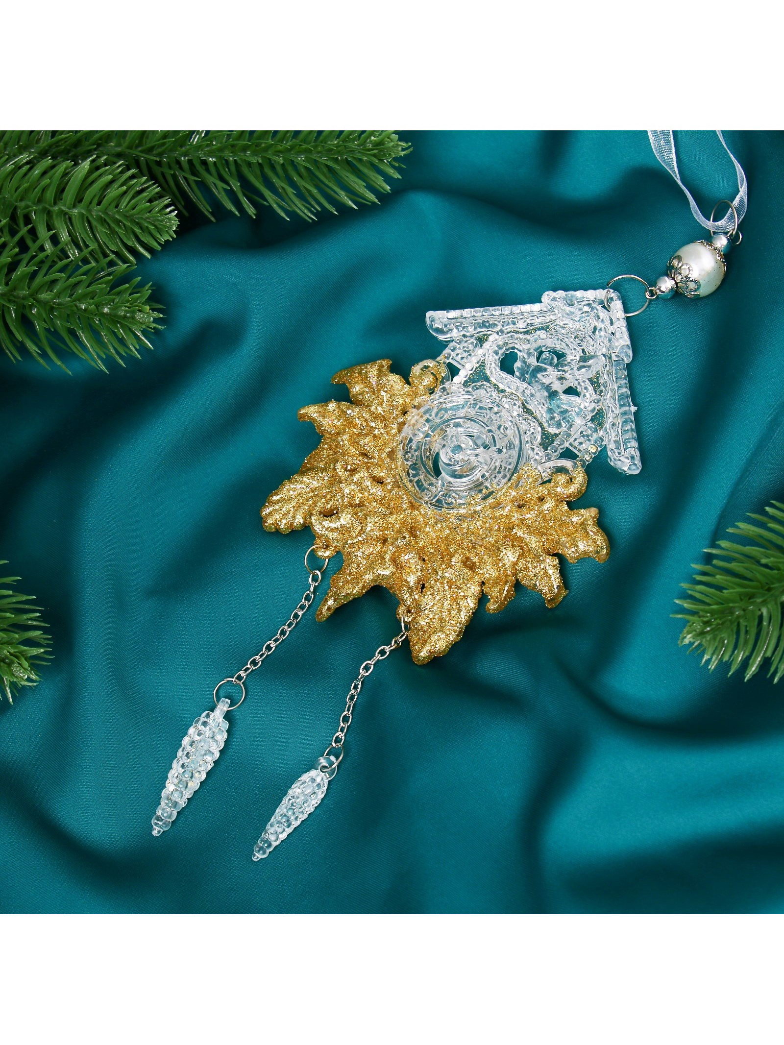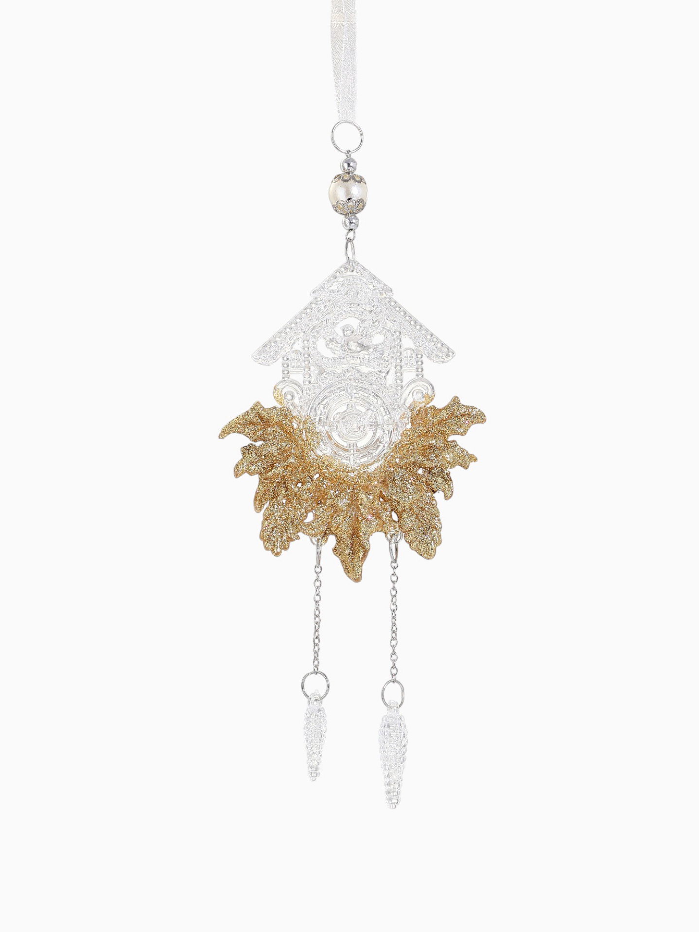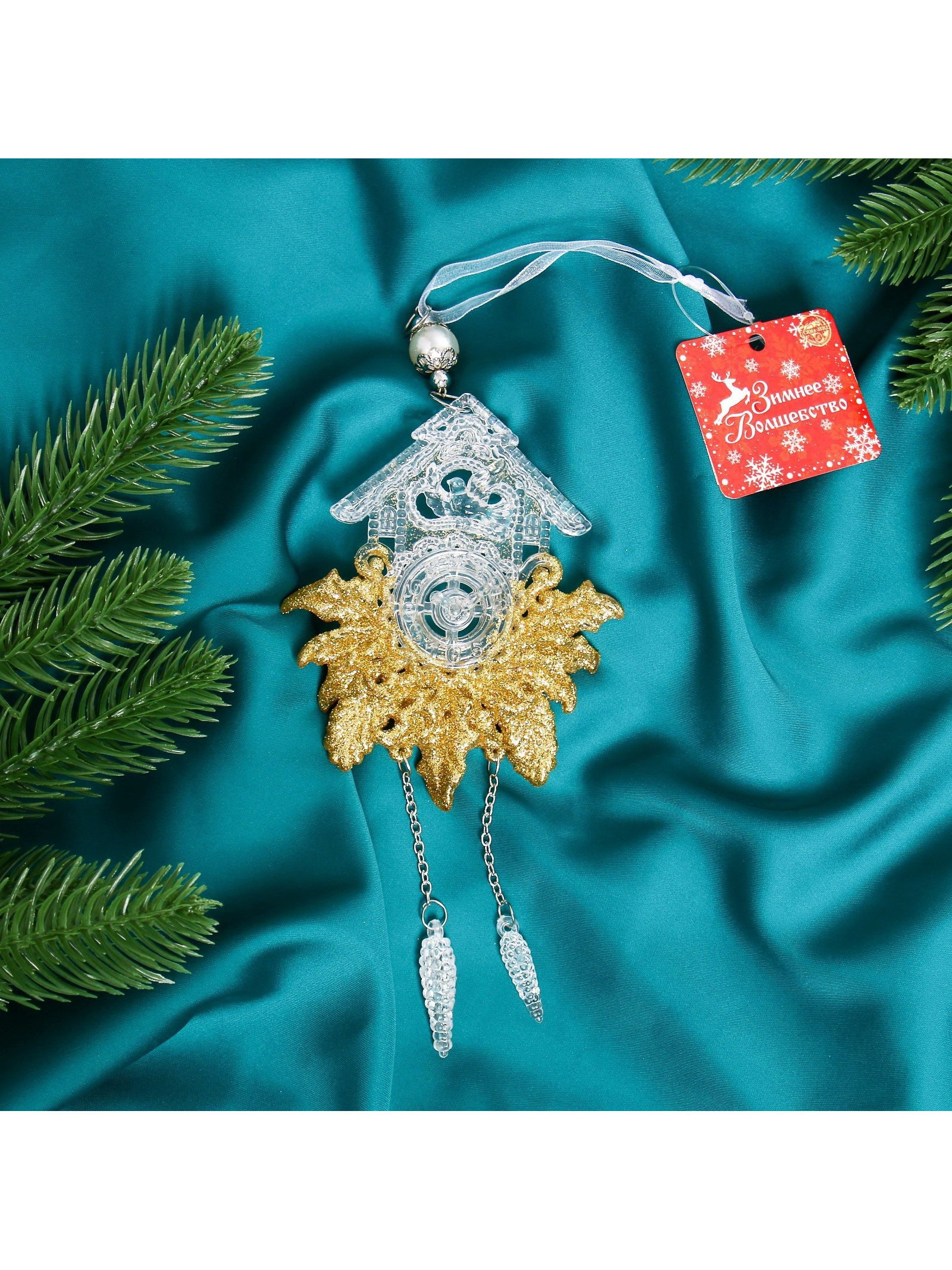 Ёлочная игрушка "Зимнее волшебство. Новогодние часы", 10x18 см, прозрачно-золотой, 10x18 см., Зимнее волшебство, Китай