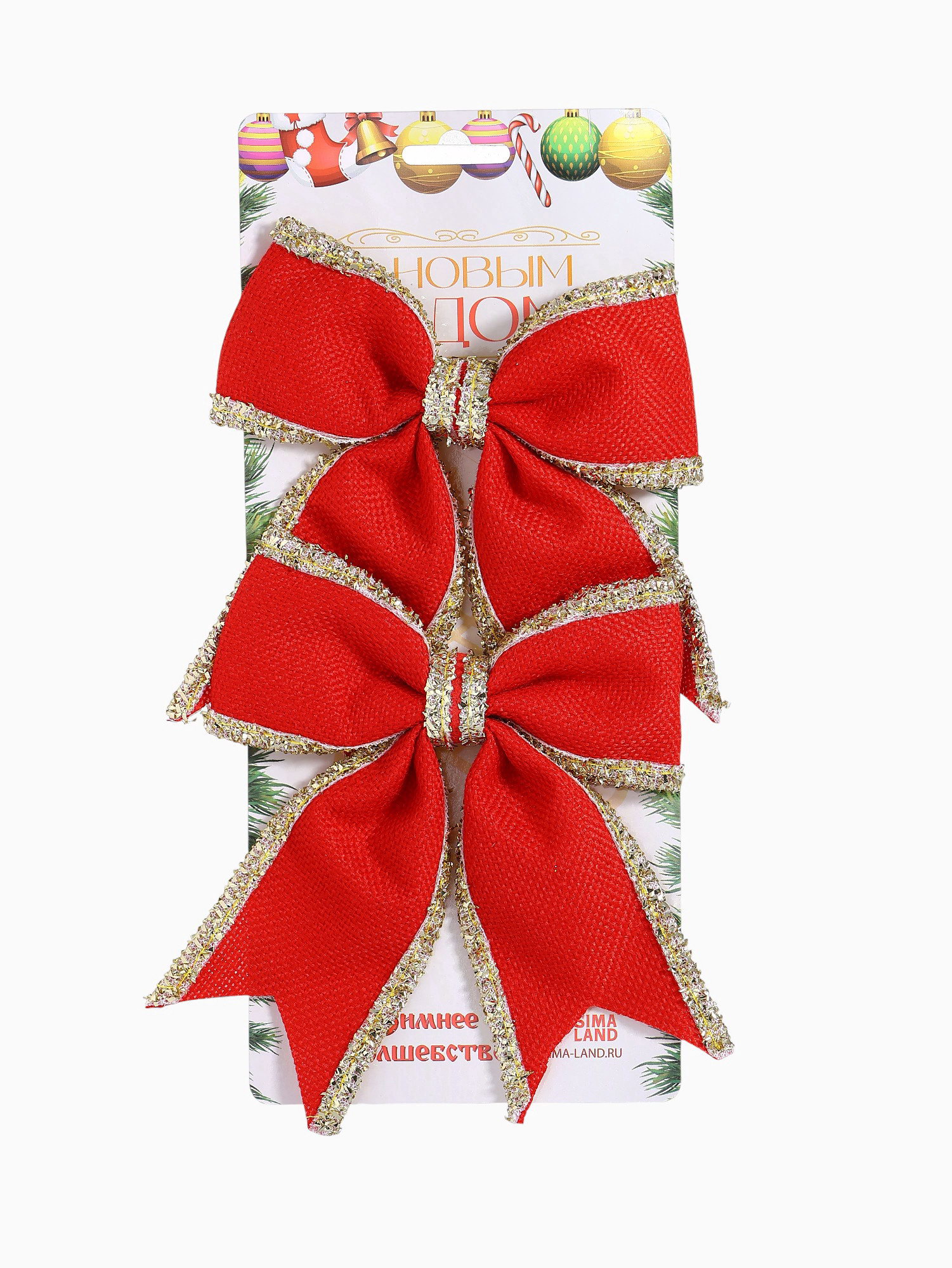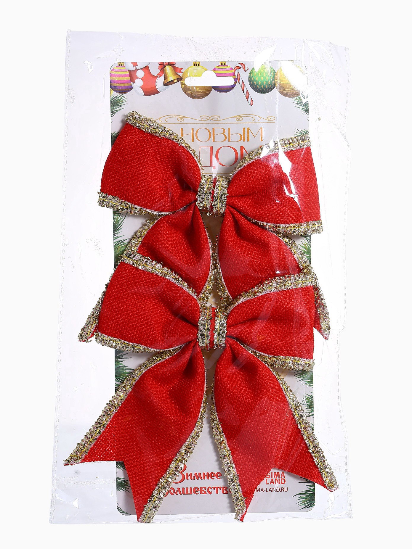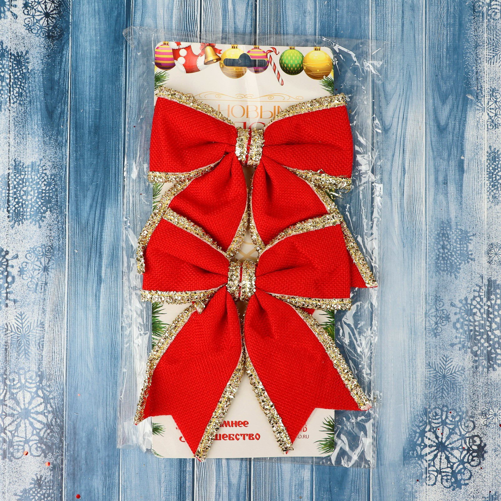 Ёлочные игрушки 2 шт. "Зимнее волшебство. Бант классический" пластик, 14x14 см, красный, 14x14 см., Зимнее волшебство, Китай