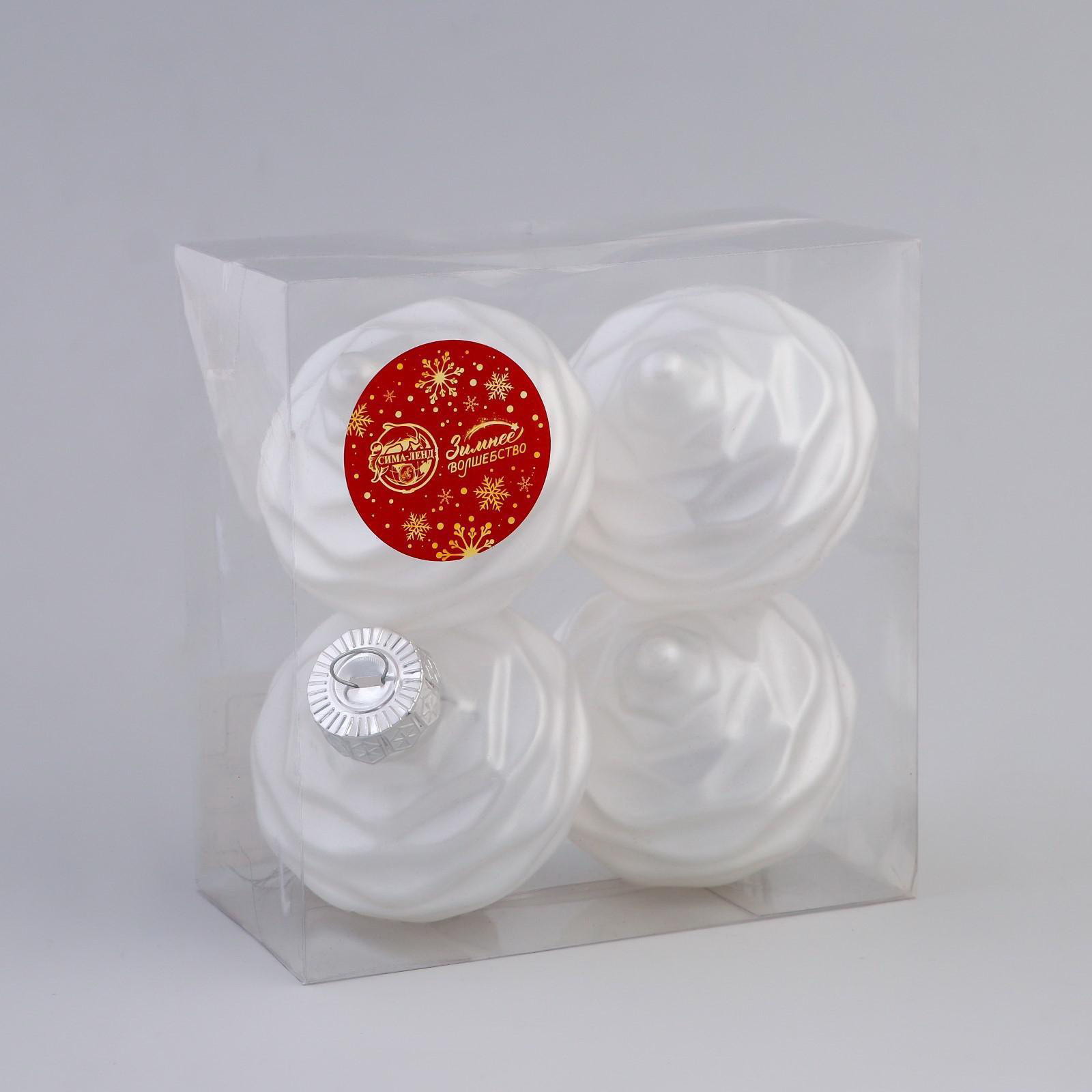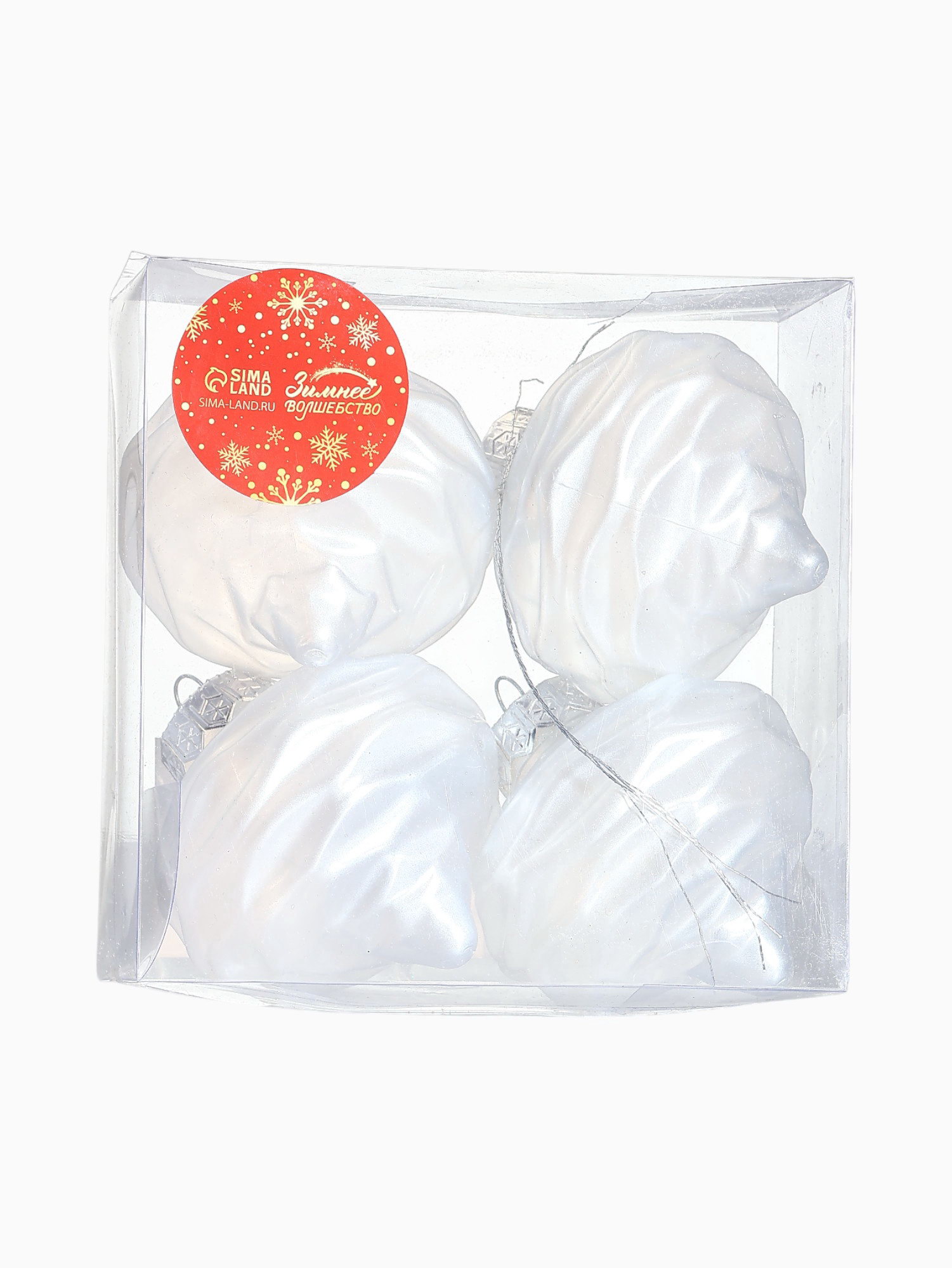 Ёлочные игрушки 4 шт. "Глория луковки волны" 7x7 см, белый, 7x7 см., Зимнее волшебство, Китай