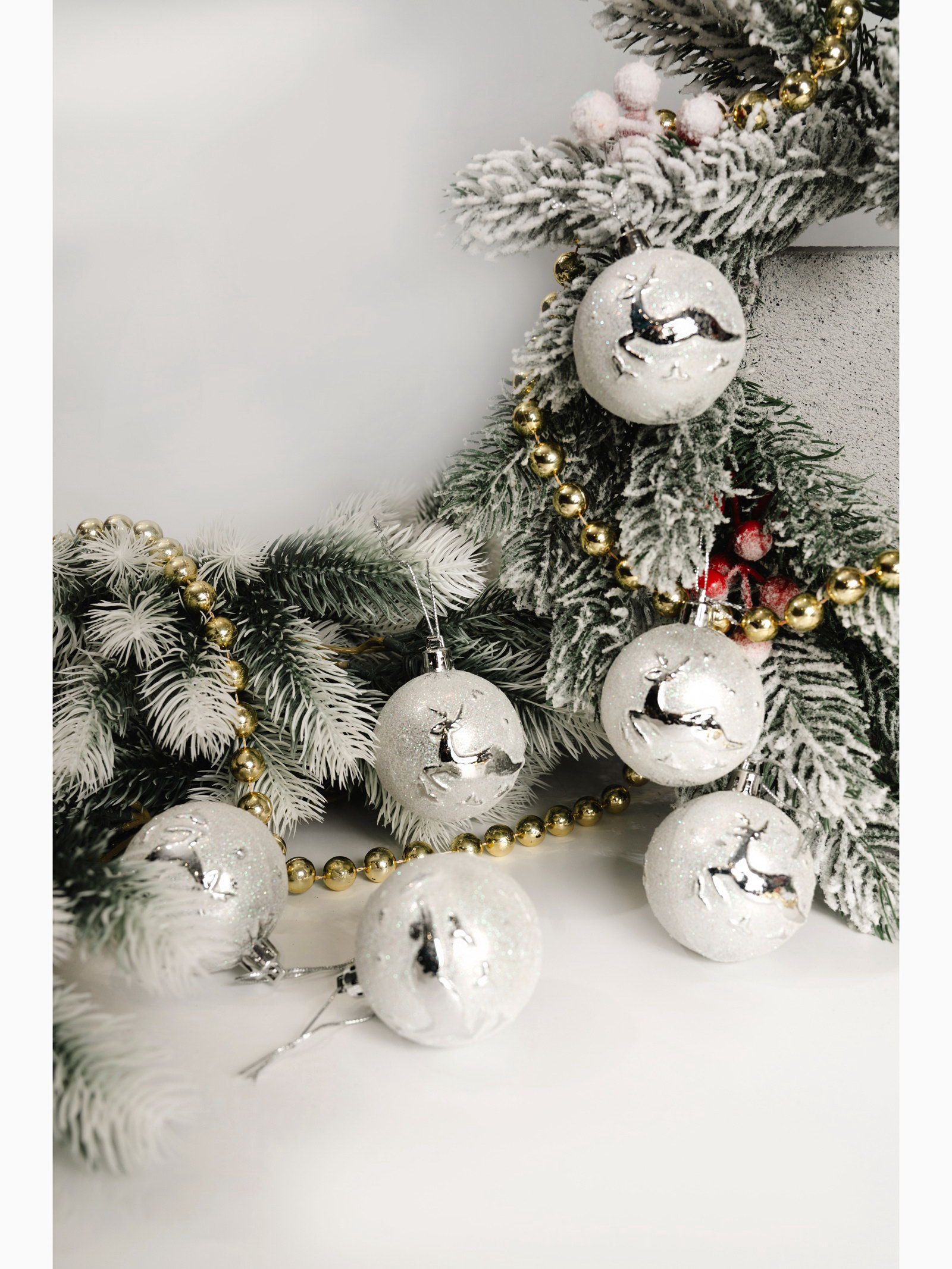 Ёлочные игрушки "Северный олень", шары новогодние, пластик, набор d=6 см, 6 шт., серебро, 6x6 см., Зимнее волшебство, Китай