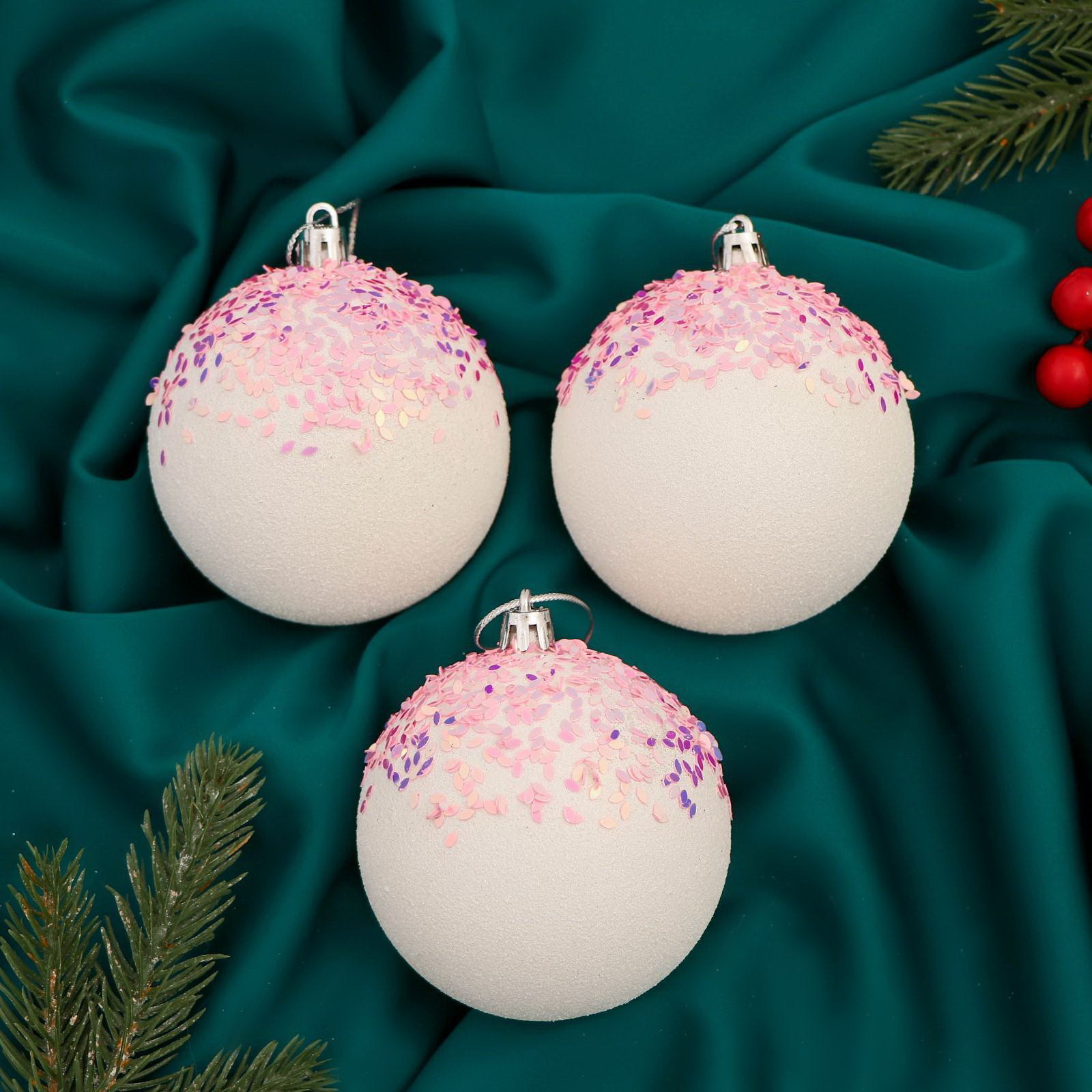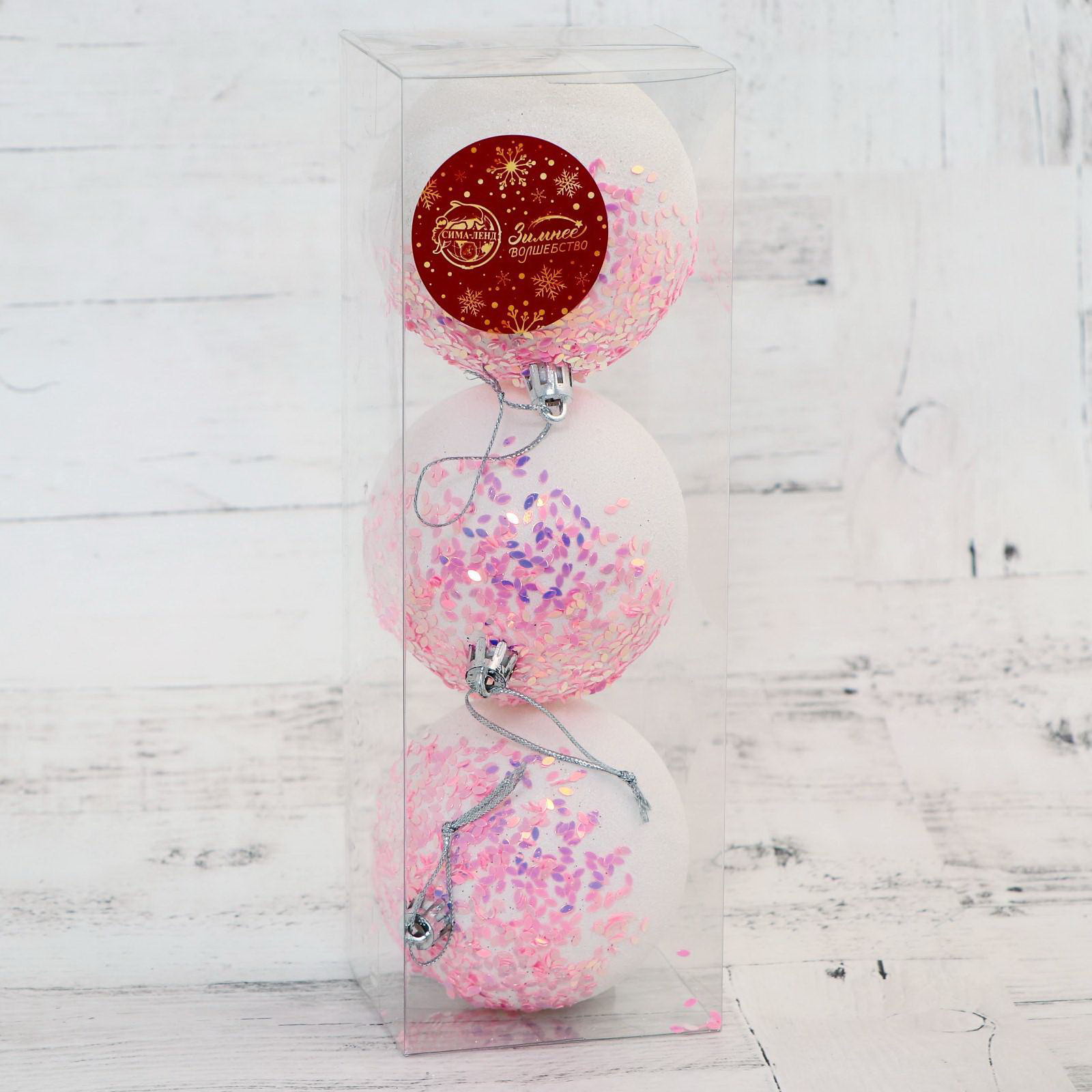 Ёлочные игрушки "Новелла блеск", шары новогодние, d=8 см, 3 шт., бело-розовый, 8x8 см., Зимнее волшебство, Китай