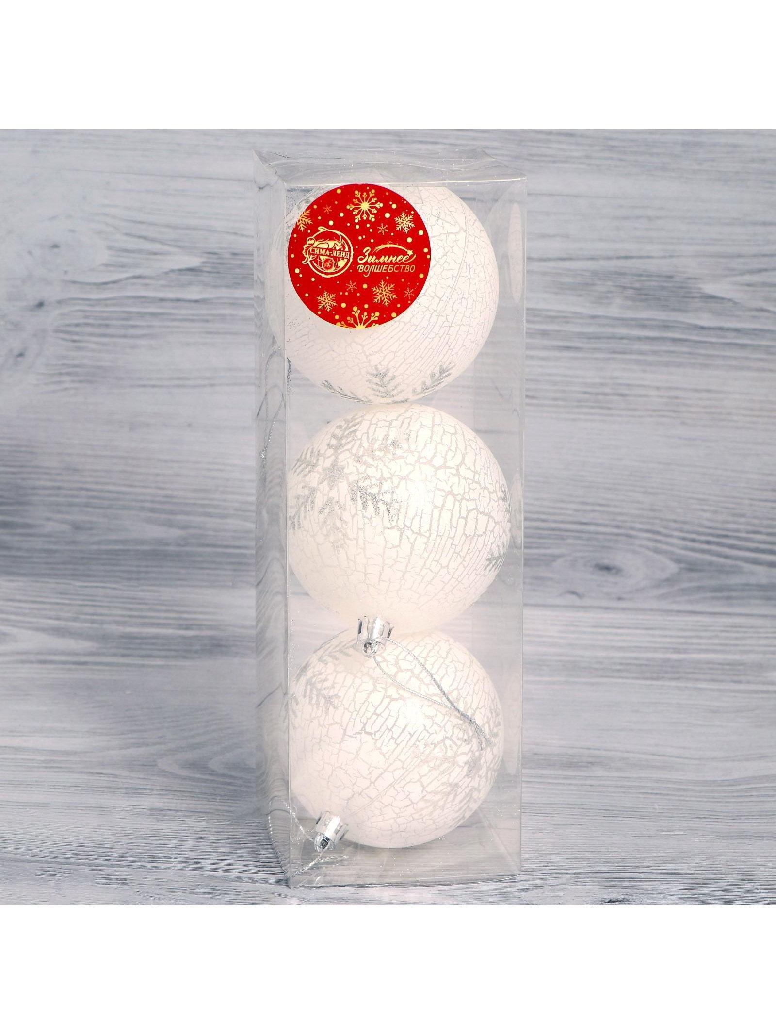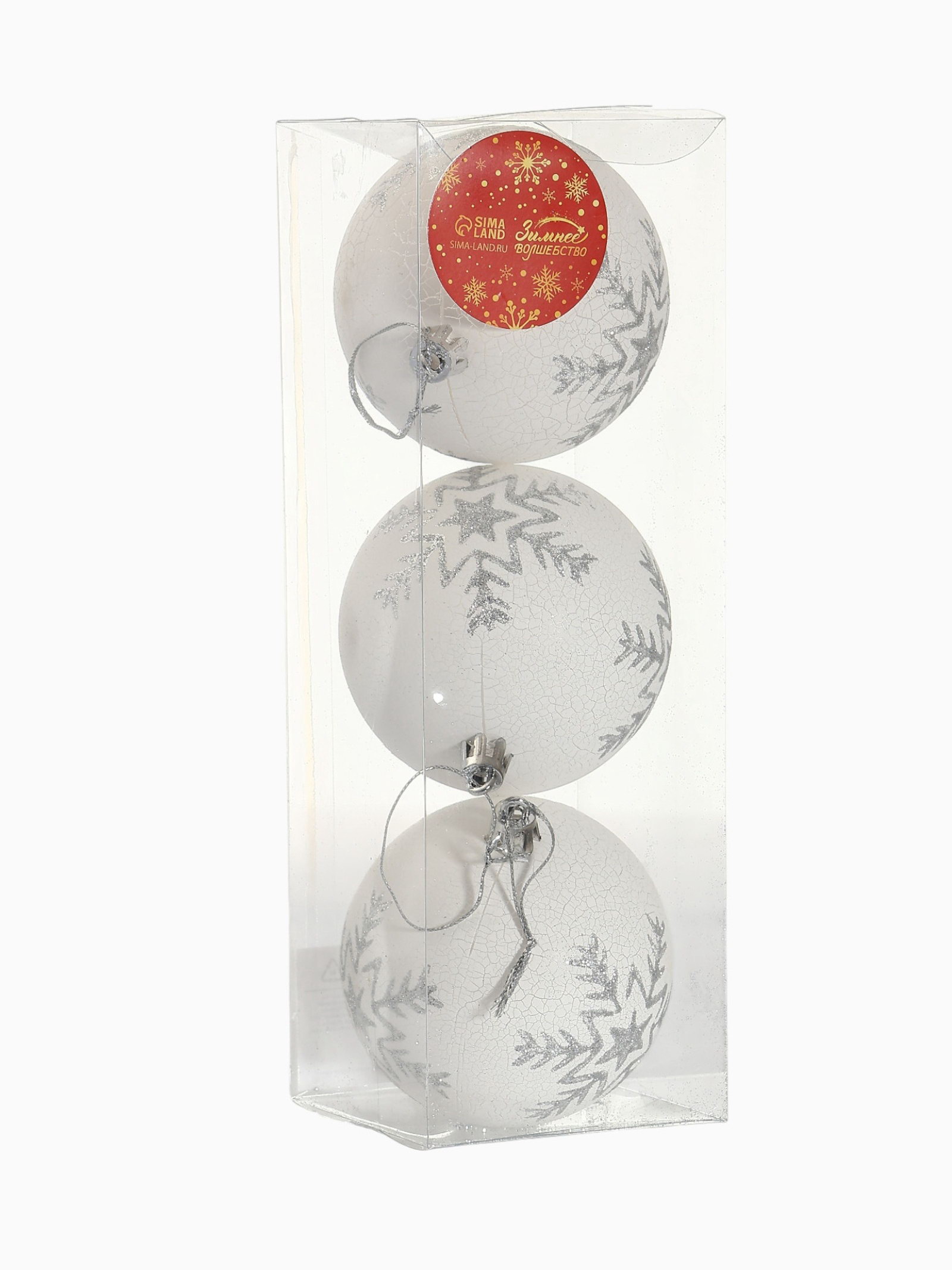 Ёлочные игрушки "Феклиста", шары новогодние, d=8 см, 3 шт., серебристо-белый, 8x8 см., Зимнее волшебство, Китай