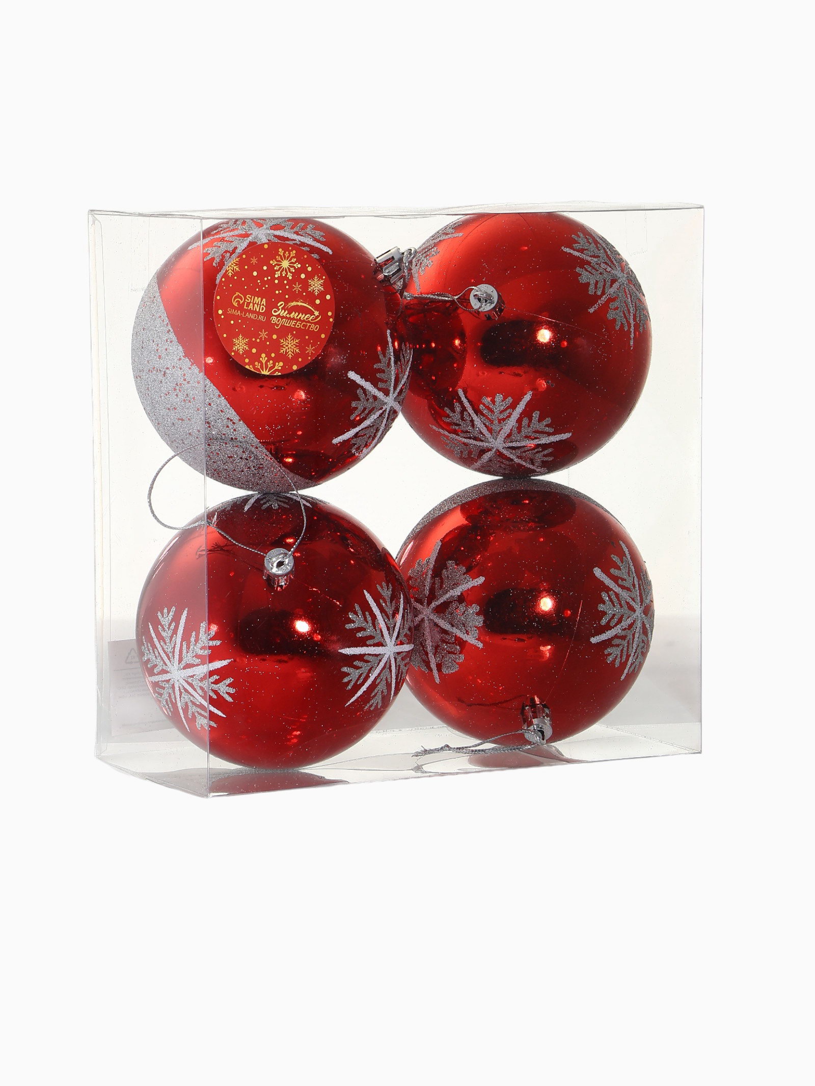 Ёлочные игрушки "Тихий вечер", шары новогодние, d=10 см, набор 4 шт., красный, 10x10 см., Зимнее волшебство, Китай