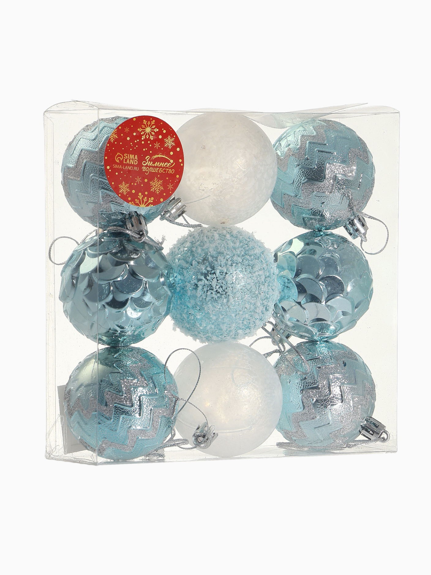Ёлочные игрушки "Ренна", шары новогодние, d=6 см, набор 9 шт., белый зелёный, 6x6 см., Зимнее волшебство, Китай