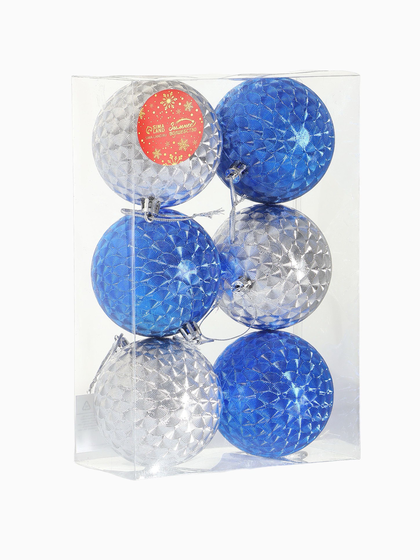 Ёлочные игрушки "Мелания", шары новогодние, d=8 см, набор 6 шт. серебро/синий, 8x8 см., Зимнее волшебство, Китай