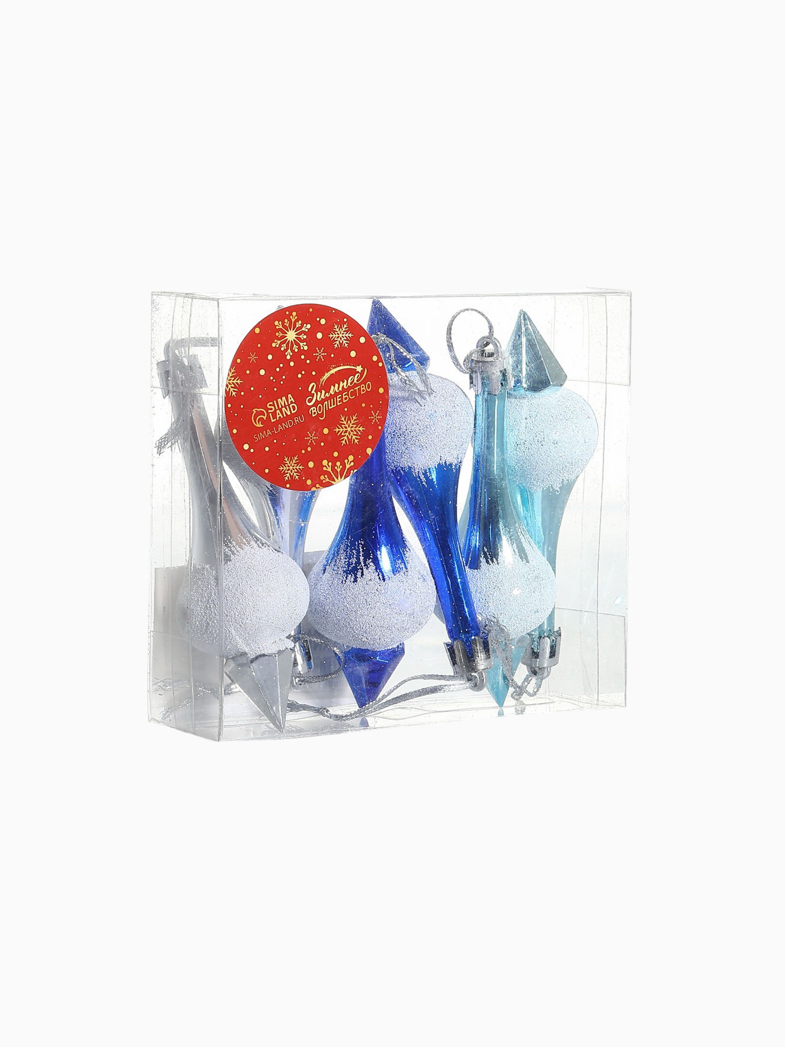 Ёлочные игрушки набор 6 шт. "Сосульки царские" 3.5x8.5 см, МИКС, 3.5x8.5 см., Зимнее волшебство, Китай
