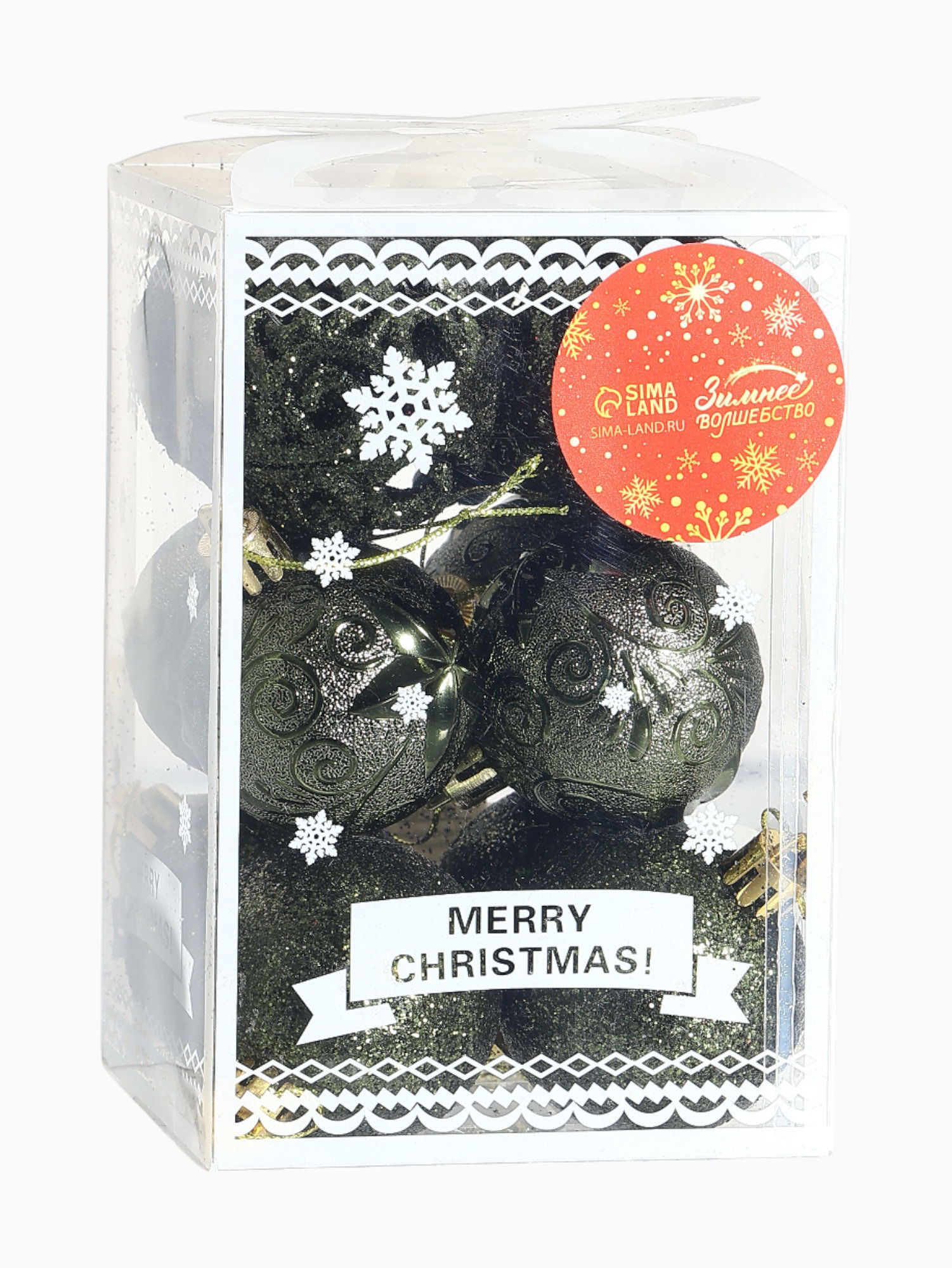 Ёлочные игрушки "Торжество", шары новогодние, d=5 см, 12 шт., зелёный, 5x5 см., Зимнее волшебство, Китай