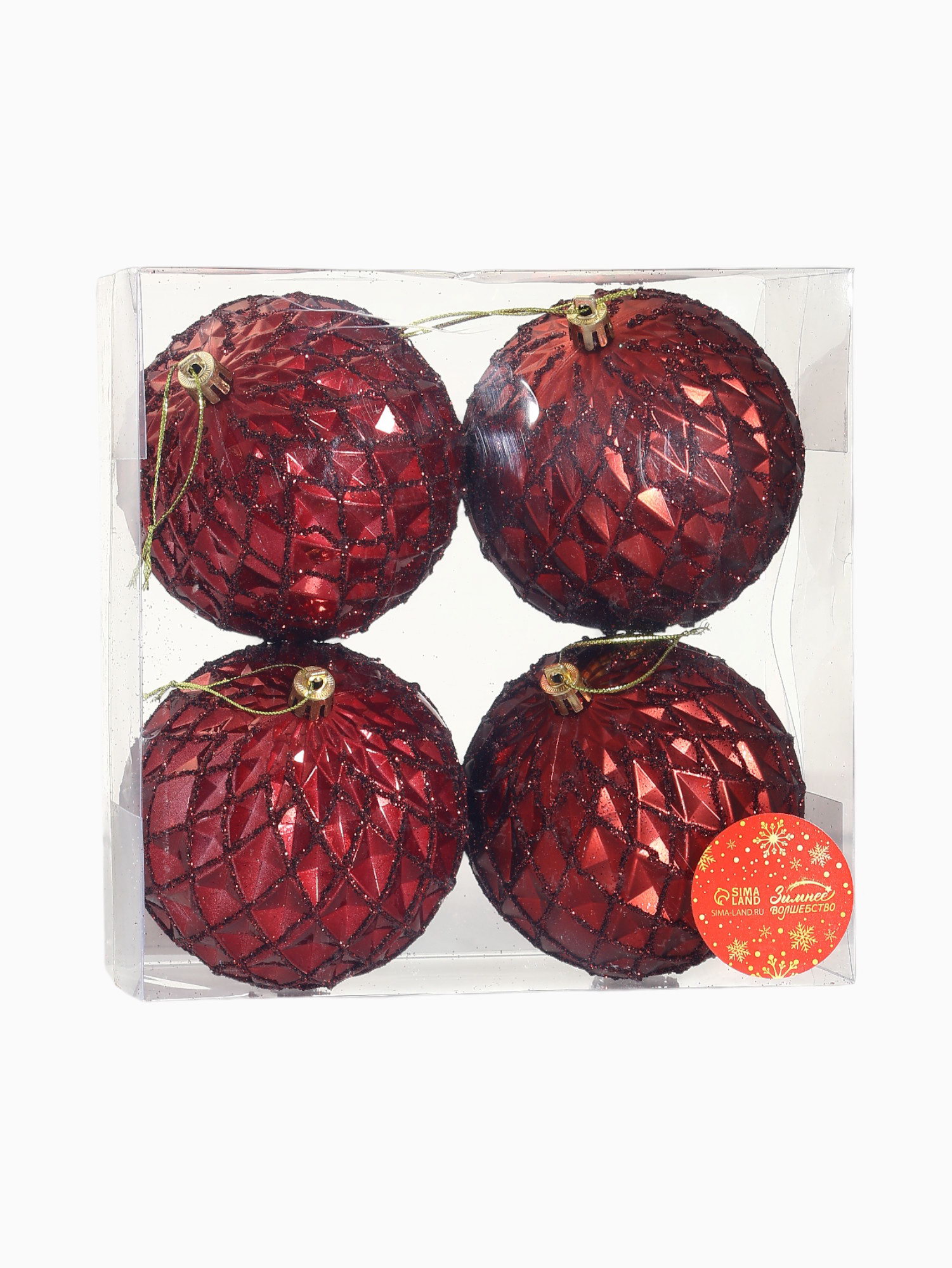 Ёлочные игрушки "Грейна", шары новогодние, d=10 см, набор 4 шт., красный, 10x10 см., Зимнее волшебство, Китай