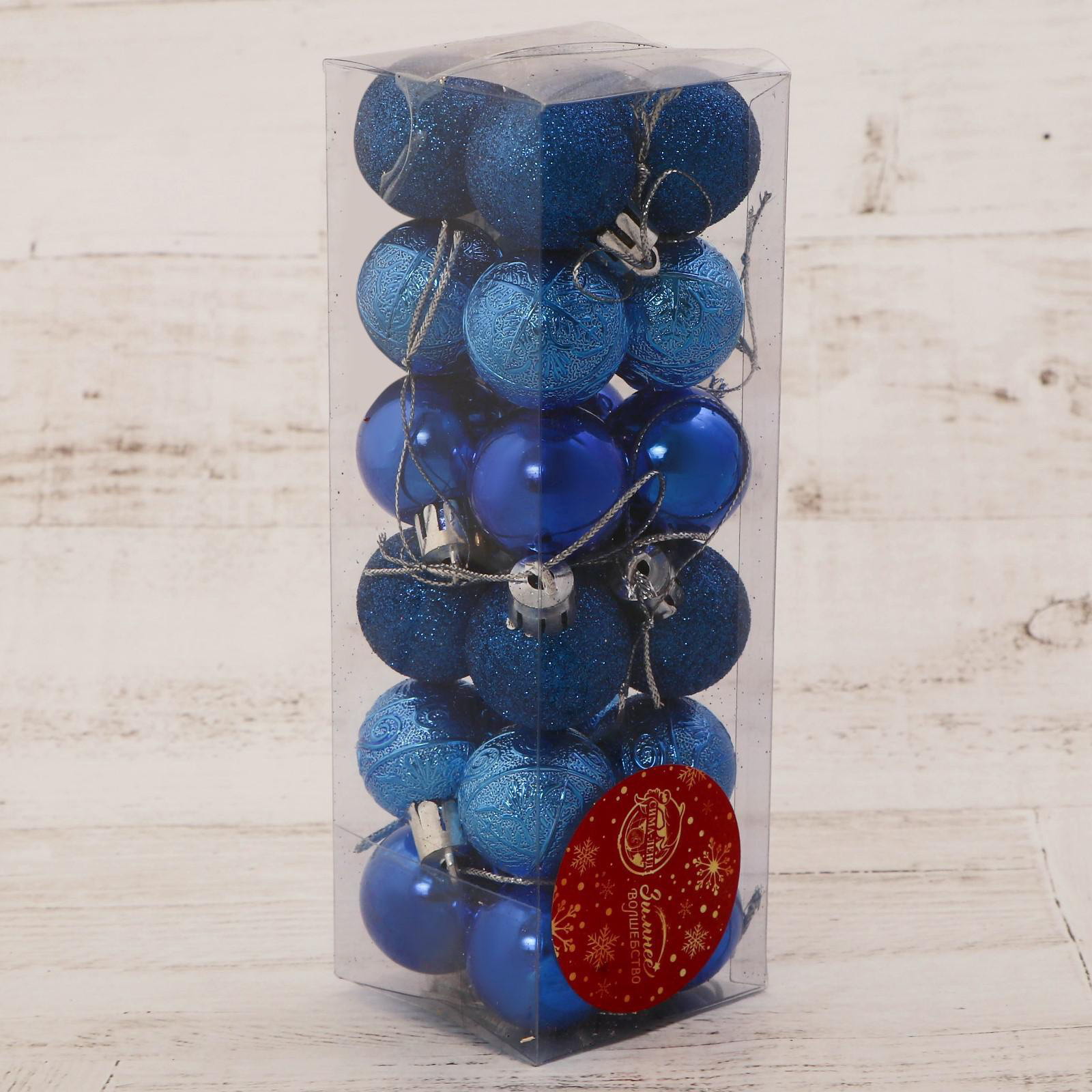 Ёлочные игрушки "Наоми", шары новогодние, d=3 см, набор 24 шт., синий, 3x3 см., Зимнее волшебство, Китай