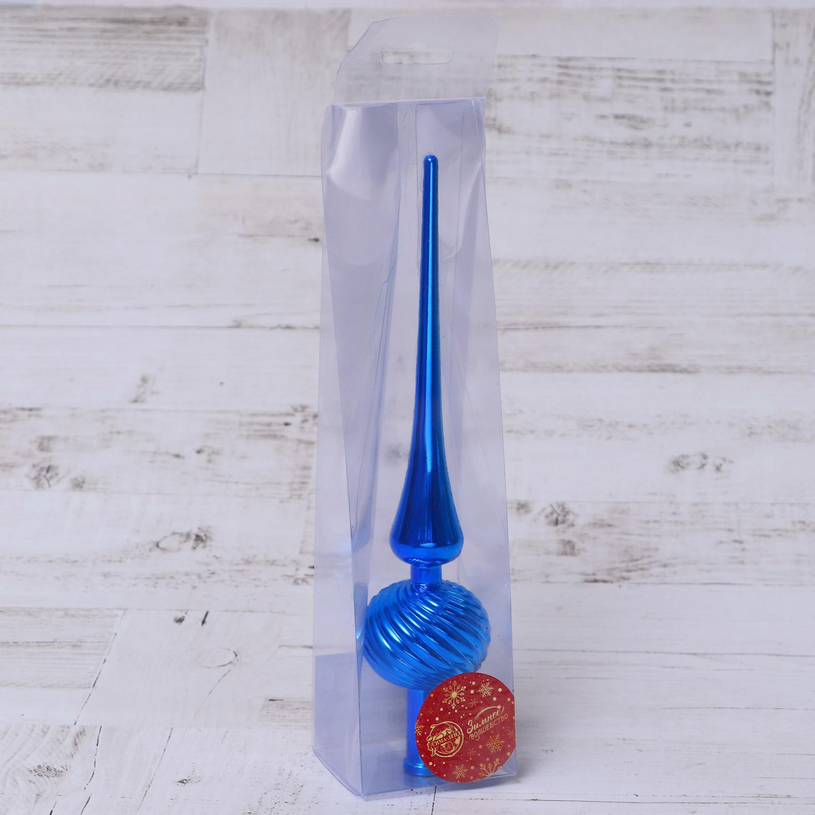 Верхушка на елку "Классика полосы" 25 см синий, 5.5x25 см., Зимнее волшебство, Китай