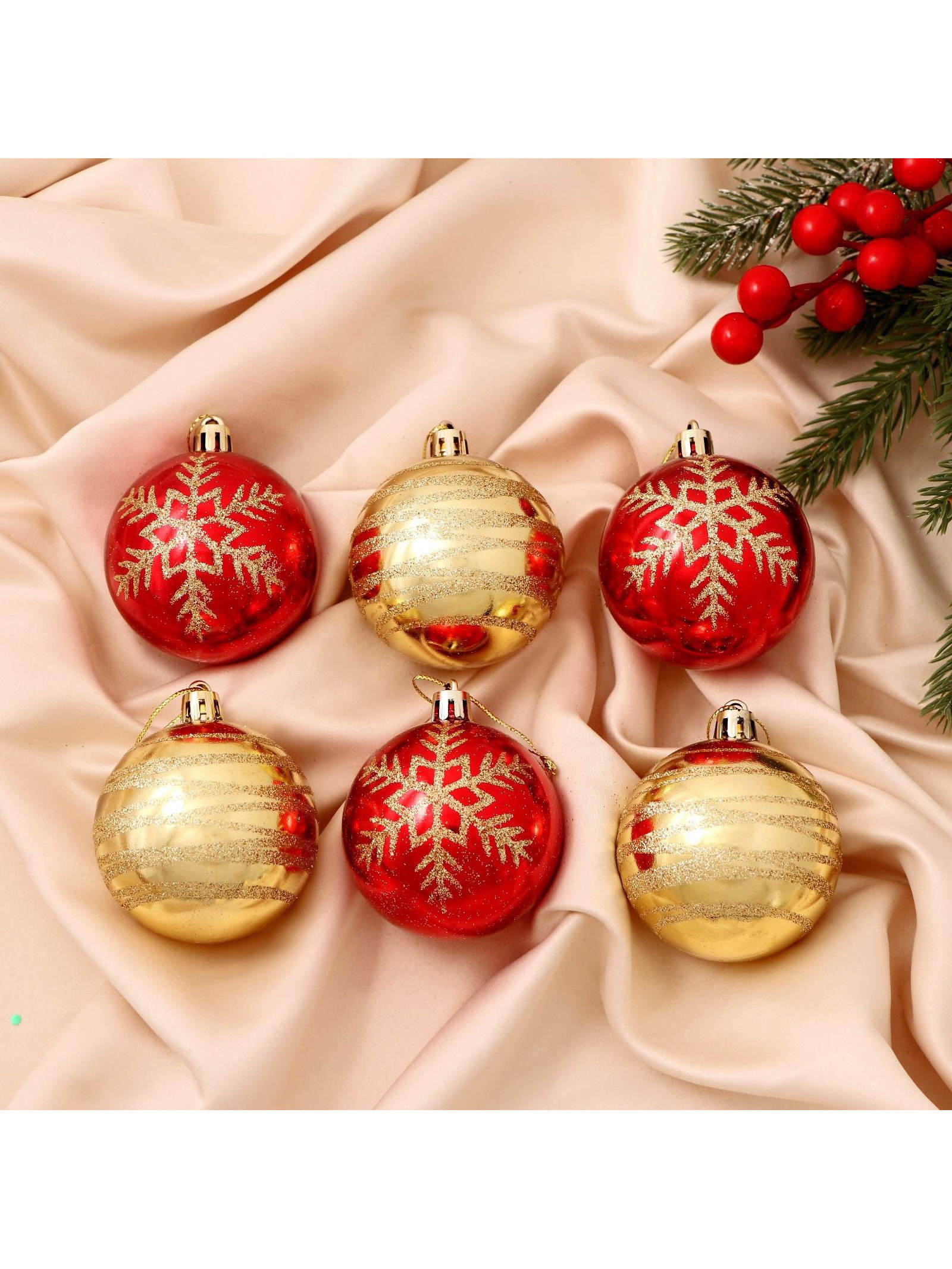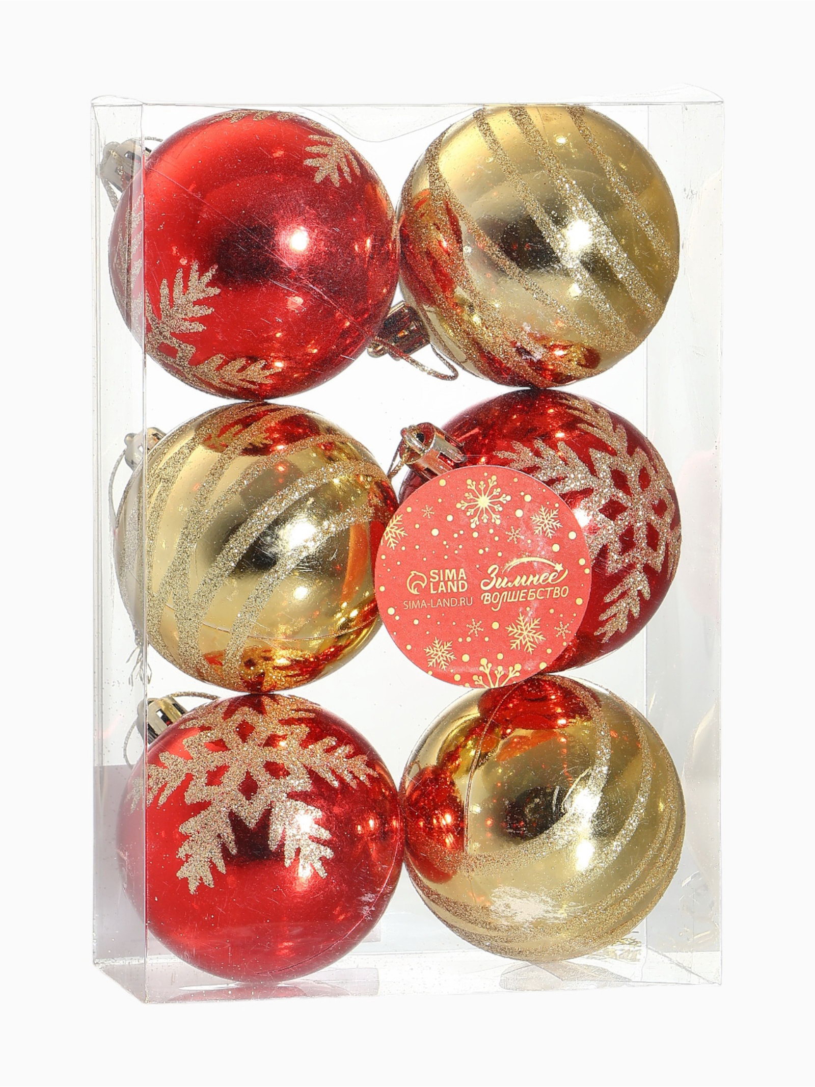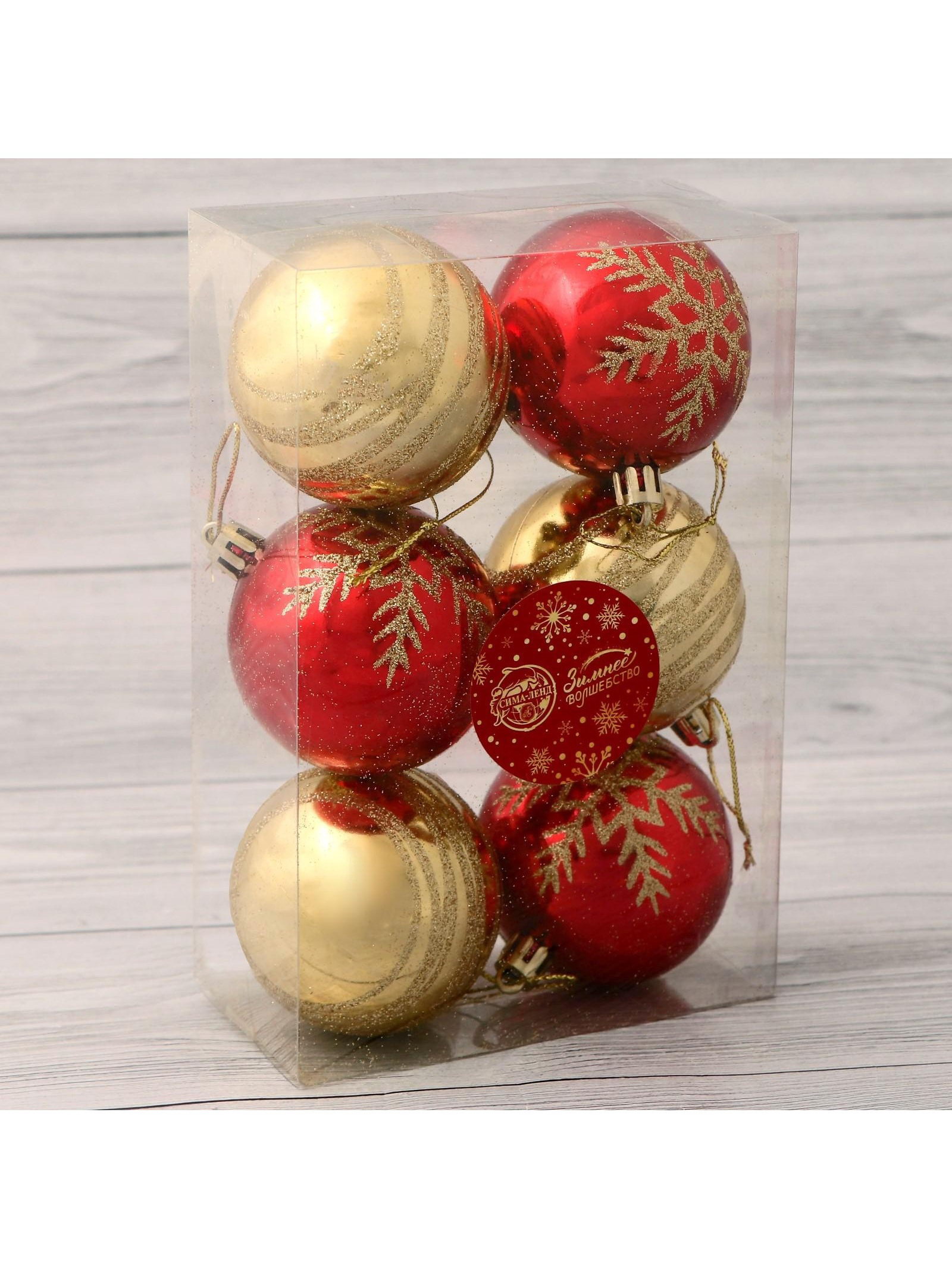 Ёлочные игрушки "Снежная феерия ассорти", шары новогодние, d=6 см, набор 6 шт., золотисто-красный, 6x6 см., Зимнее волшебство, Китай