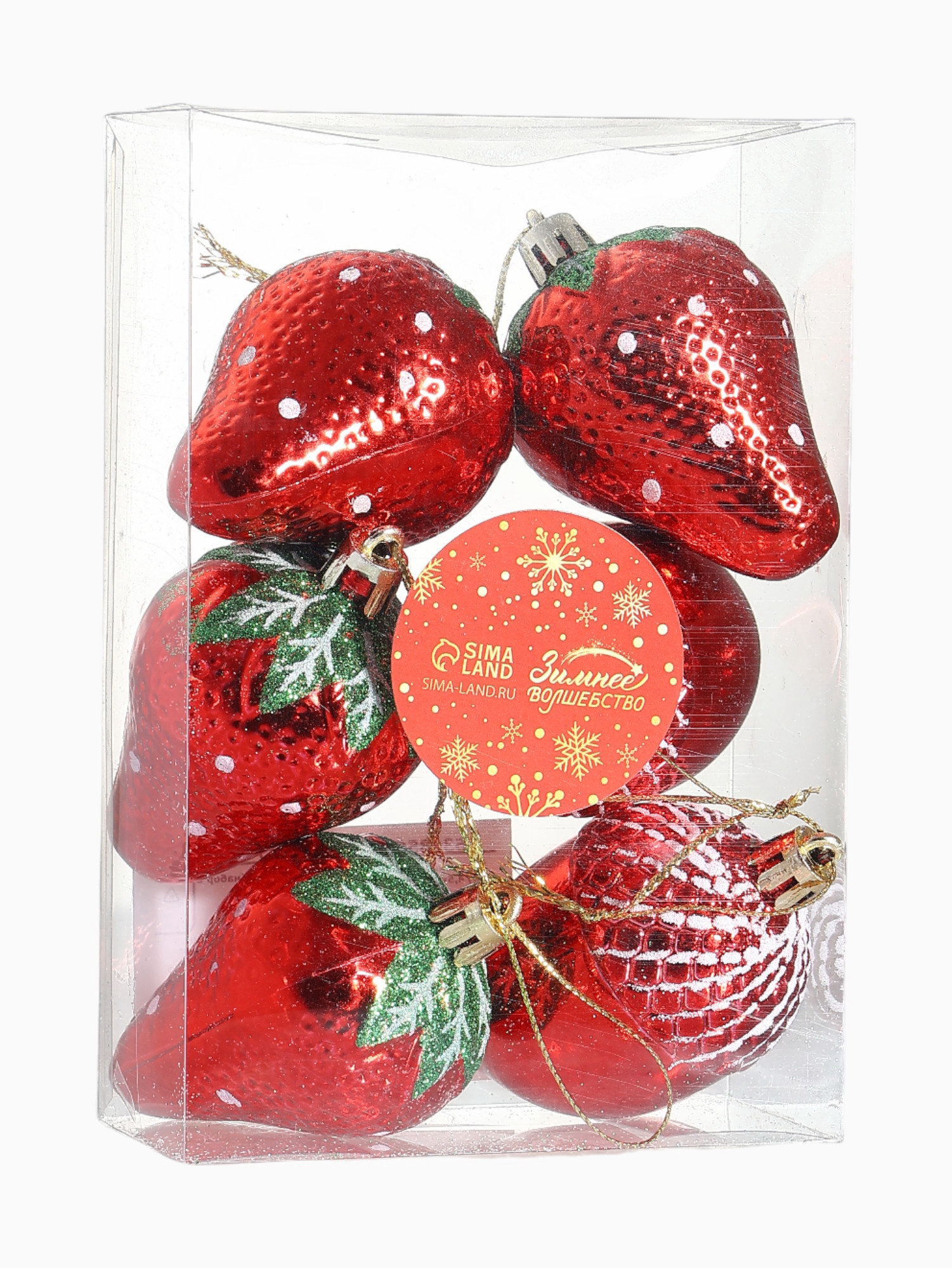 Ёлочные игрушки 6 шт. "Клубничное ассорти" 4.5x6 см, красный, 4.5x6 см., Зимнее волшебство, Китай