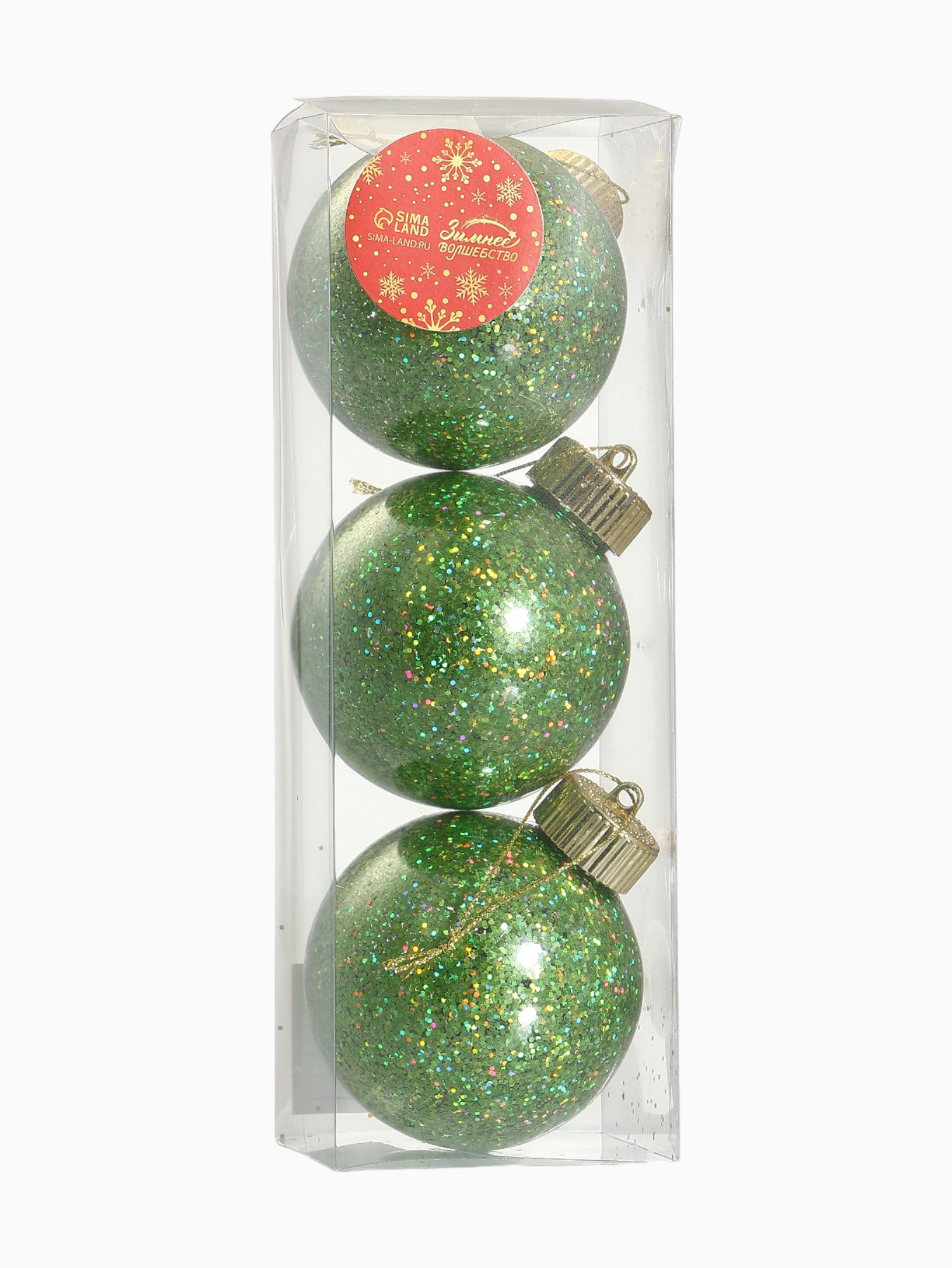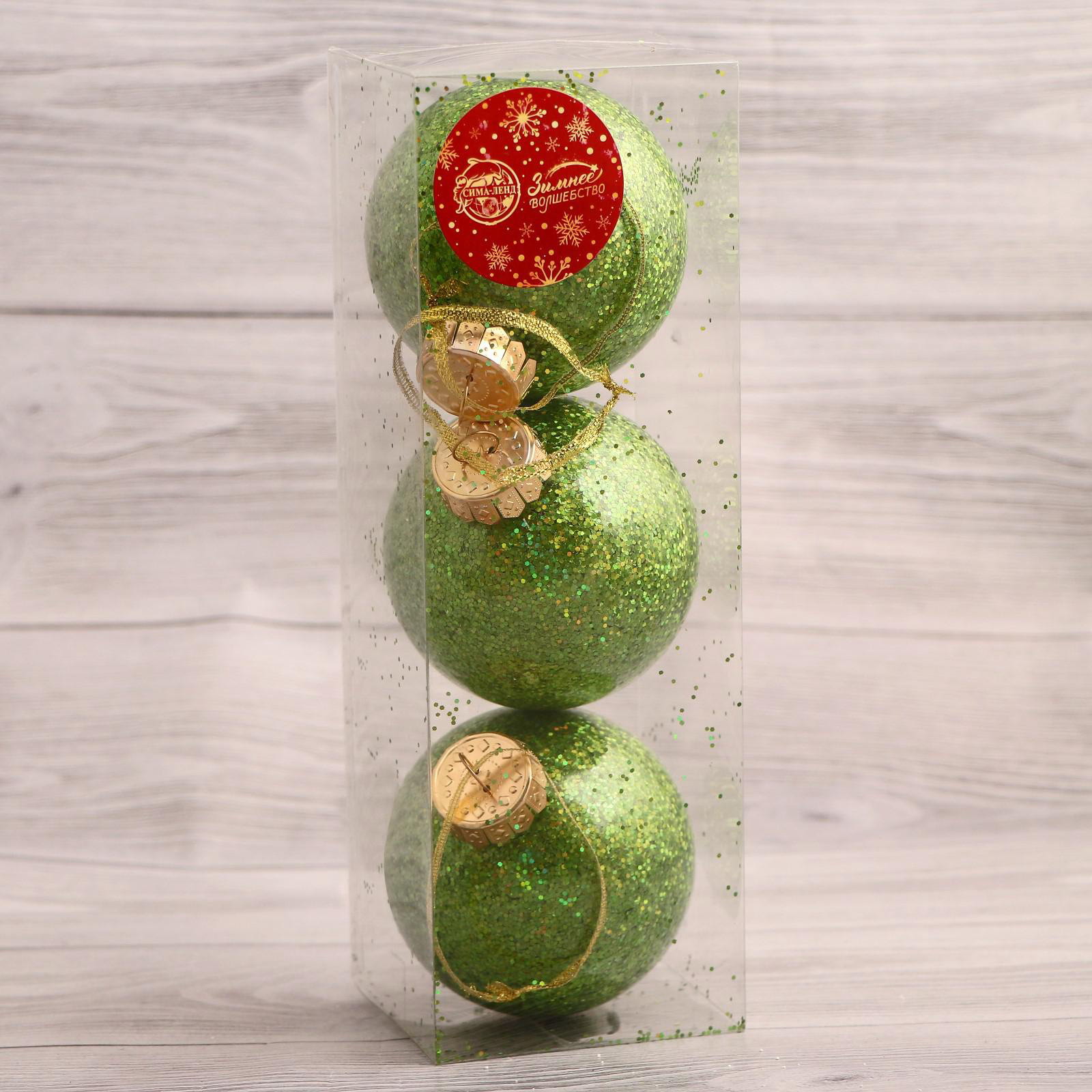Ёлочные игрушки "Фива" шары новогодние, d=8 см, набор 3 шт., зелёный, 8x8 см., Зимнее волшебство, Китай