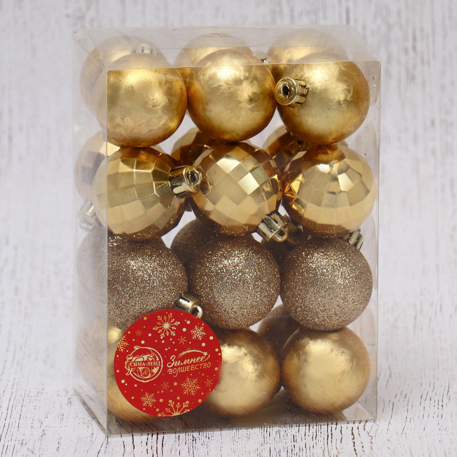 Ёлочные игрушки "Диско ассорти", шары новогодние, d=4 см, набор 24 шт., золото, 4x4 см., Зимнее волшебство, Китай