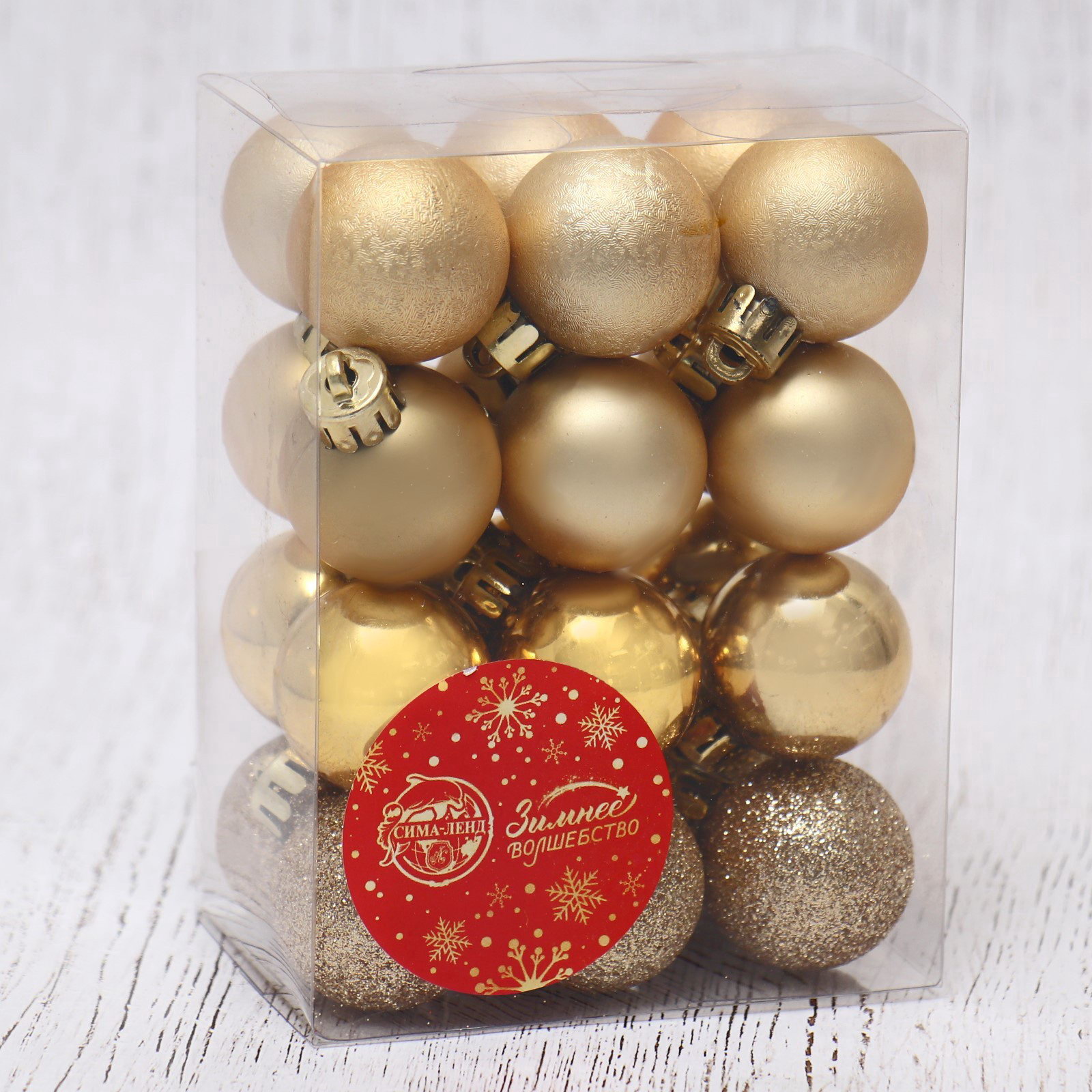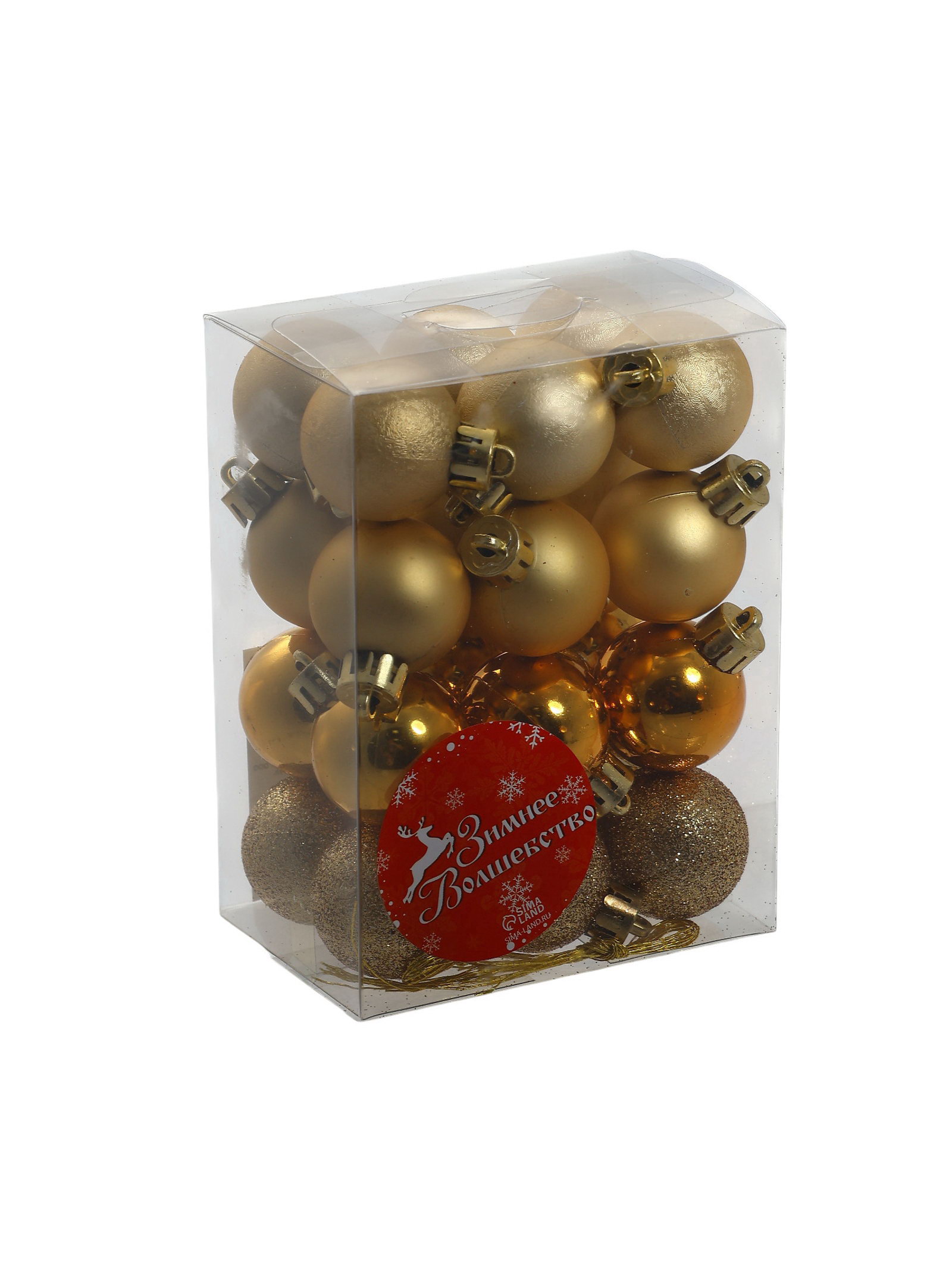 Ёлочные игрушки "Классика блеск ассорти", шары новогодние, d=3 см, набор 24 шт., золото, 3x3 см., Зимнее волшебство, Китай
