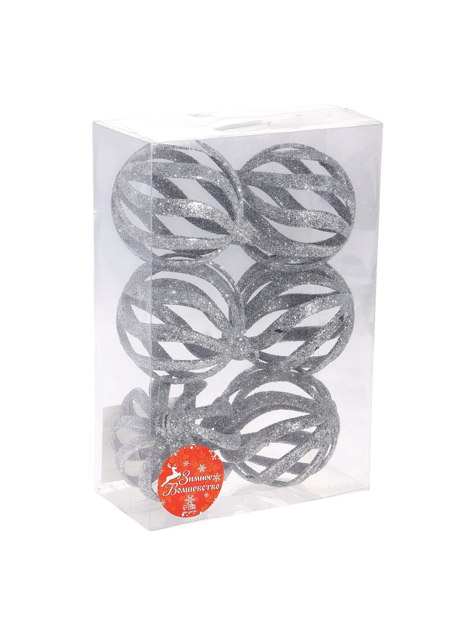 Ёлочные игрушки "Селин", шары новогодние, d=8 см, набор 6 шт., серебро, 8x8 см., Зимнее волшебство, Китай