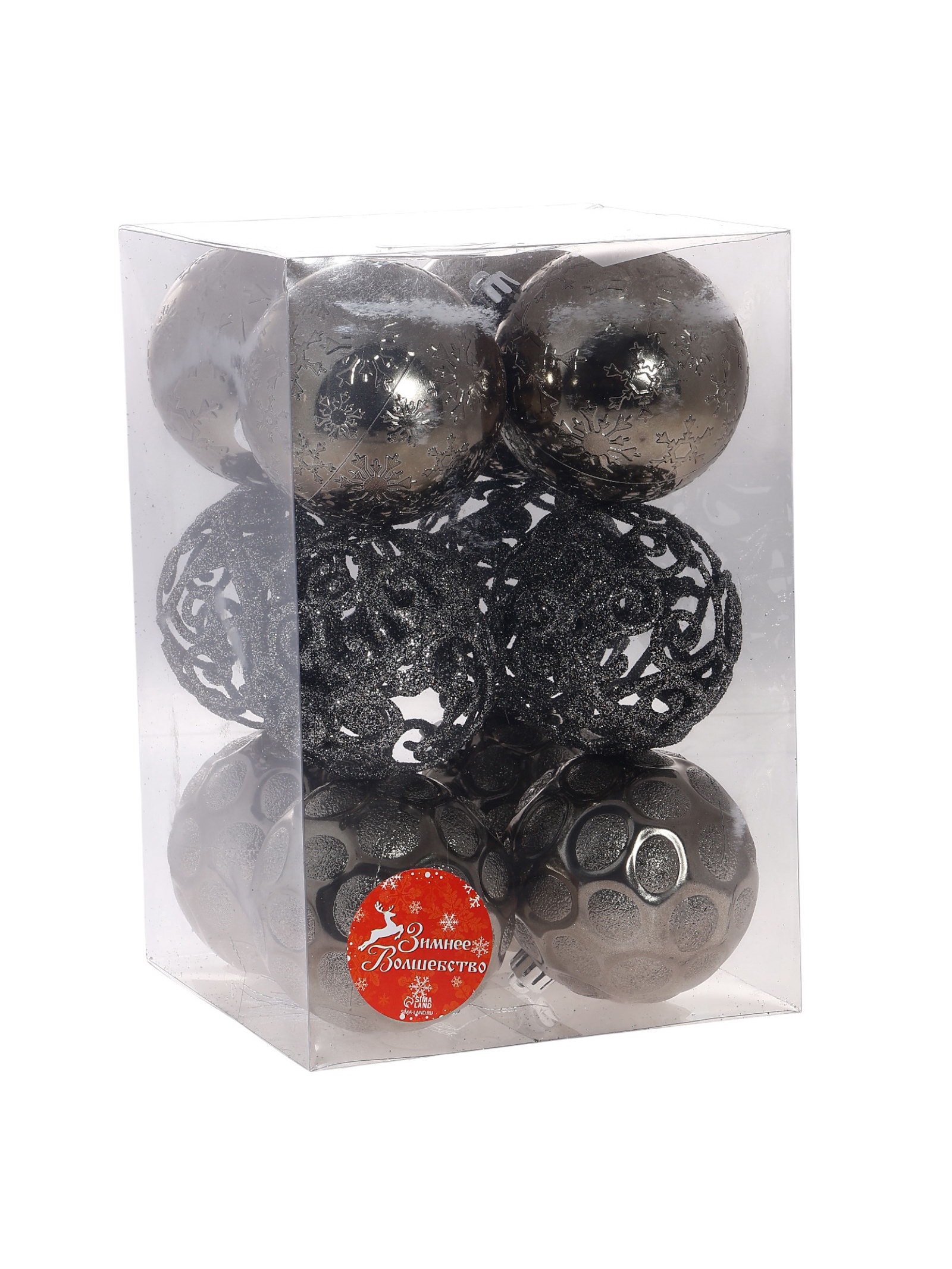 Ёлочные игрушки "Эйвери", шары новогодние, d=8 см, набор 12 шт., МИКС, 8x8 см., Зимнее волшебство, Китай