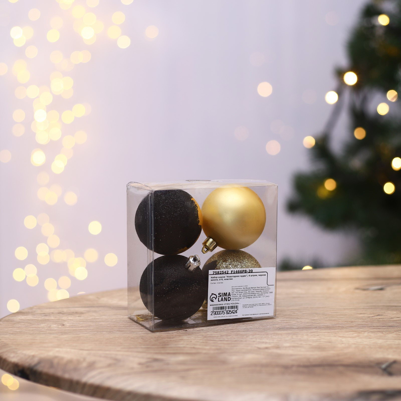 Шары ёлочные "Новогодних чудес", пластик, d=6, 4 шт., черные, золотые, 5.8x11.6x11.6 см., Сима-ленд, Китай