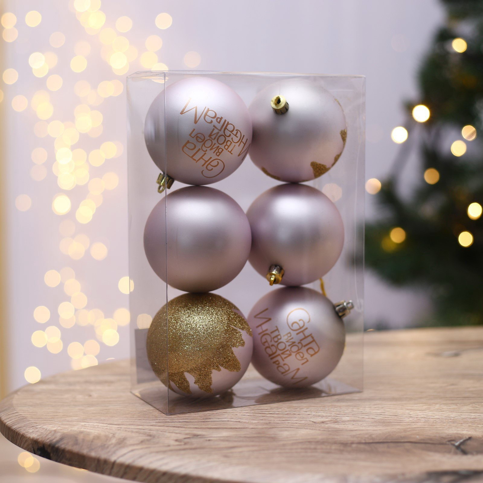Новогодние шары ёлочные "Санта видел твой Инстаграм", пластик, d=8, 6 шт., цвет розовый, 7.8x15.6x23.5 см., Сима-ленд, Китай