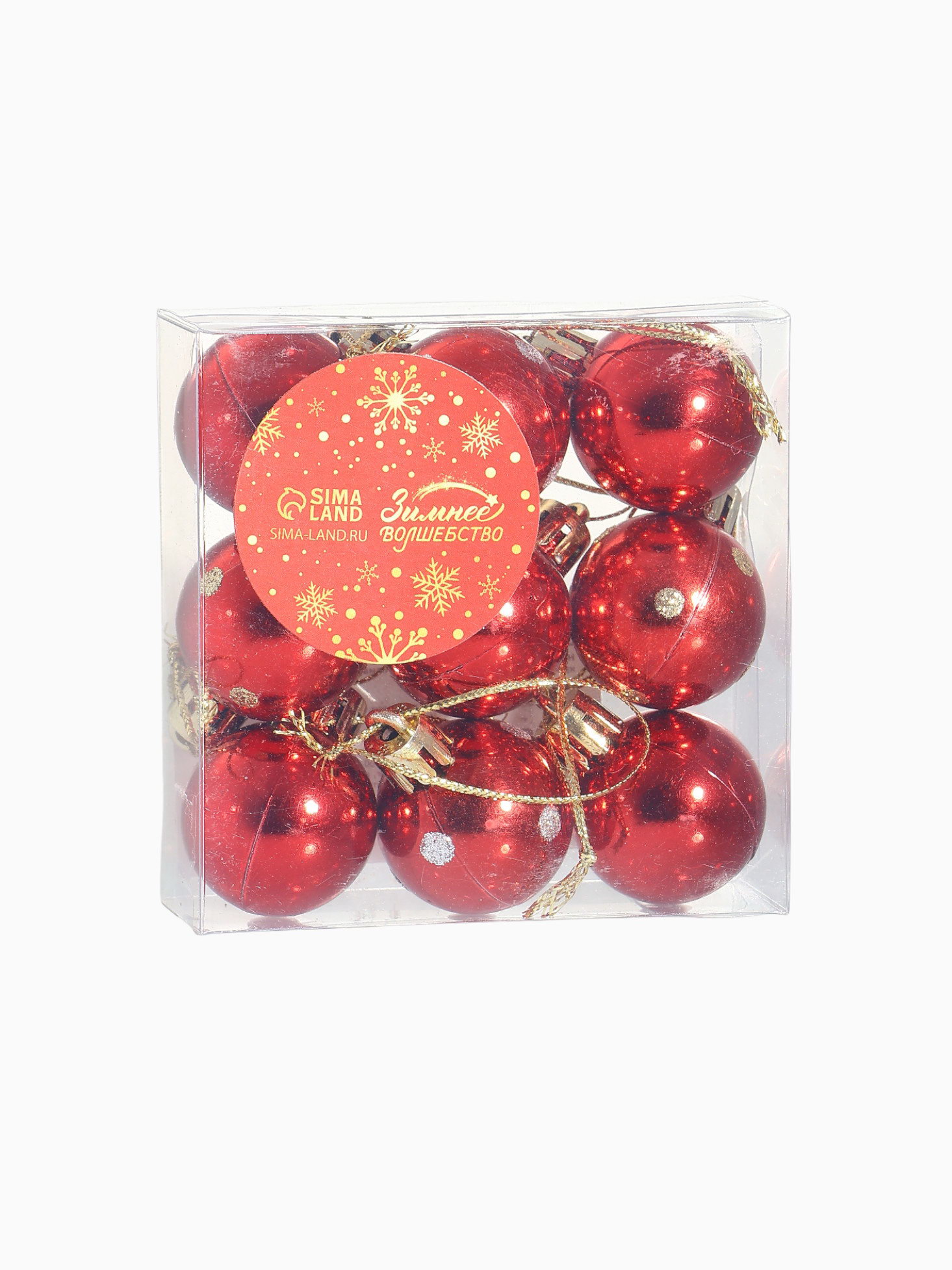 Ёлочные игрушки "Самарина", шары новогодние, d=3 см, набор 9 шт., красный, 3x3 см., Зимнее волшебство, Китай