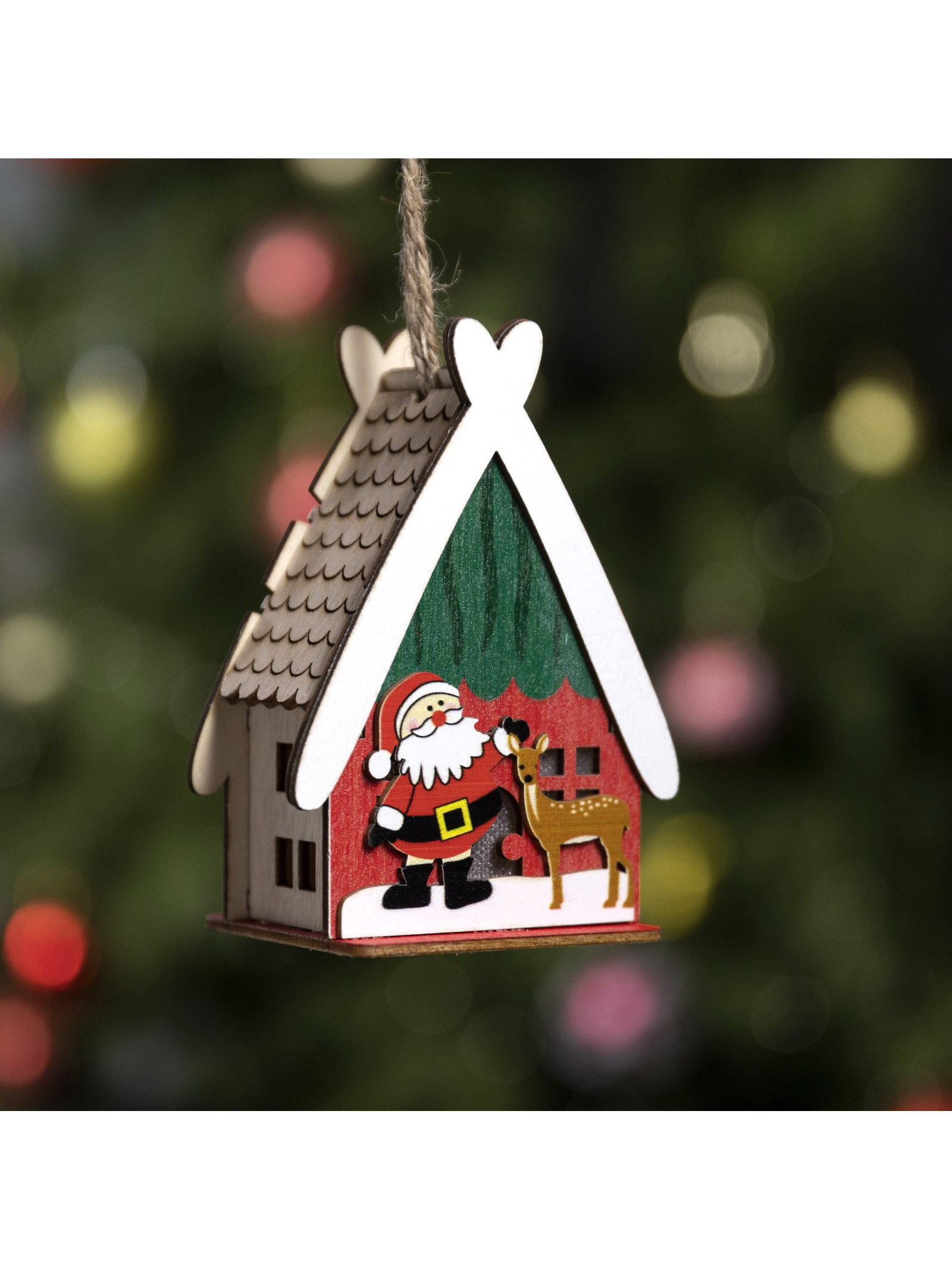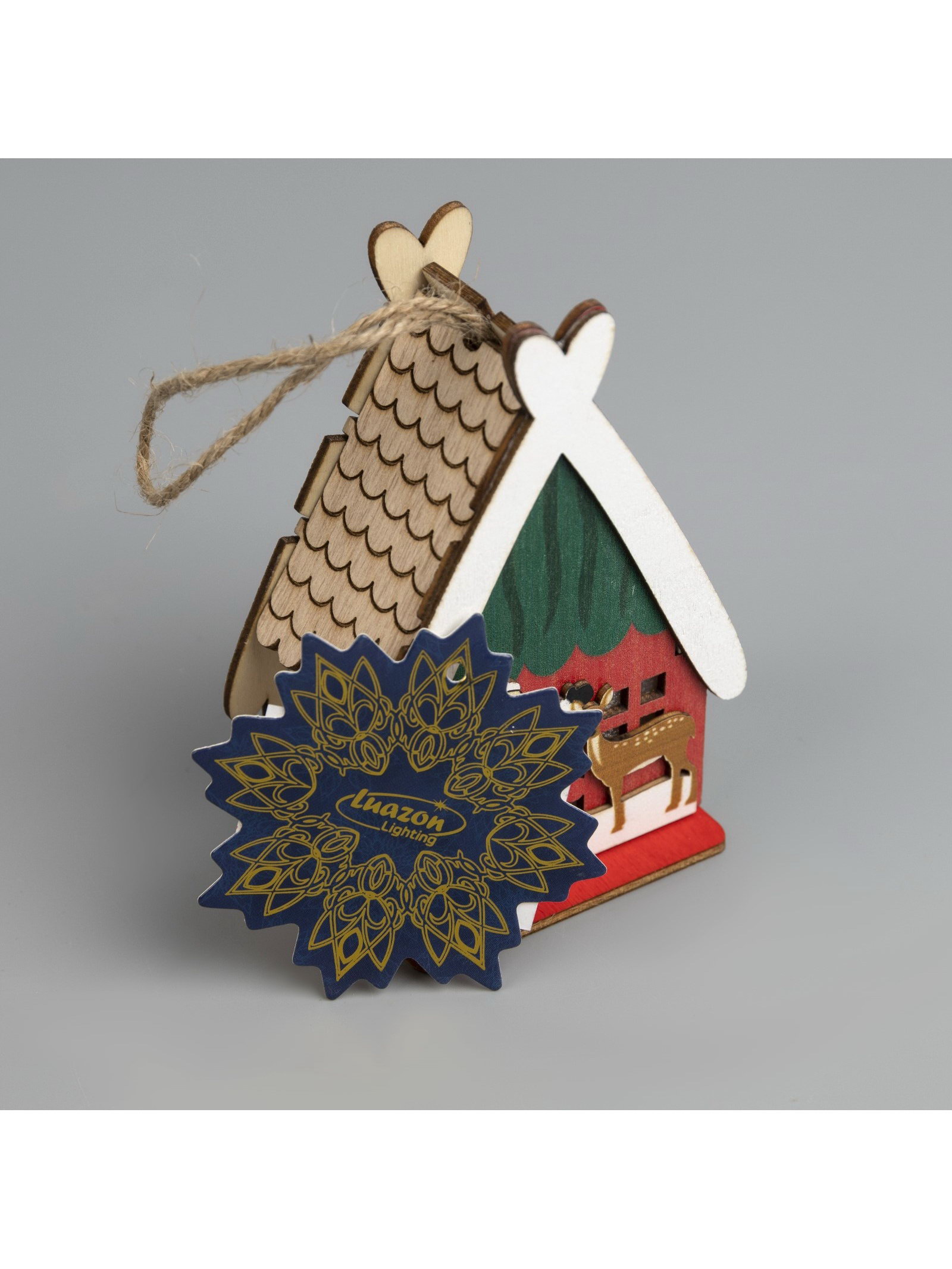 Ёлочная игрушка "Домик с Сантой", 7.7х11х6 см, 1 LED, от батареек, свечение тёплое белое, Luazon Lighting, Китай