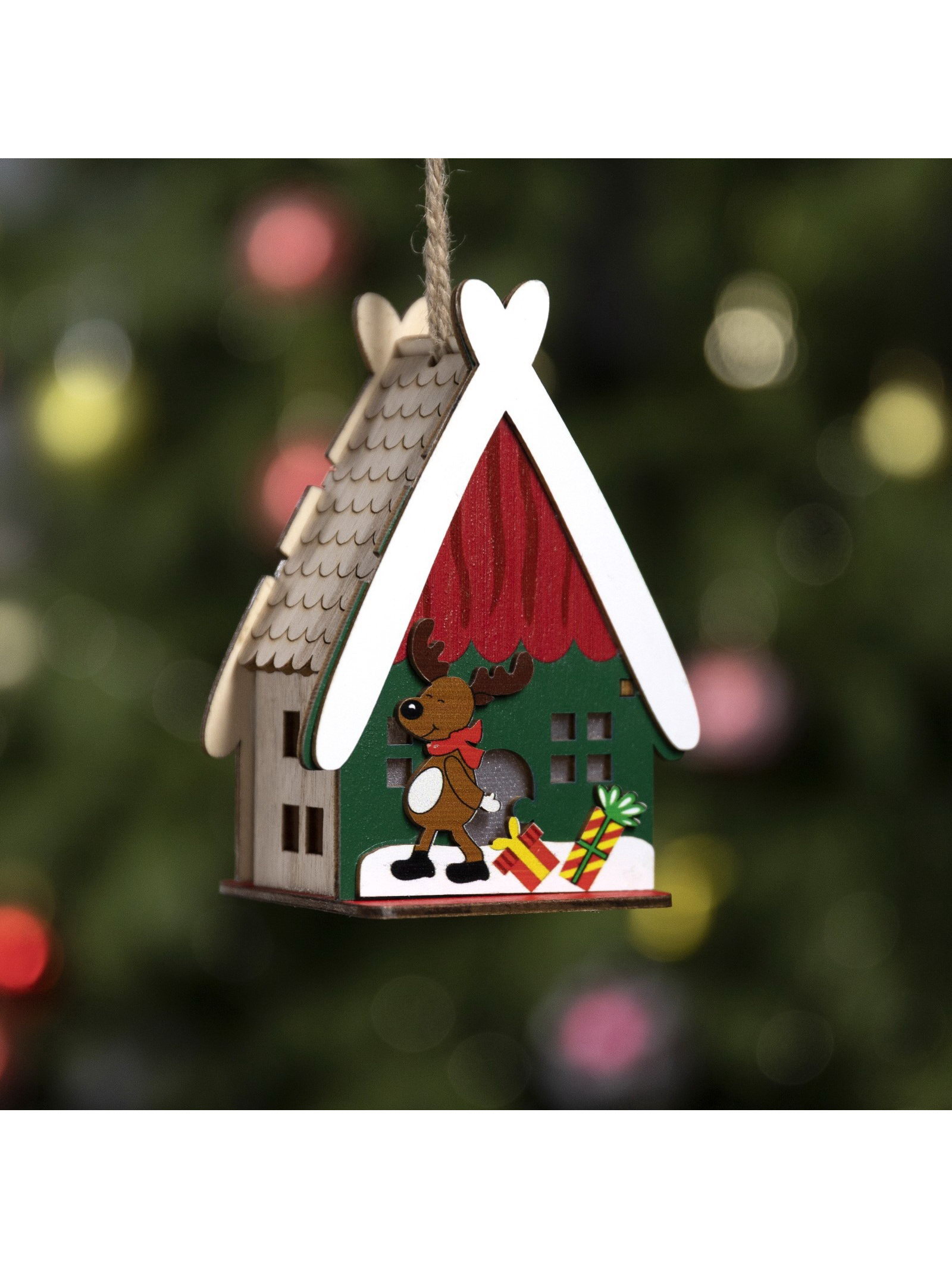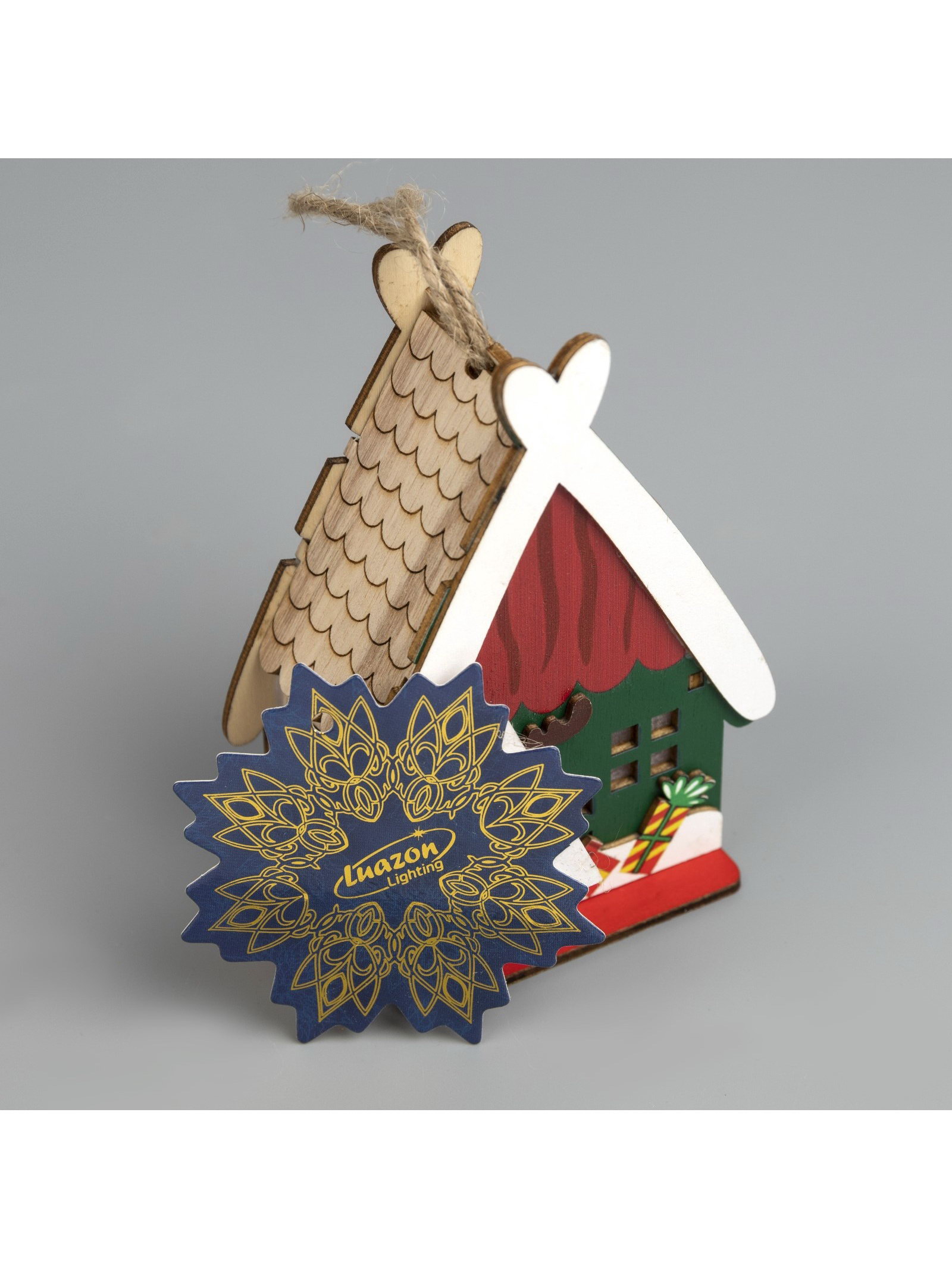 Ёлочная игрушка "Домик с оленем", 7.7х11х6 см, 1 LED, от батареек, свечение тёплое белое, Luazon Lighting, Китай