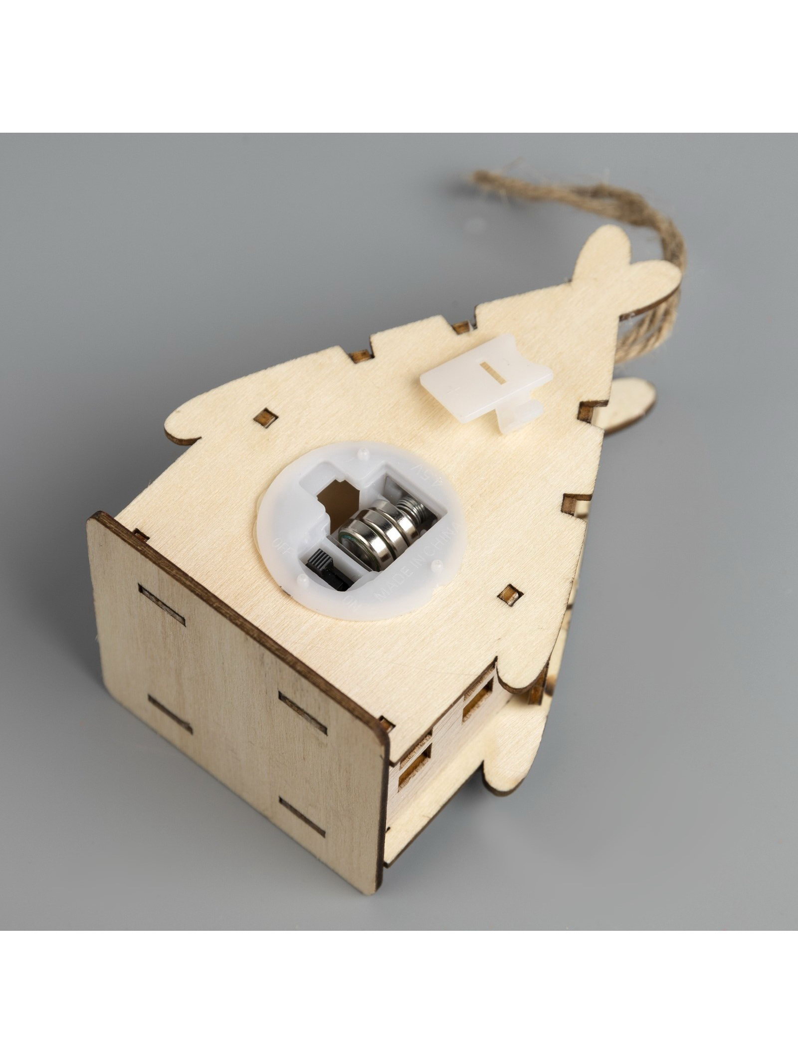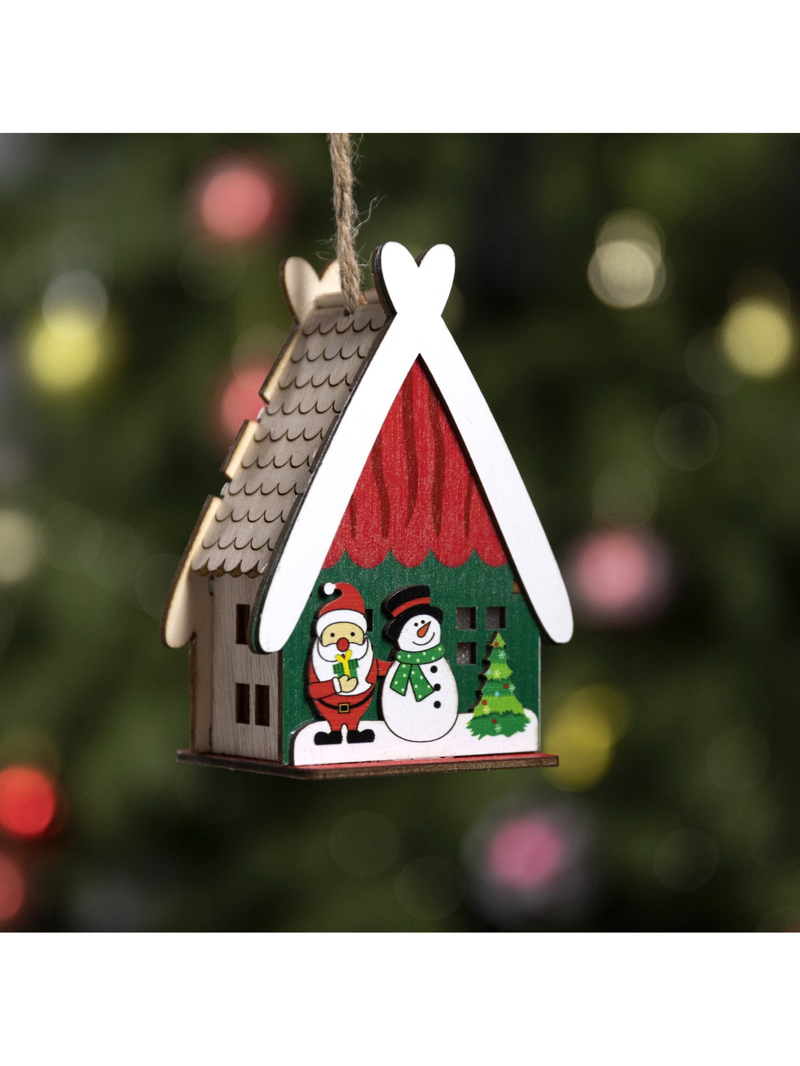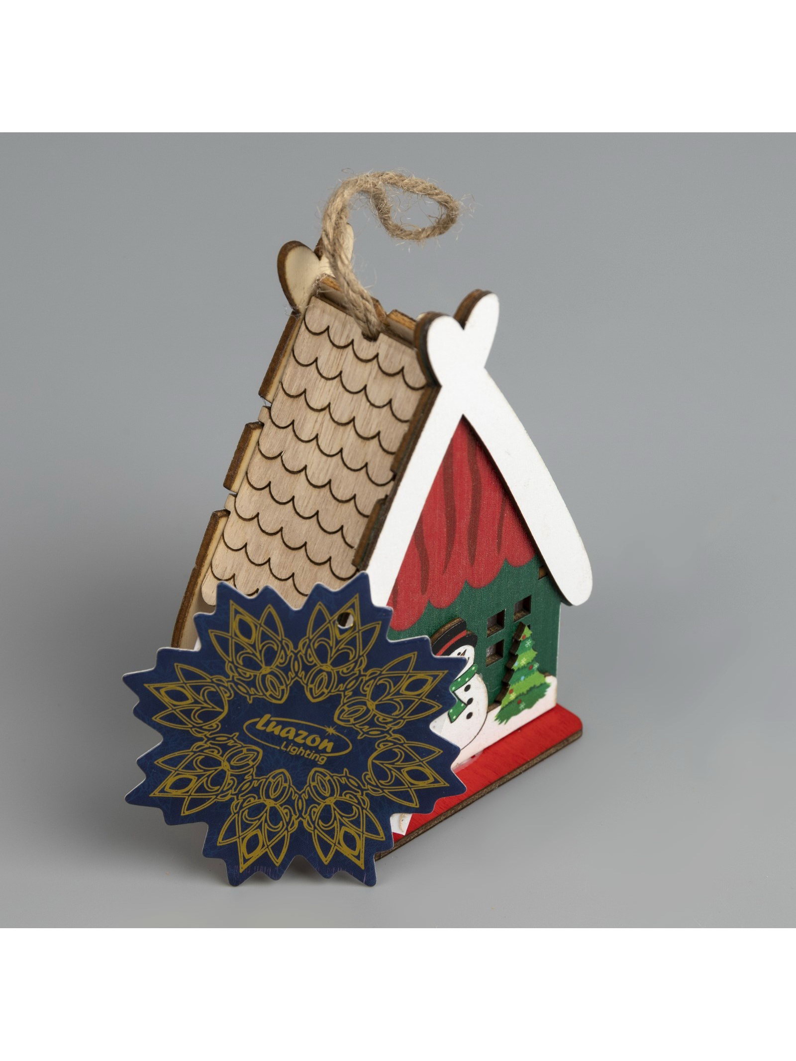 Ёлочная игрушка "Домик со снеговиком", 7.7х11х6 см, 1 LED, от батареек, свечение тёплое белое, Luazon Lighting, Китай