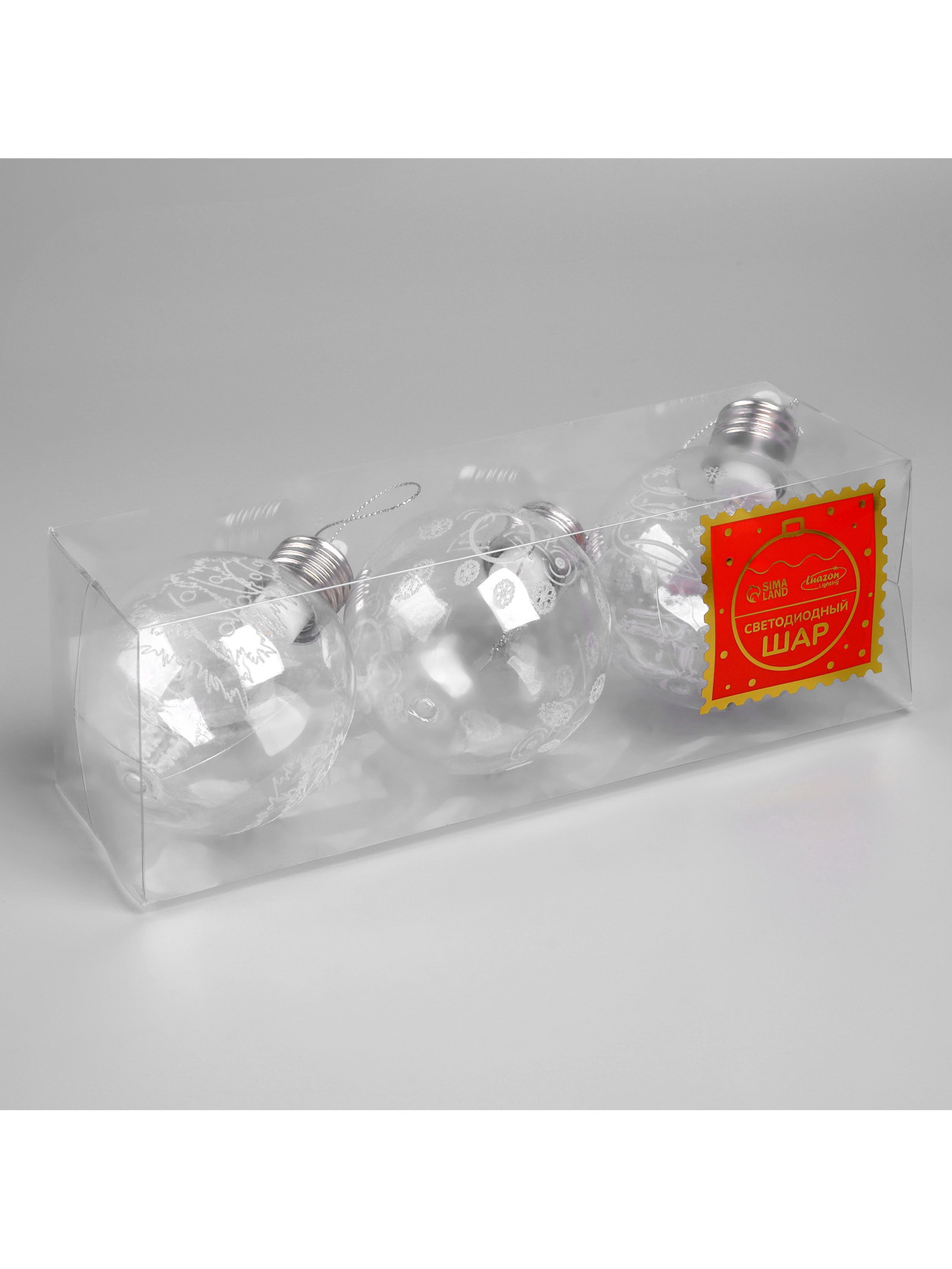 Набор ёлочных шаров "Игра искр", 3 шт, 8x10 см, 1 LED, от батареек, свечение тёплое белое, 8x8x8 см., Luazon Lighting, Китай