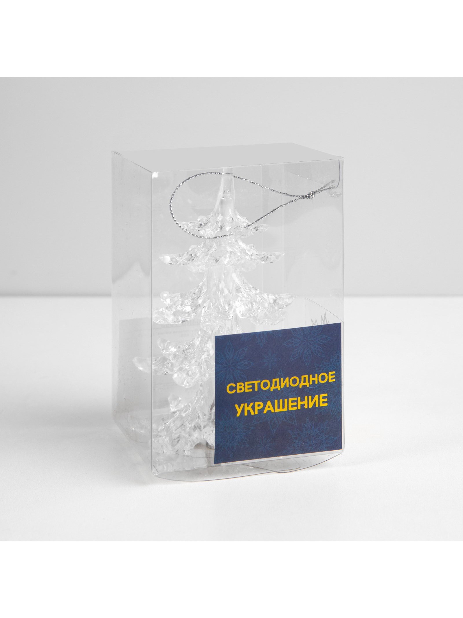 Ёлочная игрушка "Хрустальная ёлочка", 12 см, 1 LED, от батареек, свечение мульти, Luazon Lighting, Китай